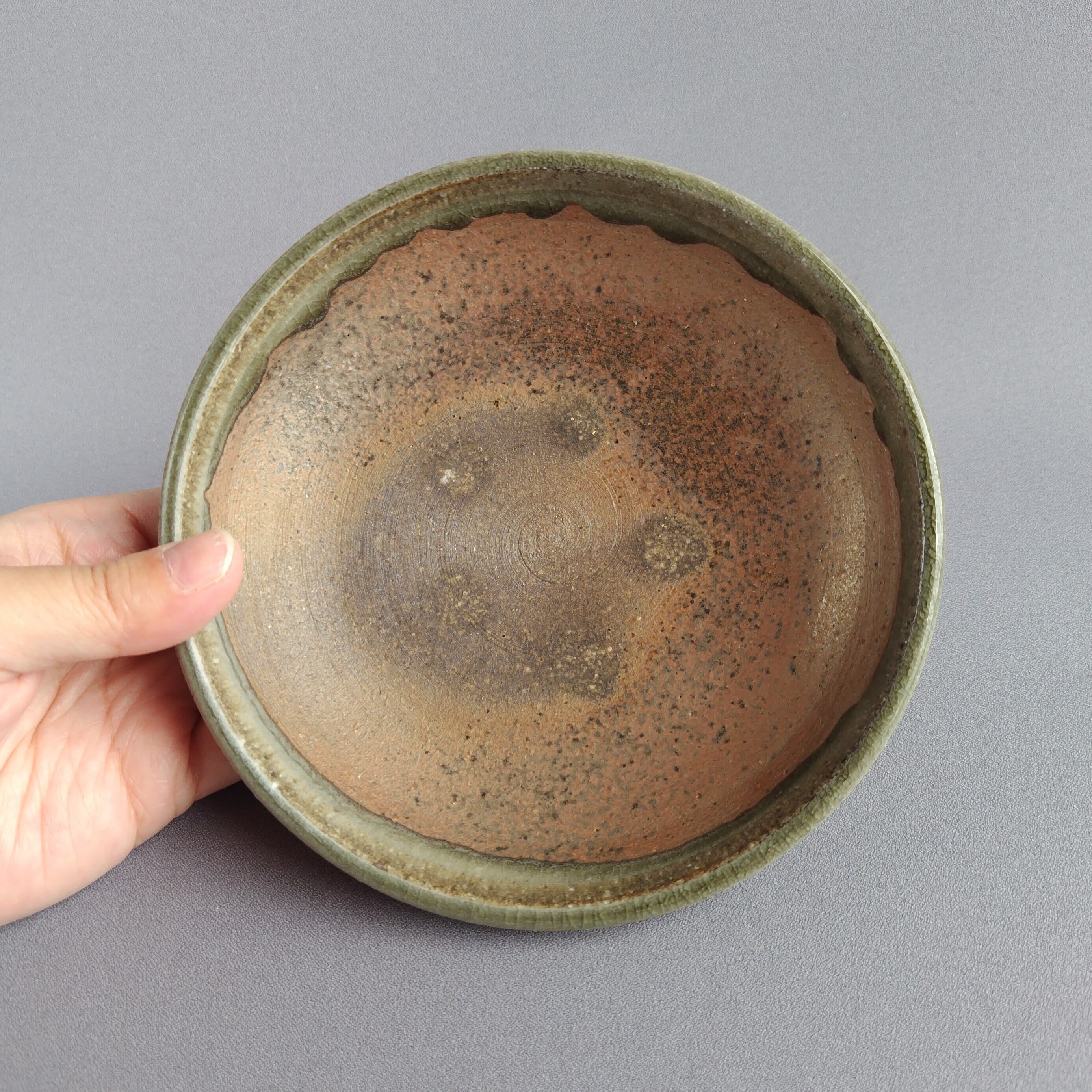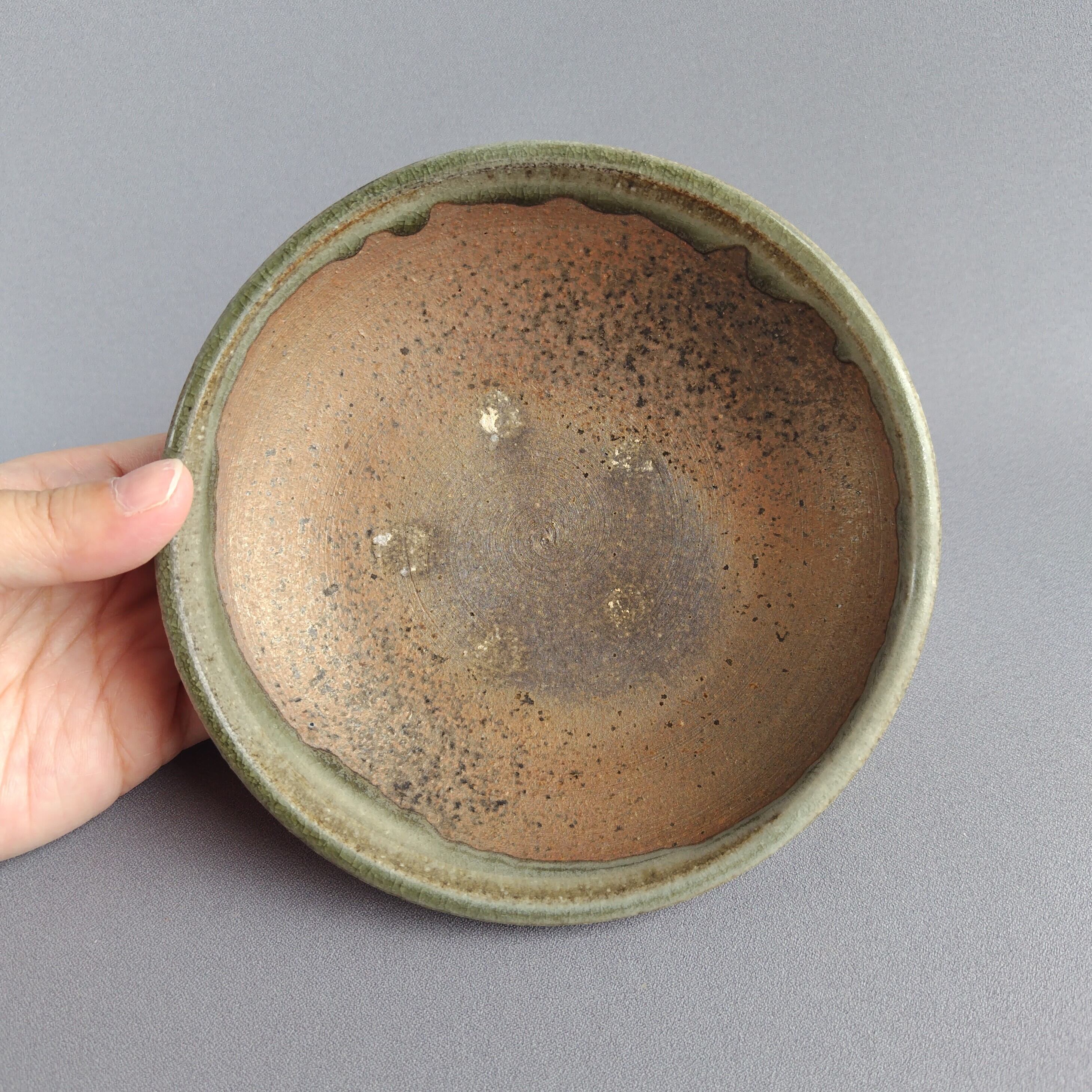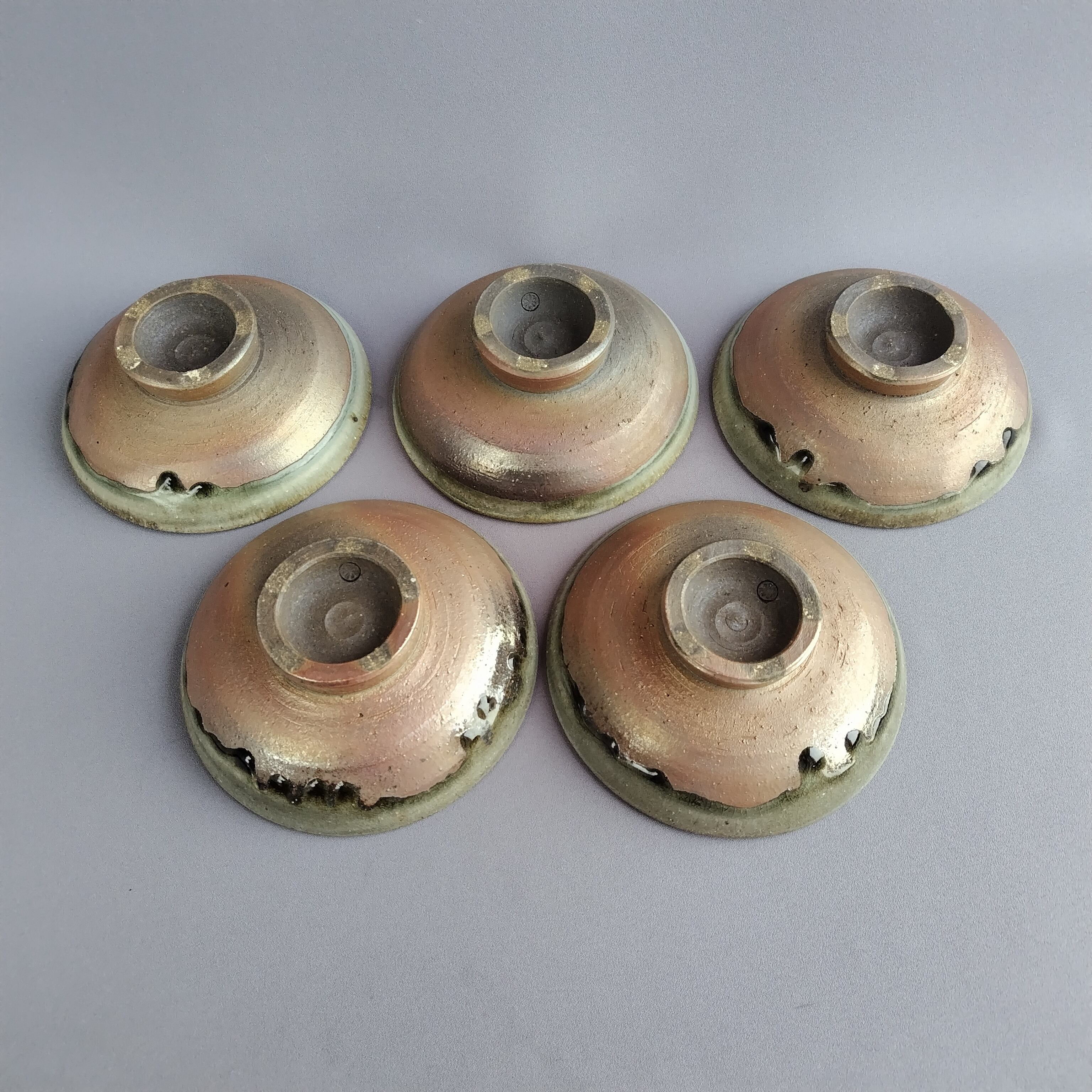 焼締めの五客組の銘々皿です。縁に灰青磁釉が掛けられています。