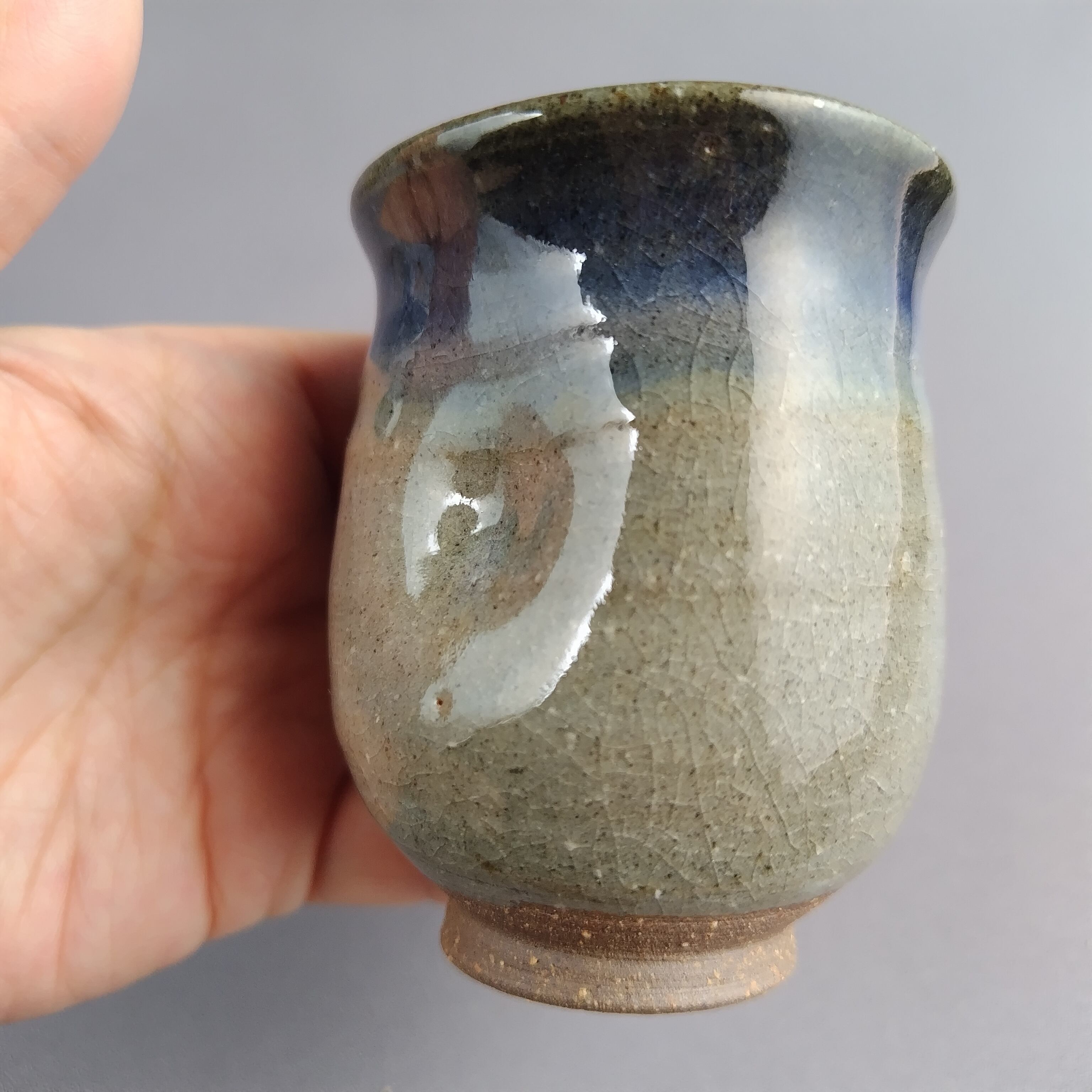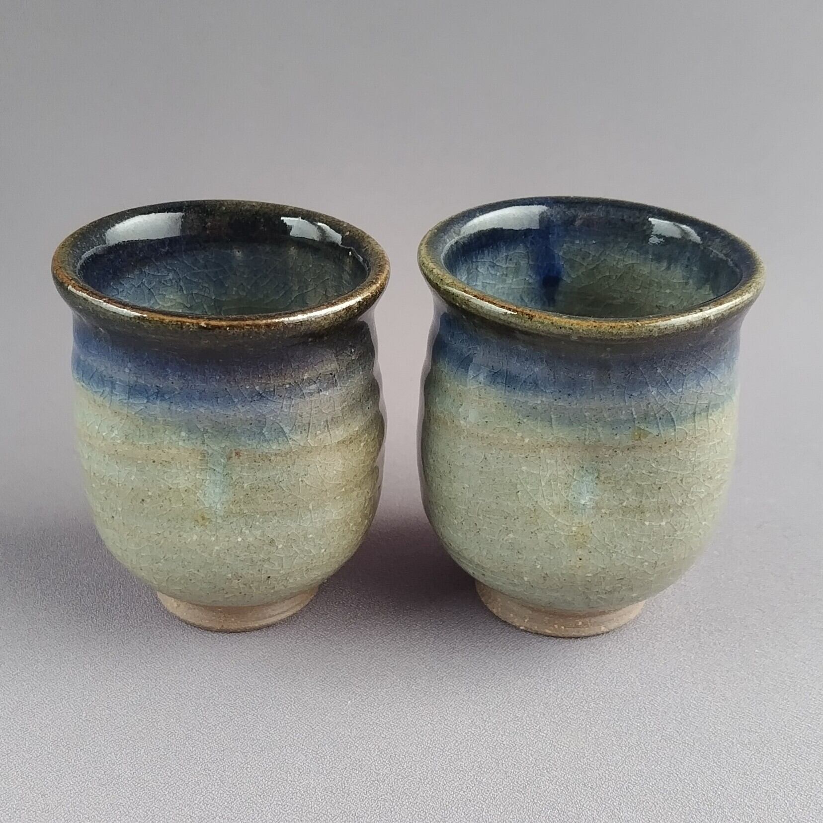 透明釉の縁に藍釉がかけられた、少し小ぶりのペアの湯呑茶碗です。