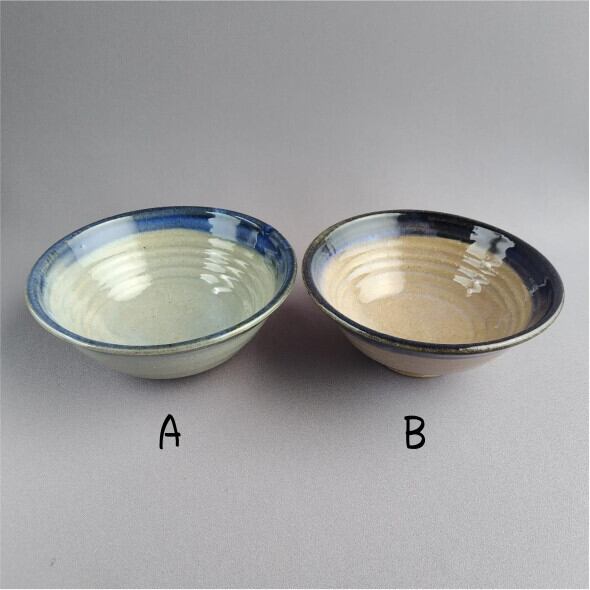 透明釉の縁に藍釉がかけられた大ぶりの御飯茶碗です。