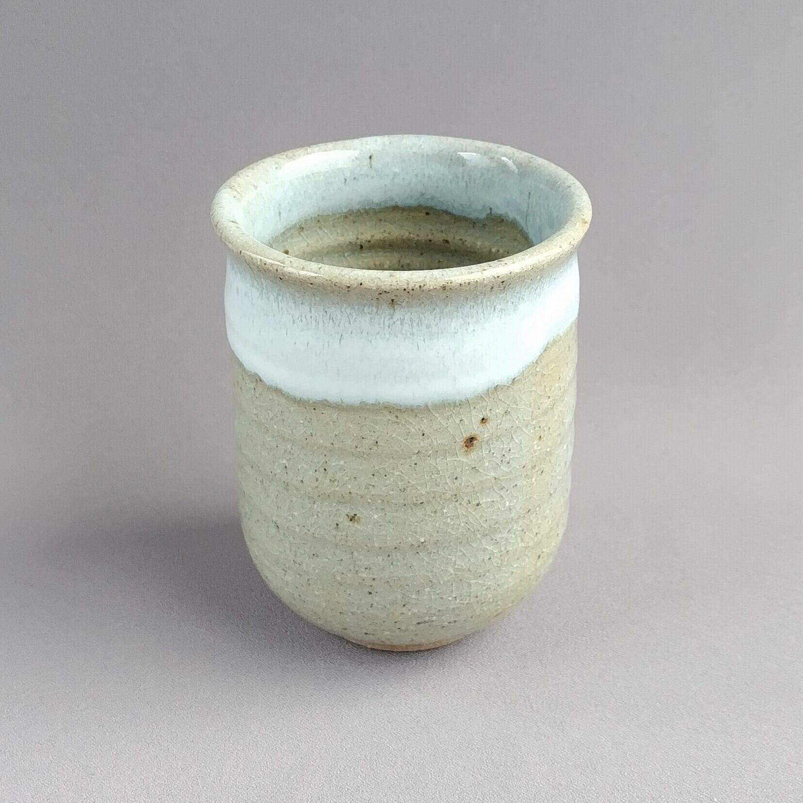 透明釉の縁に白萩釉がかけられた湯呑です。