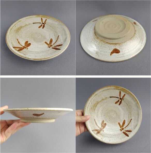 鉄絵にアイボリーのマット釉を掛けてあります。