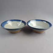 透明釉の縁に藍釉がかけられたペアの鉢です。