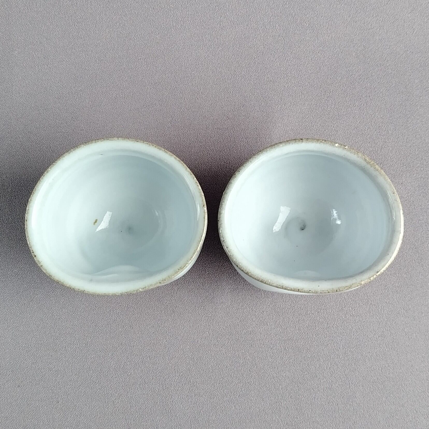 白萩釉がかけられたペアのぐい吞みです。