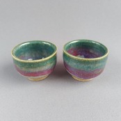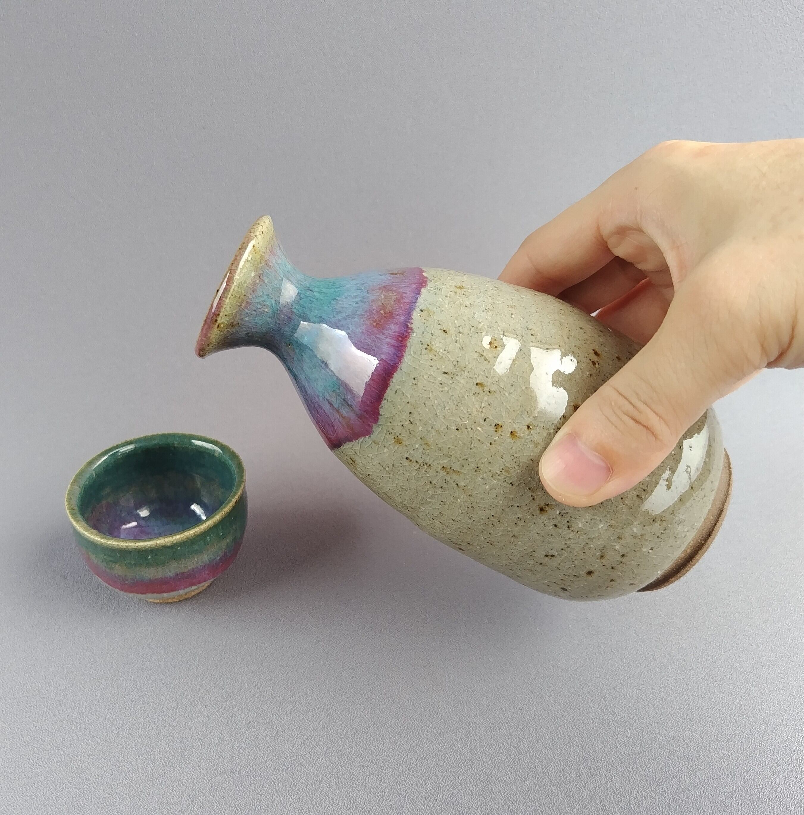 透明釉の縁に緑釉がかけられた徳利とぐい吞みのセットです。