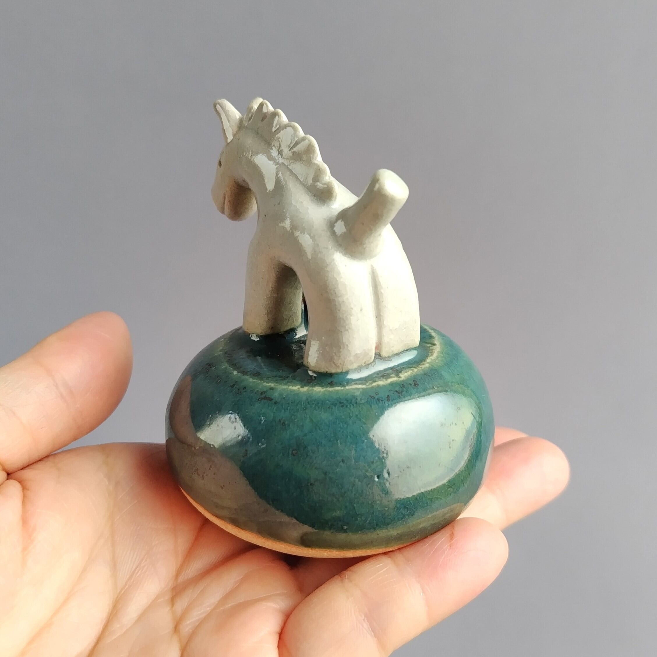 馬本体:青磁釉・台:緑釉