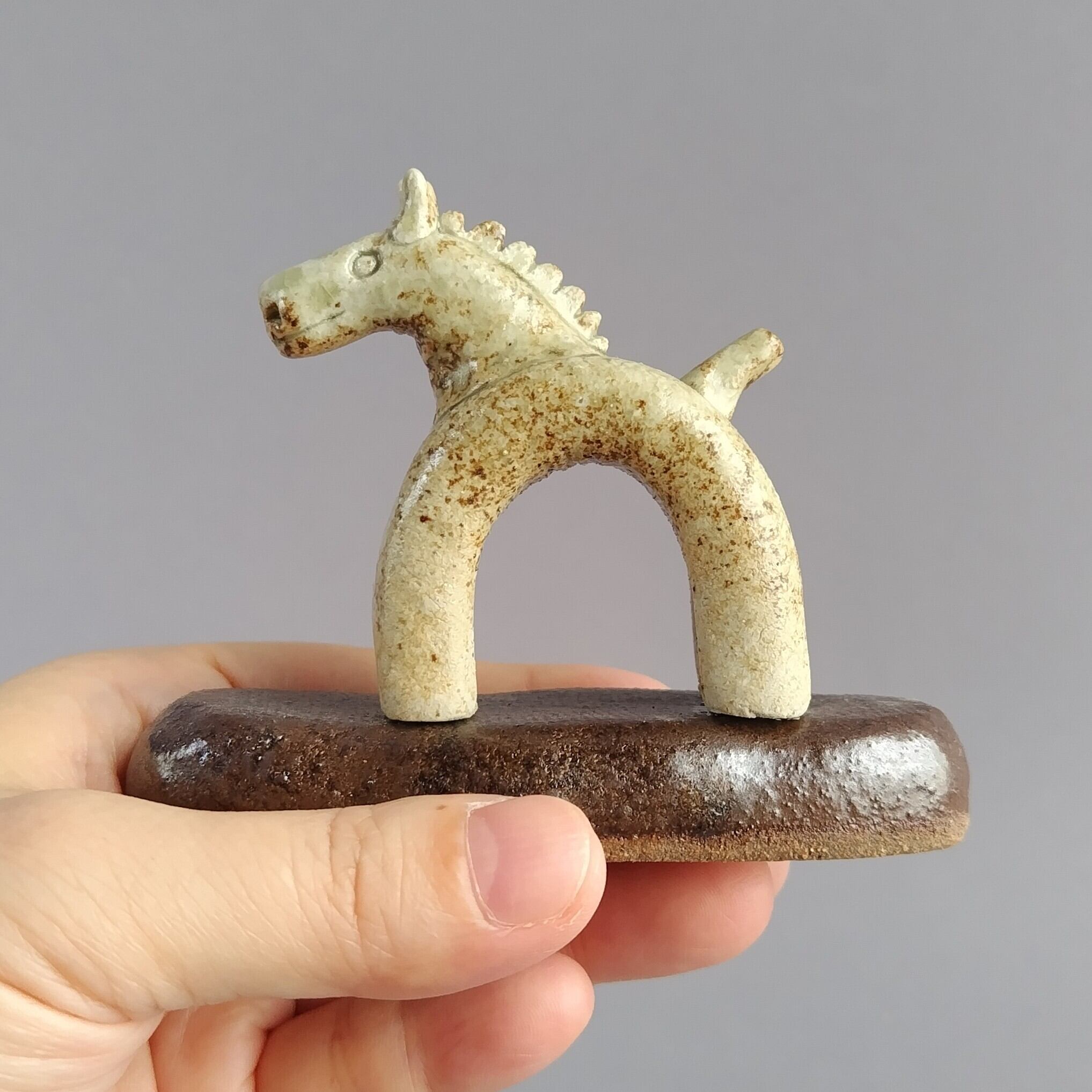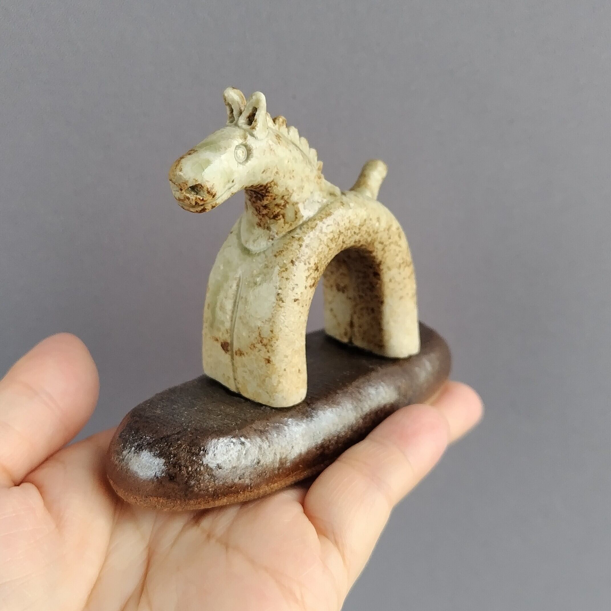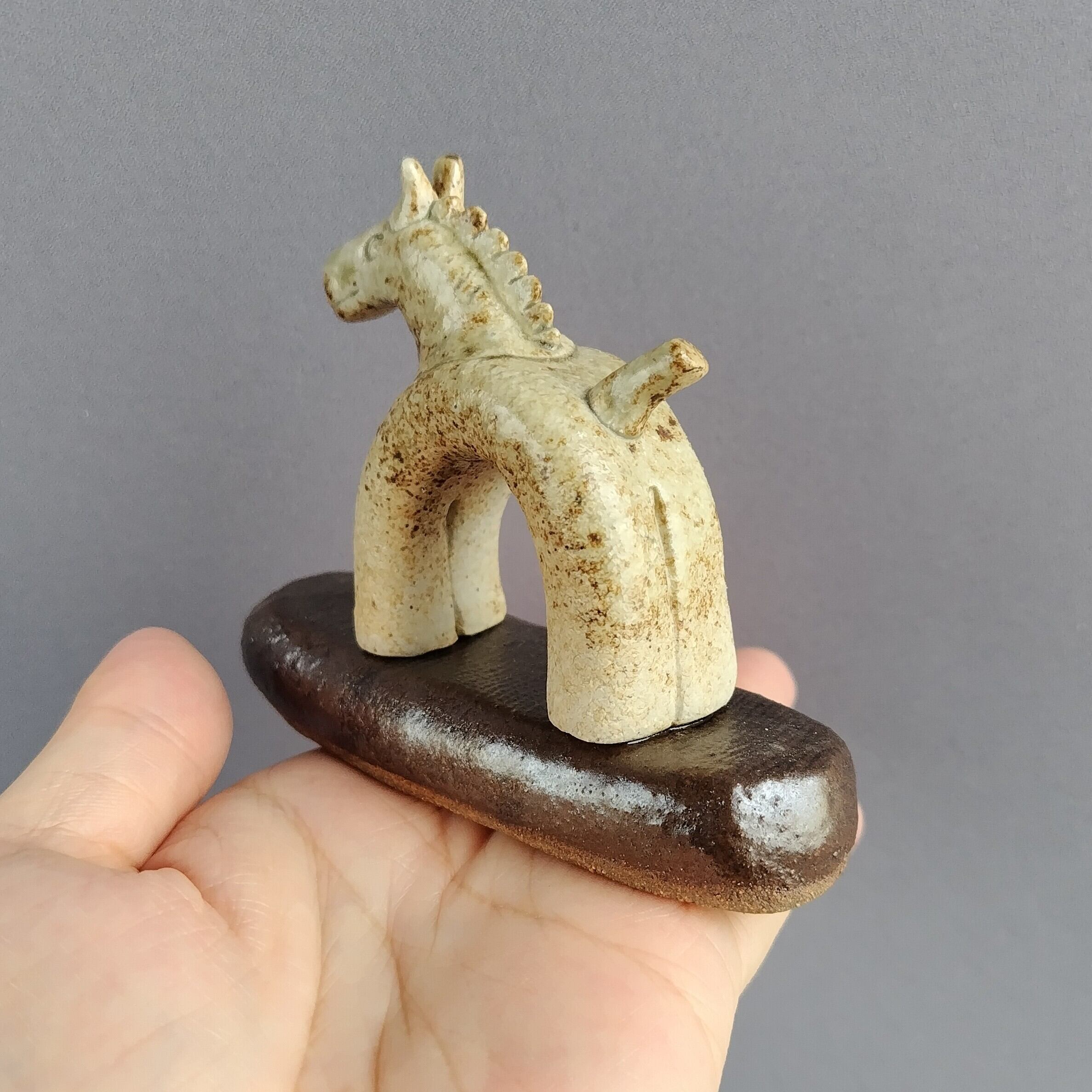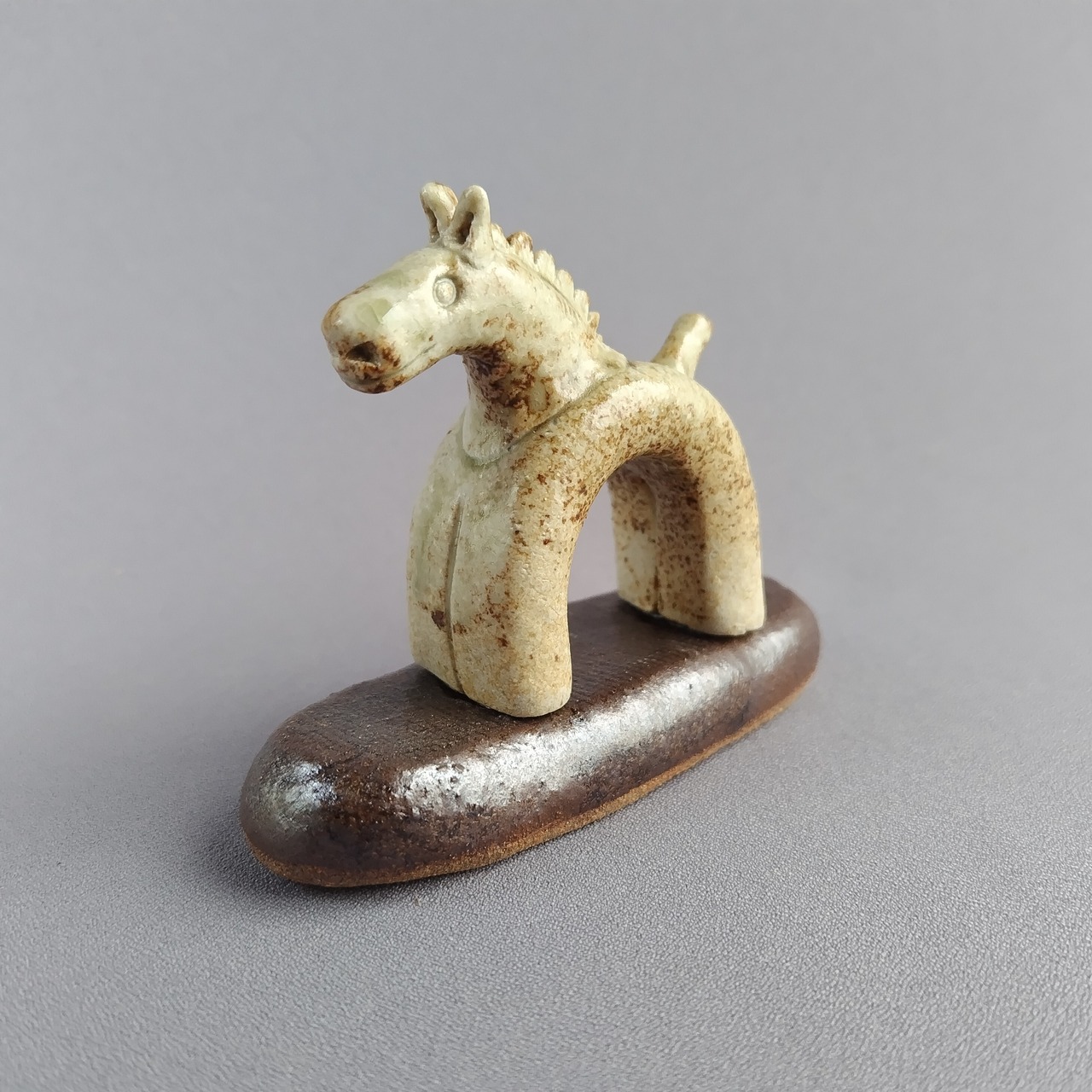 馬本体:灰釉・台:黒マット釉