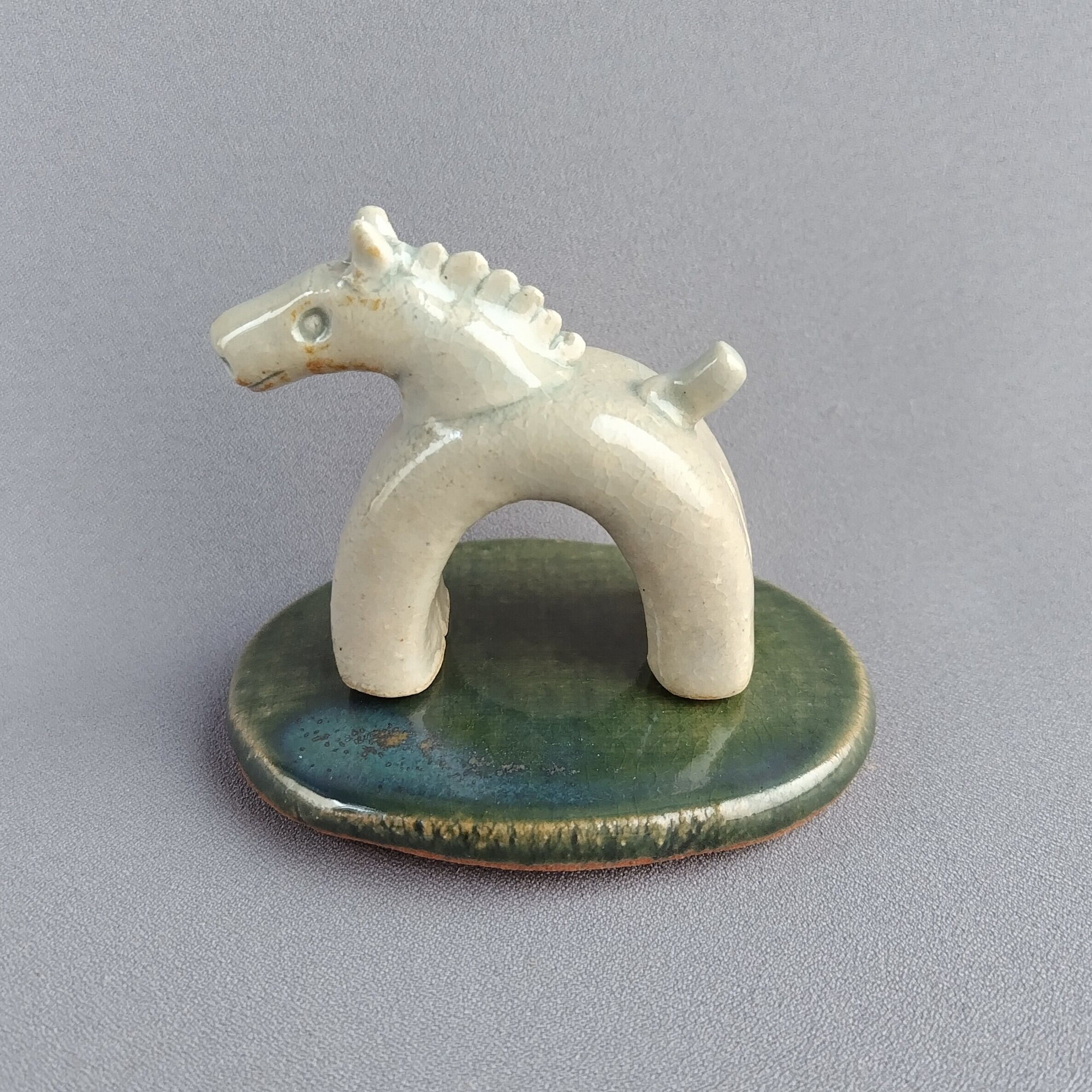 馬本体:青磁釉・台:緑釉