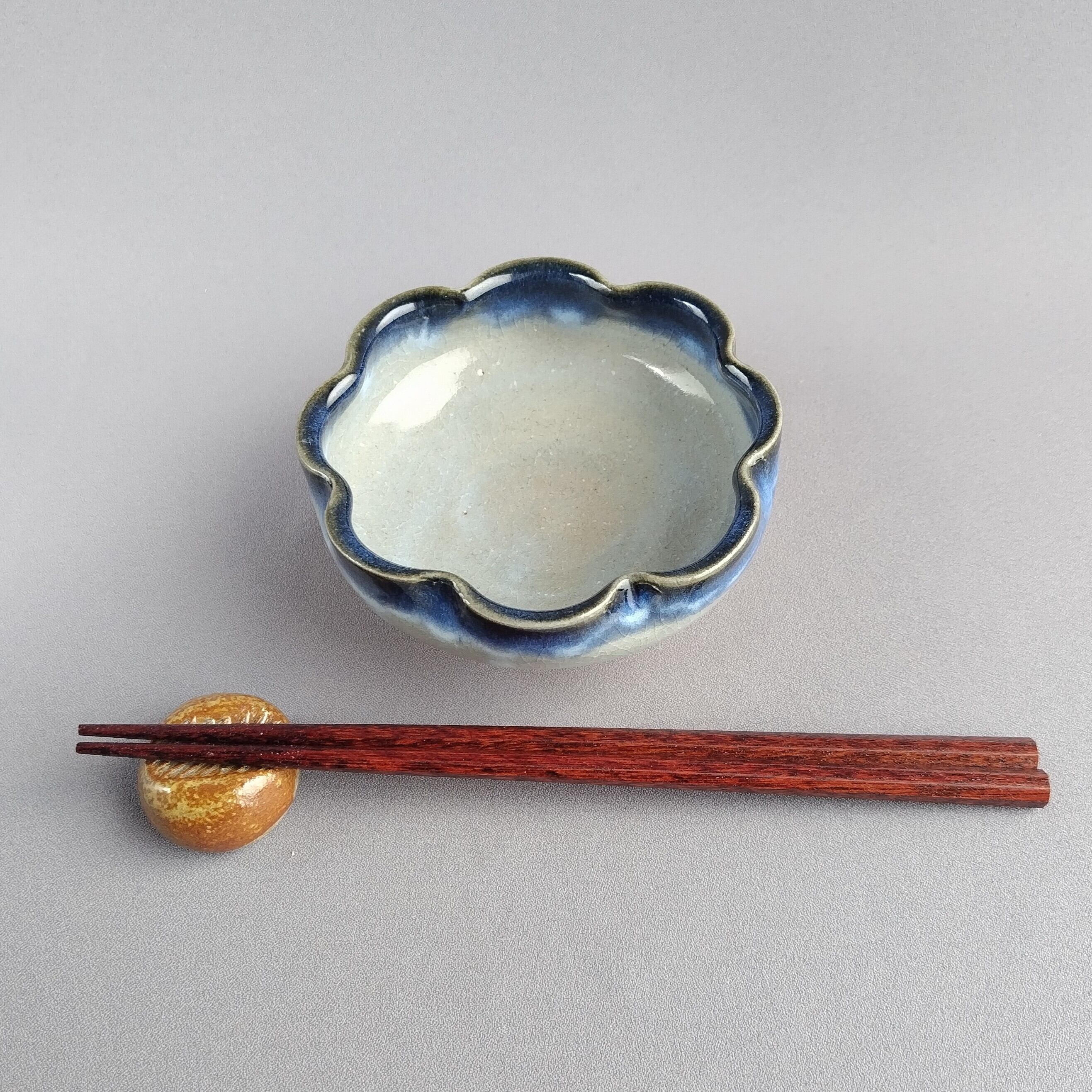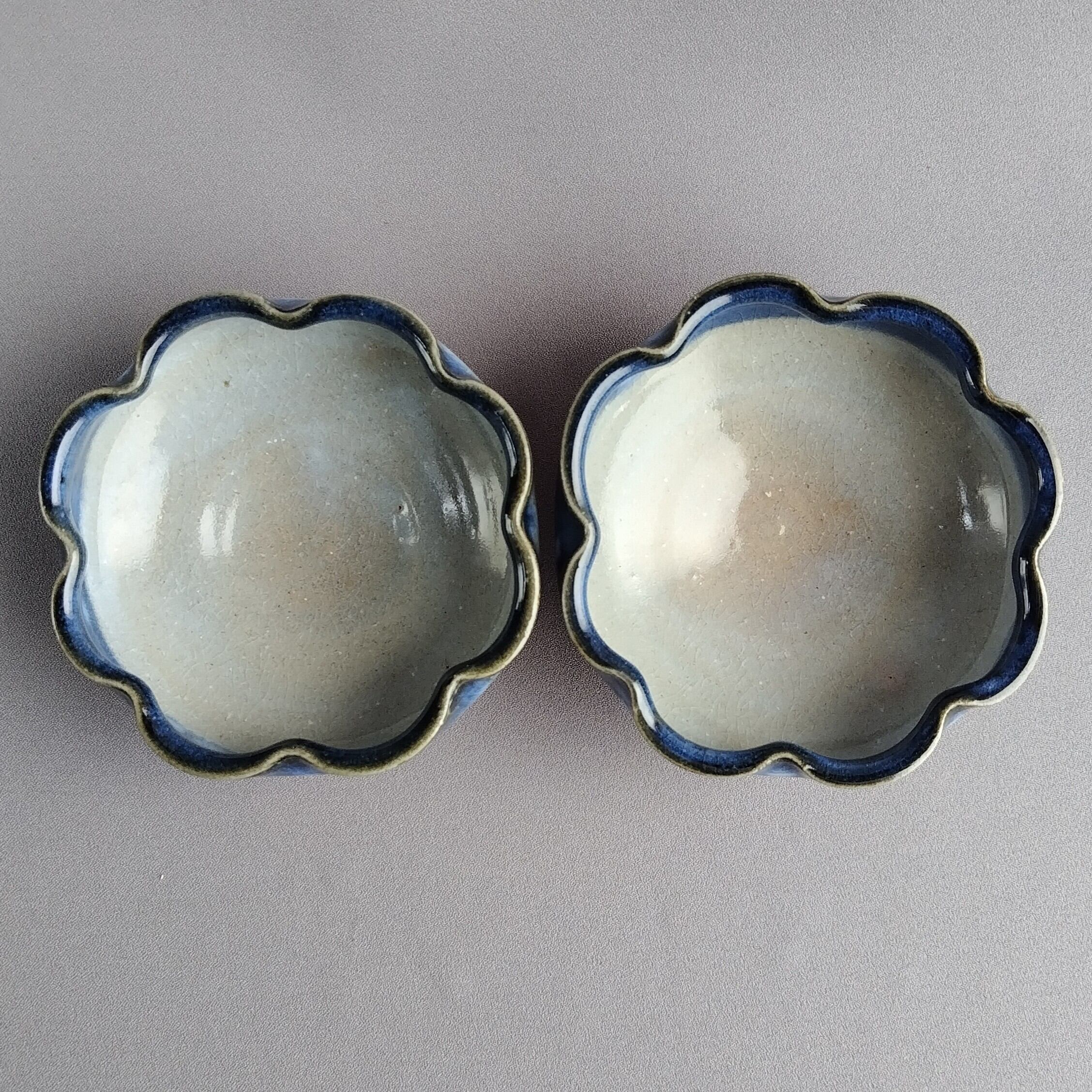 花形小鉢 藍釉 ペア 【商品番号:00800】