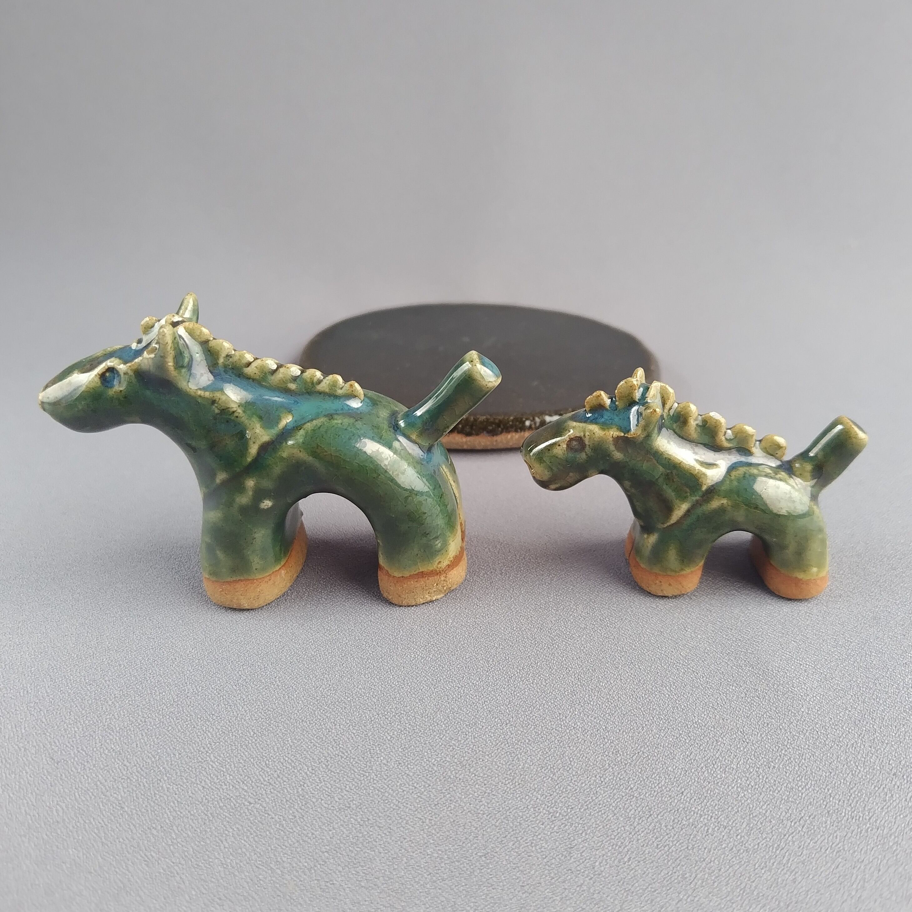 馬本体:緑釉・台:黒釉