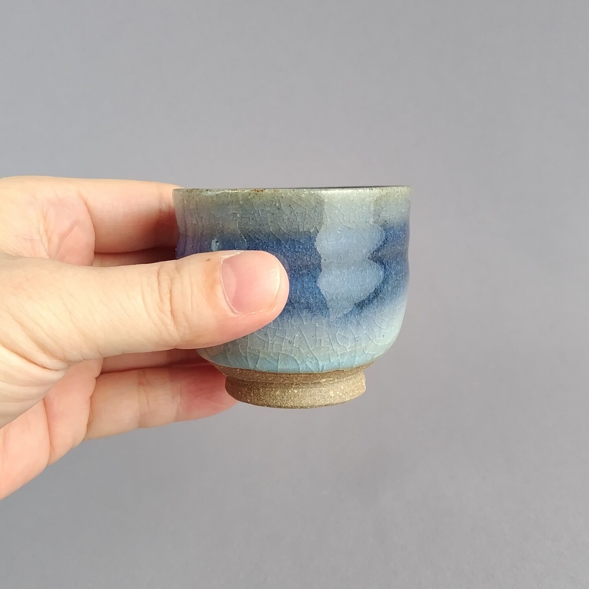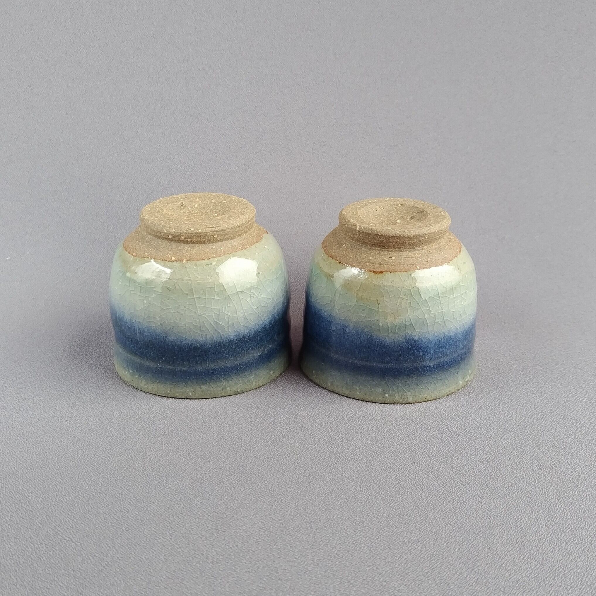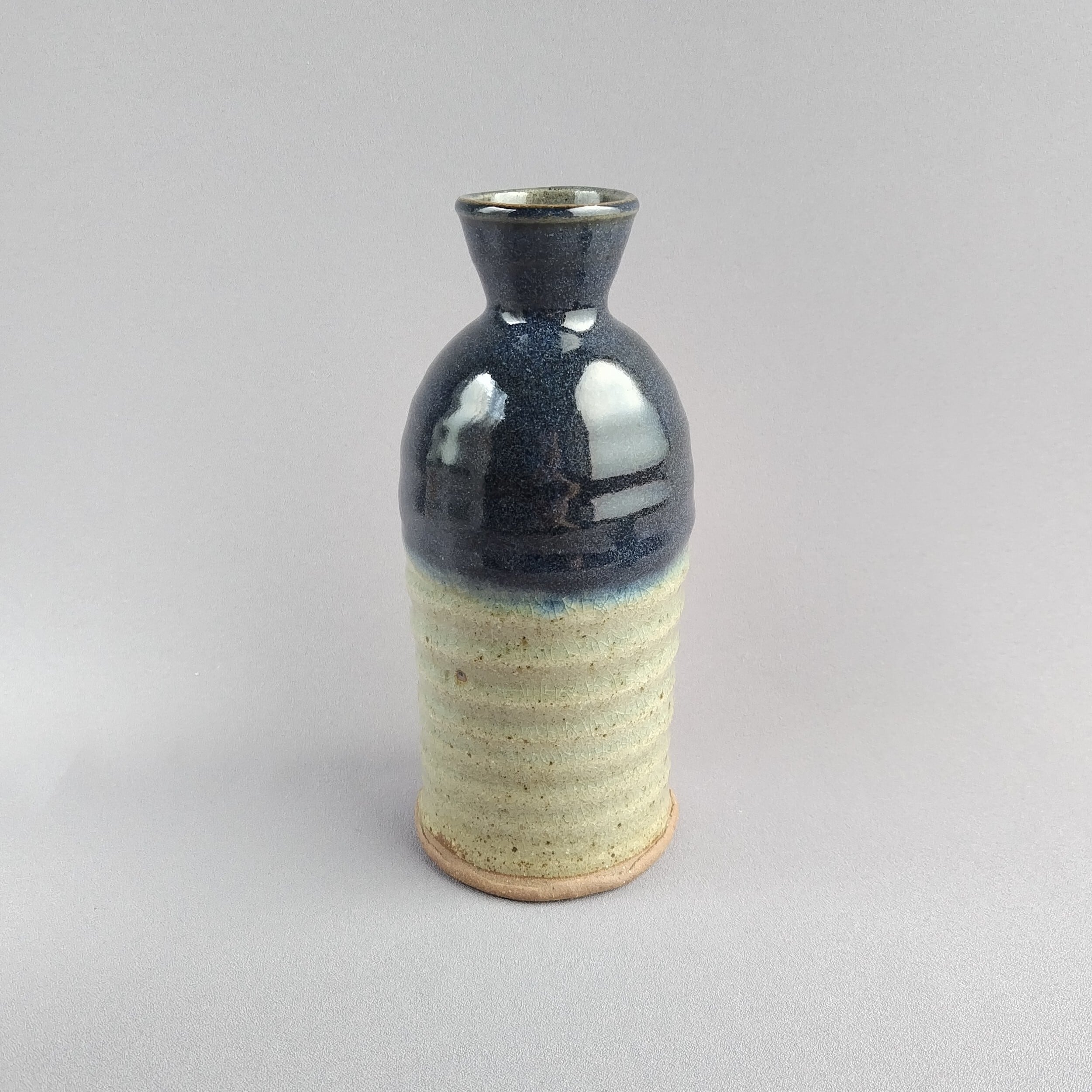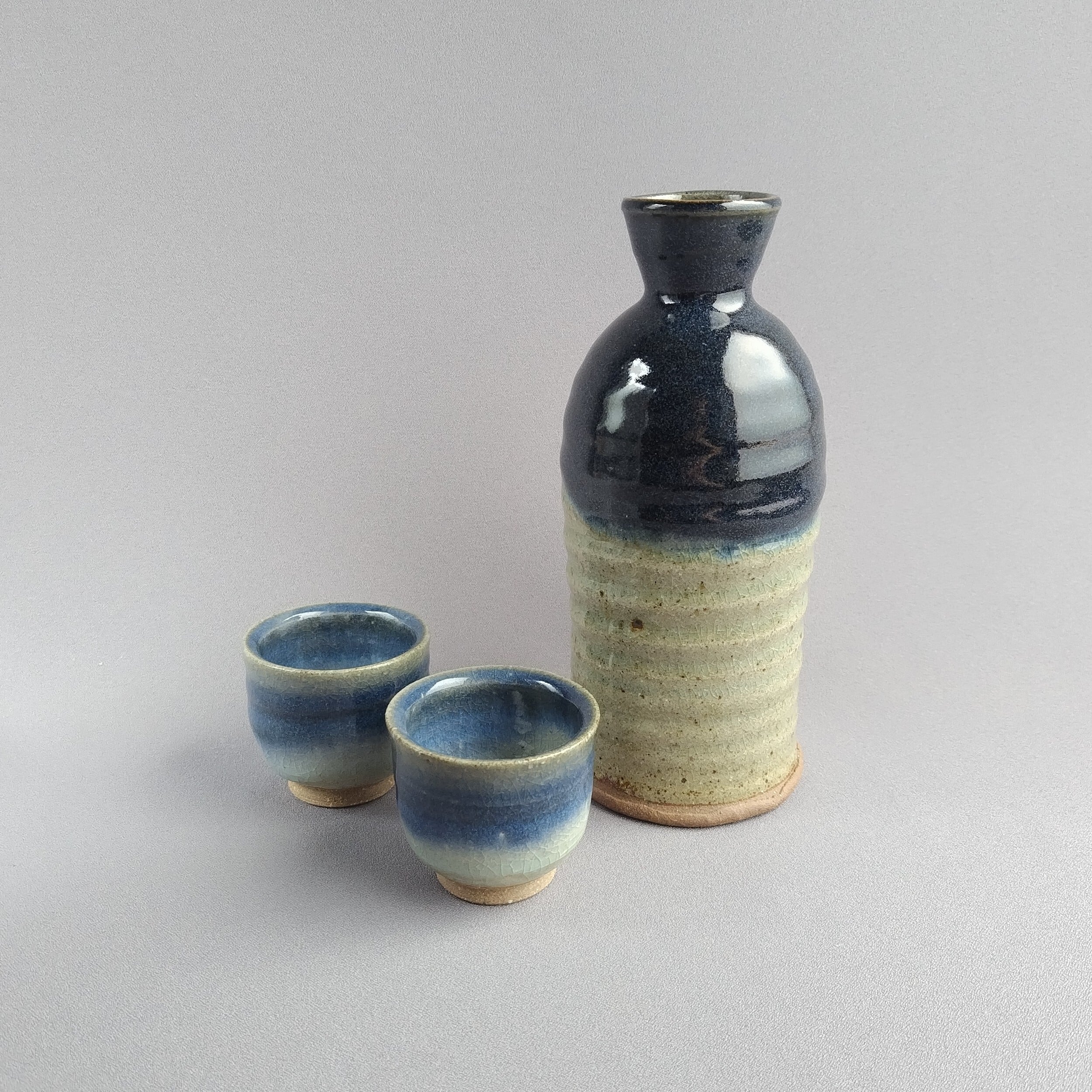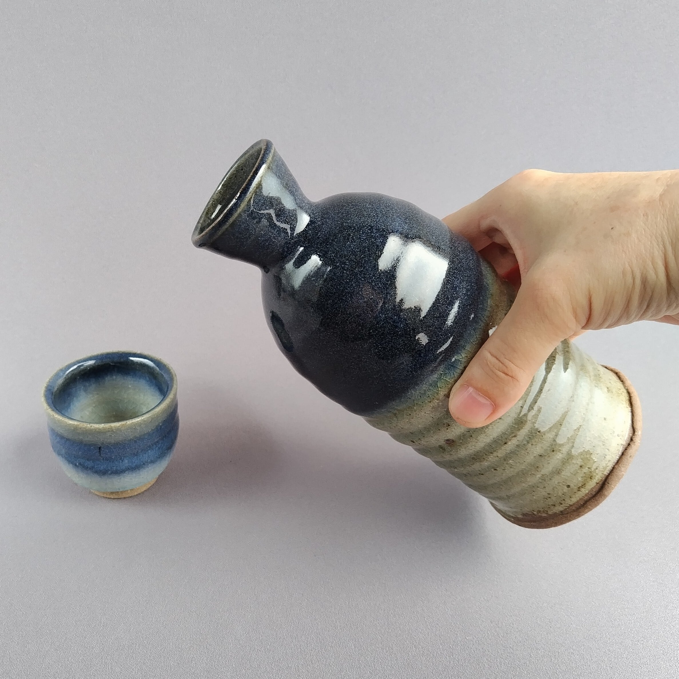 透明釉の縁に藍釉がかけられた徳利とぐい吞みのセットです。