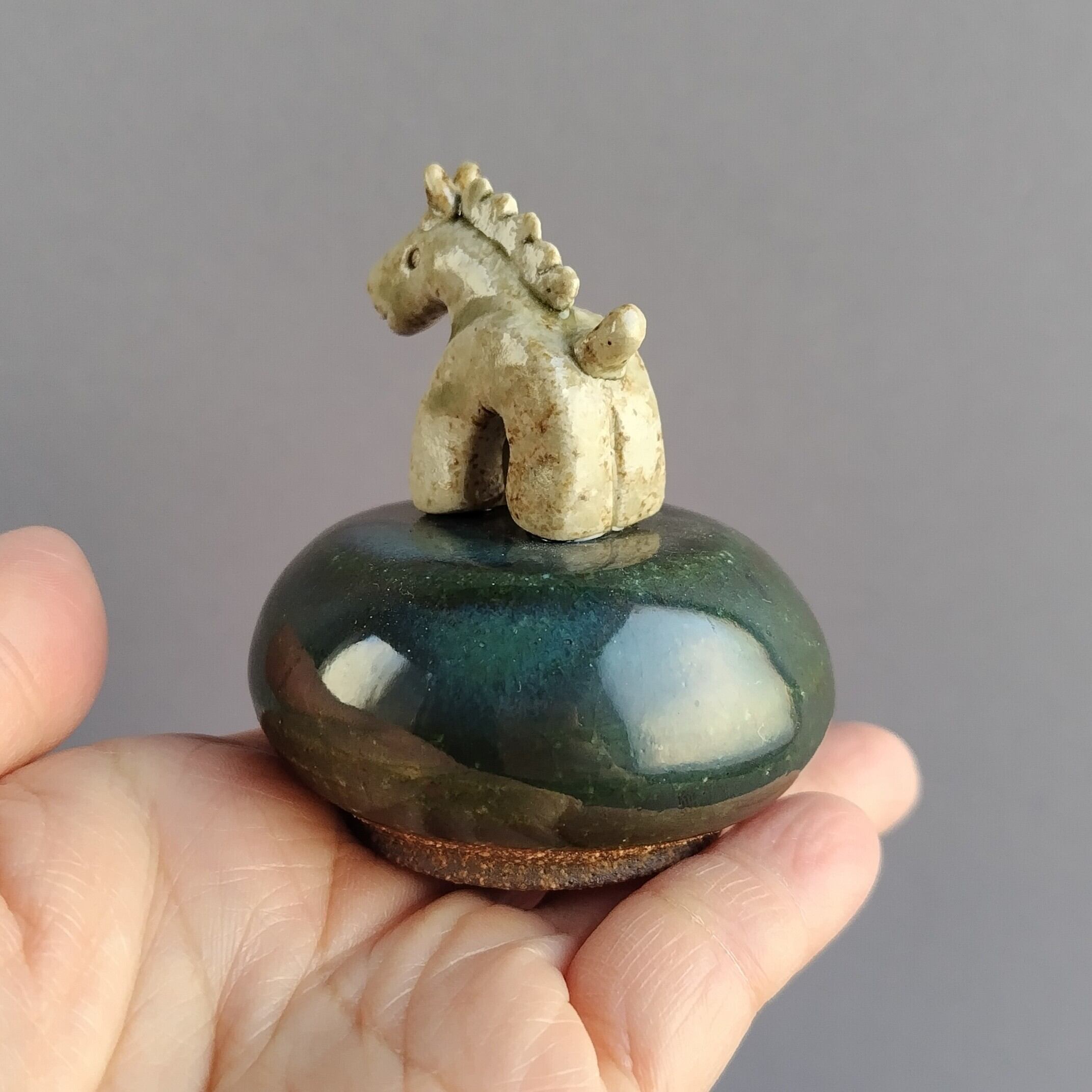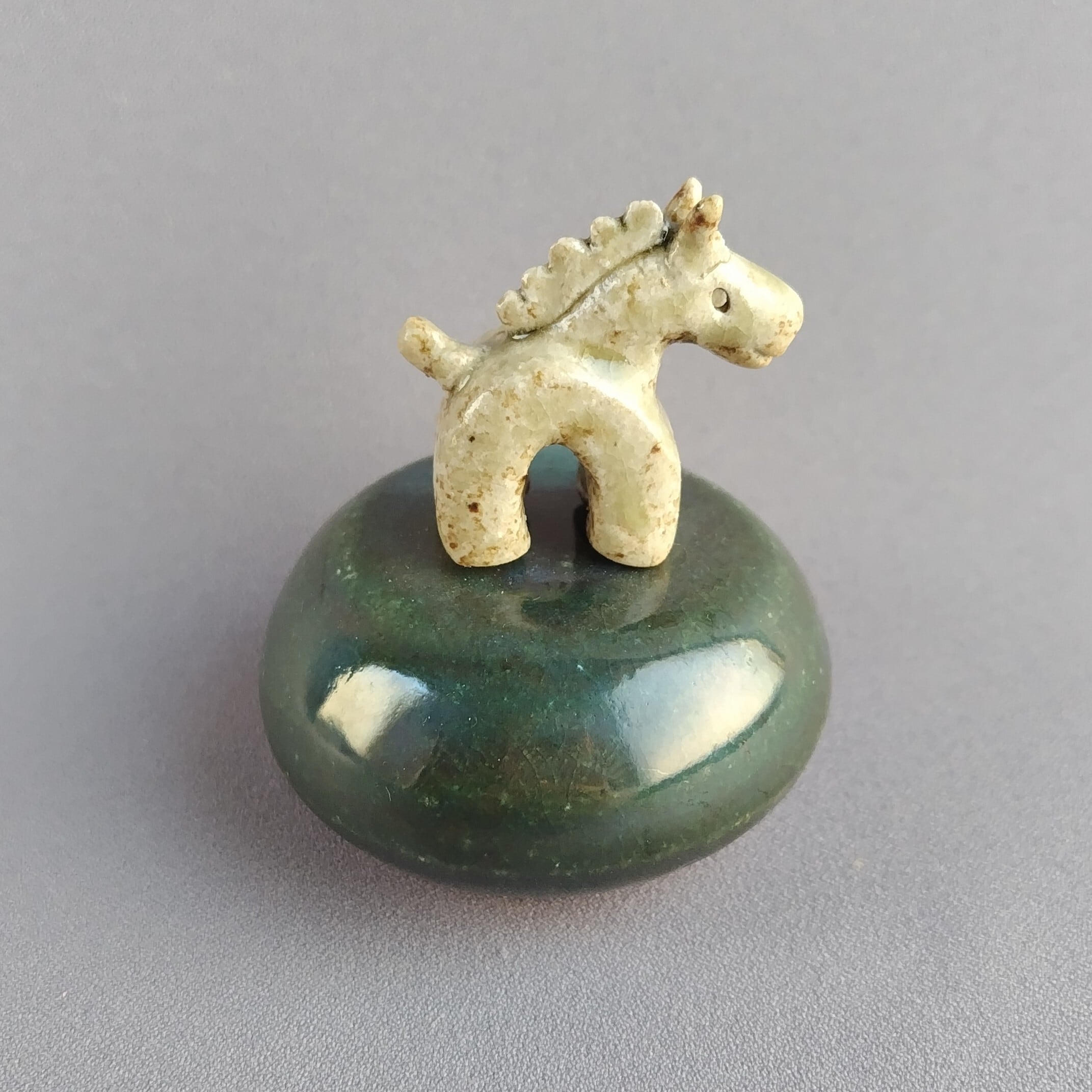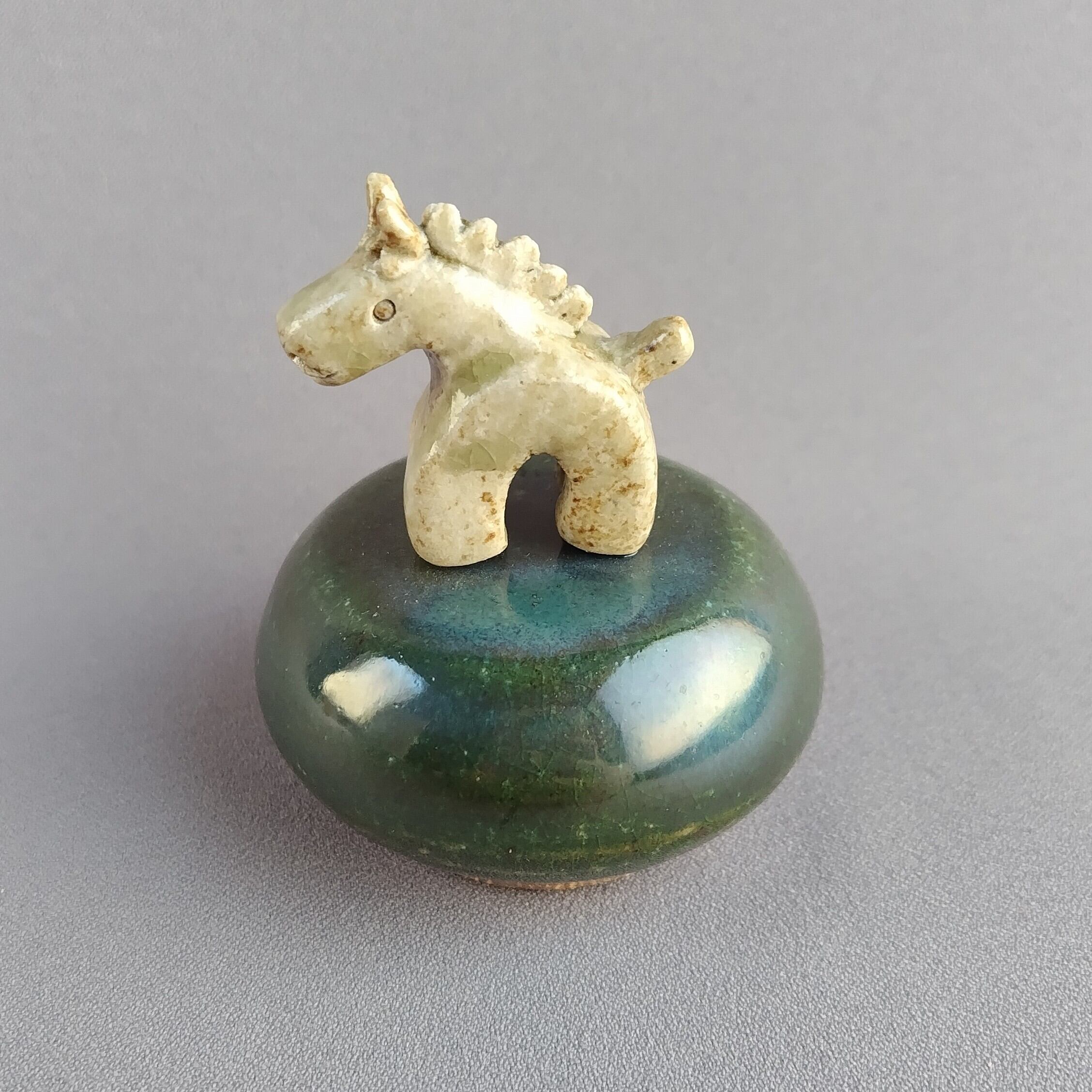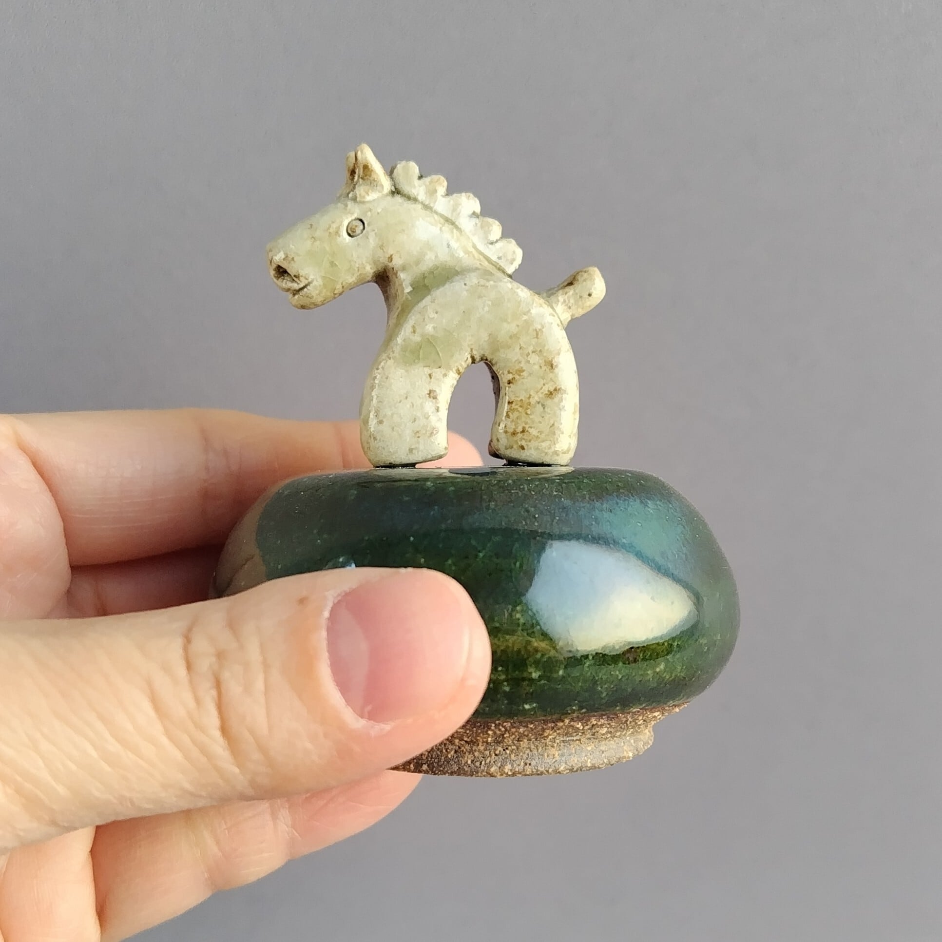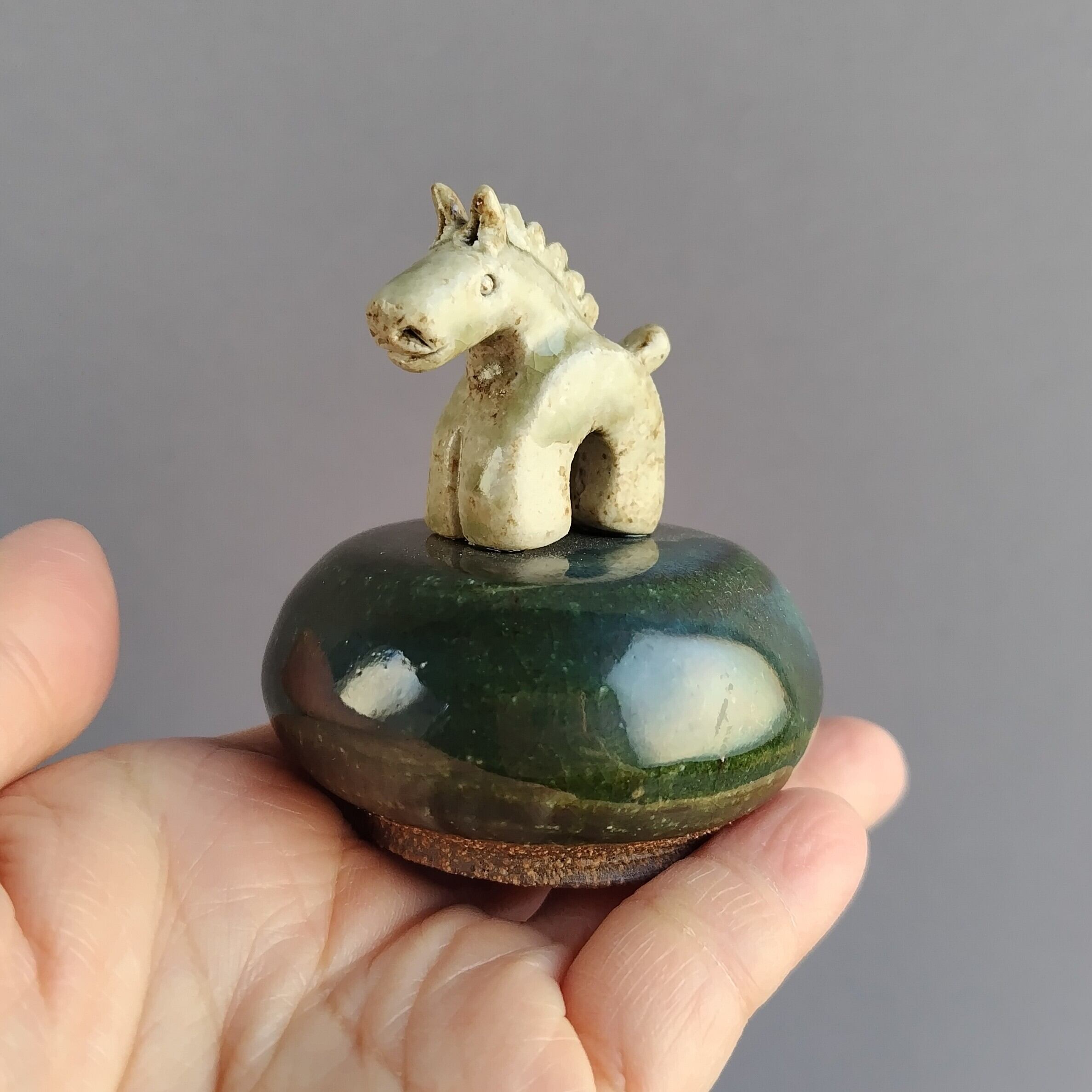 馬本体:灰釉・台:緑釉