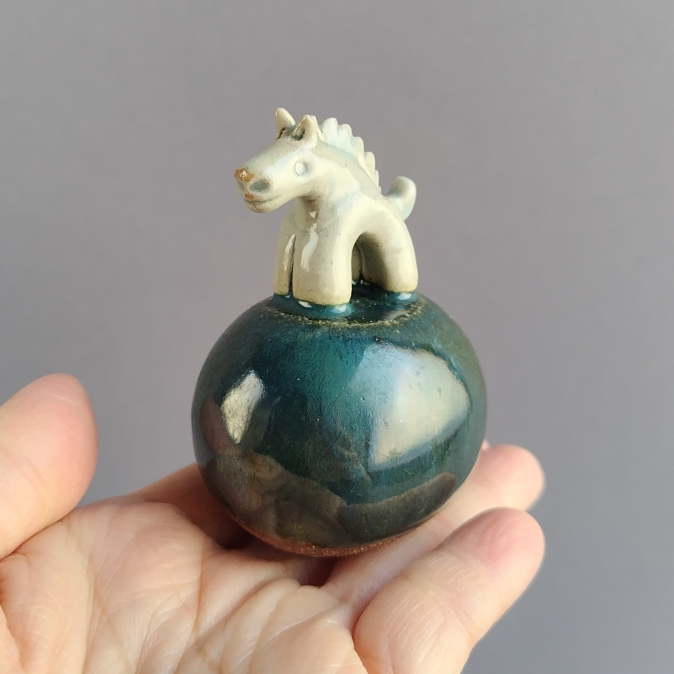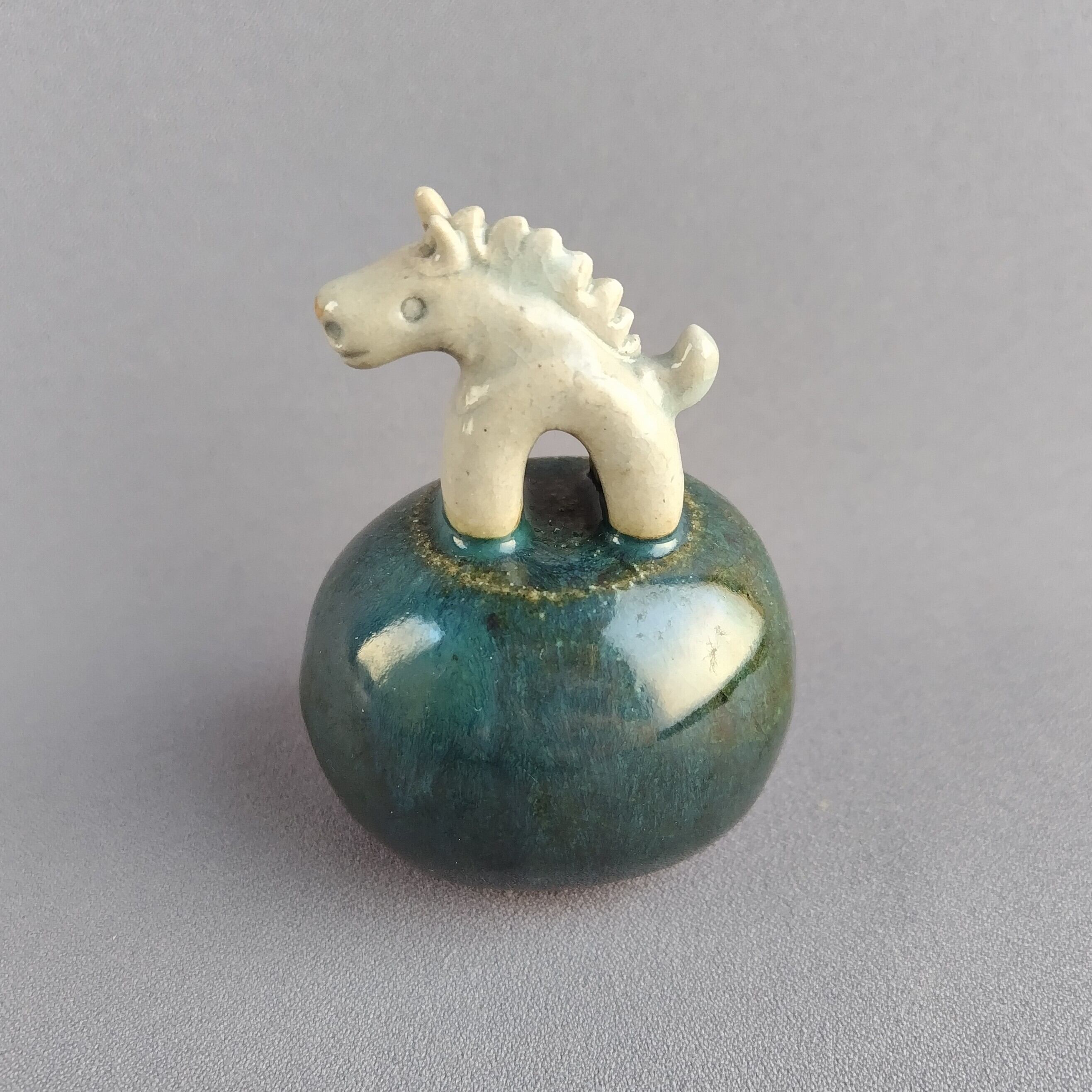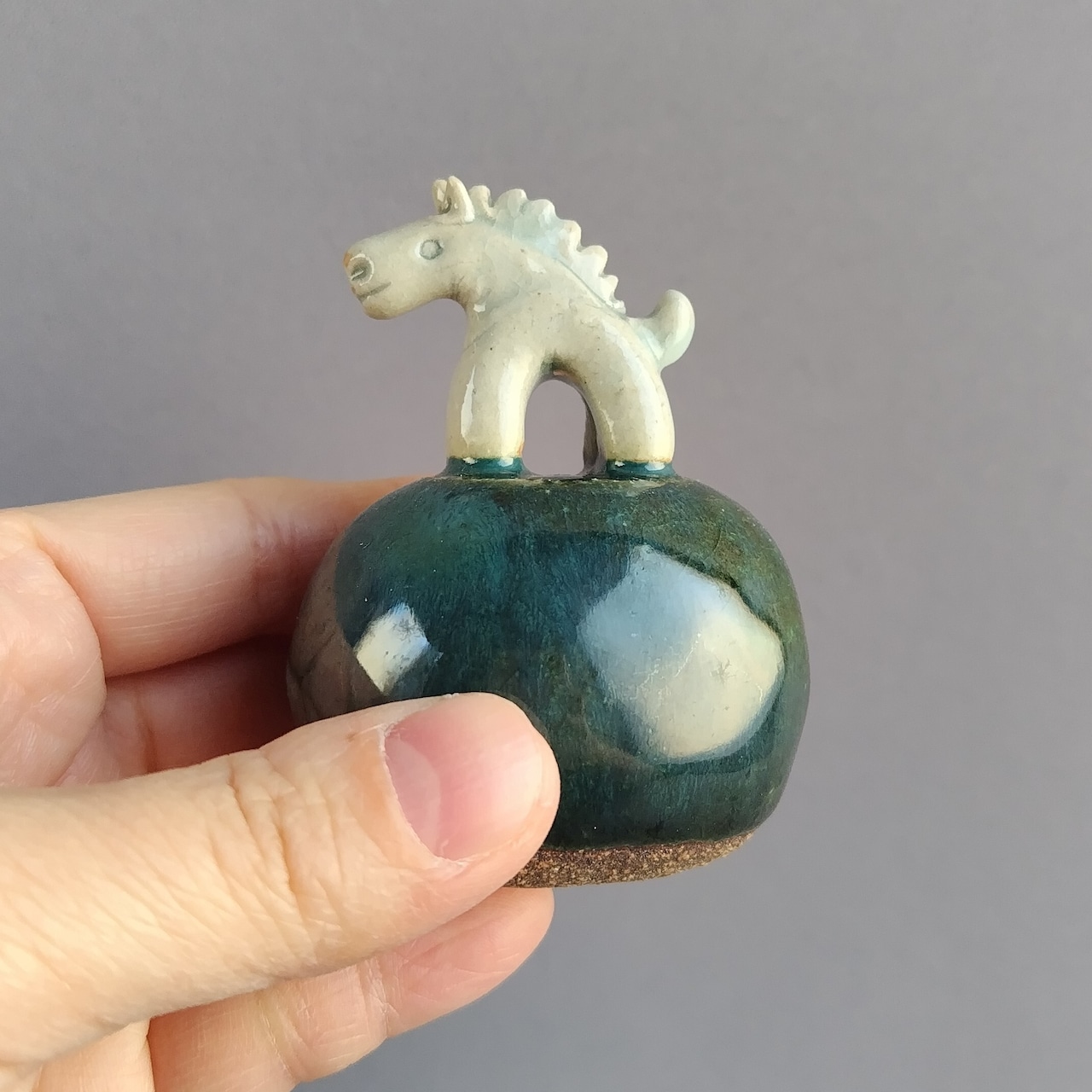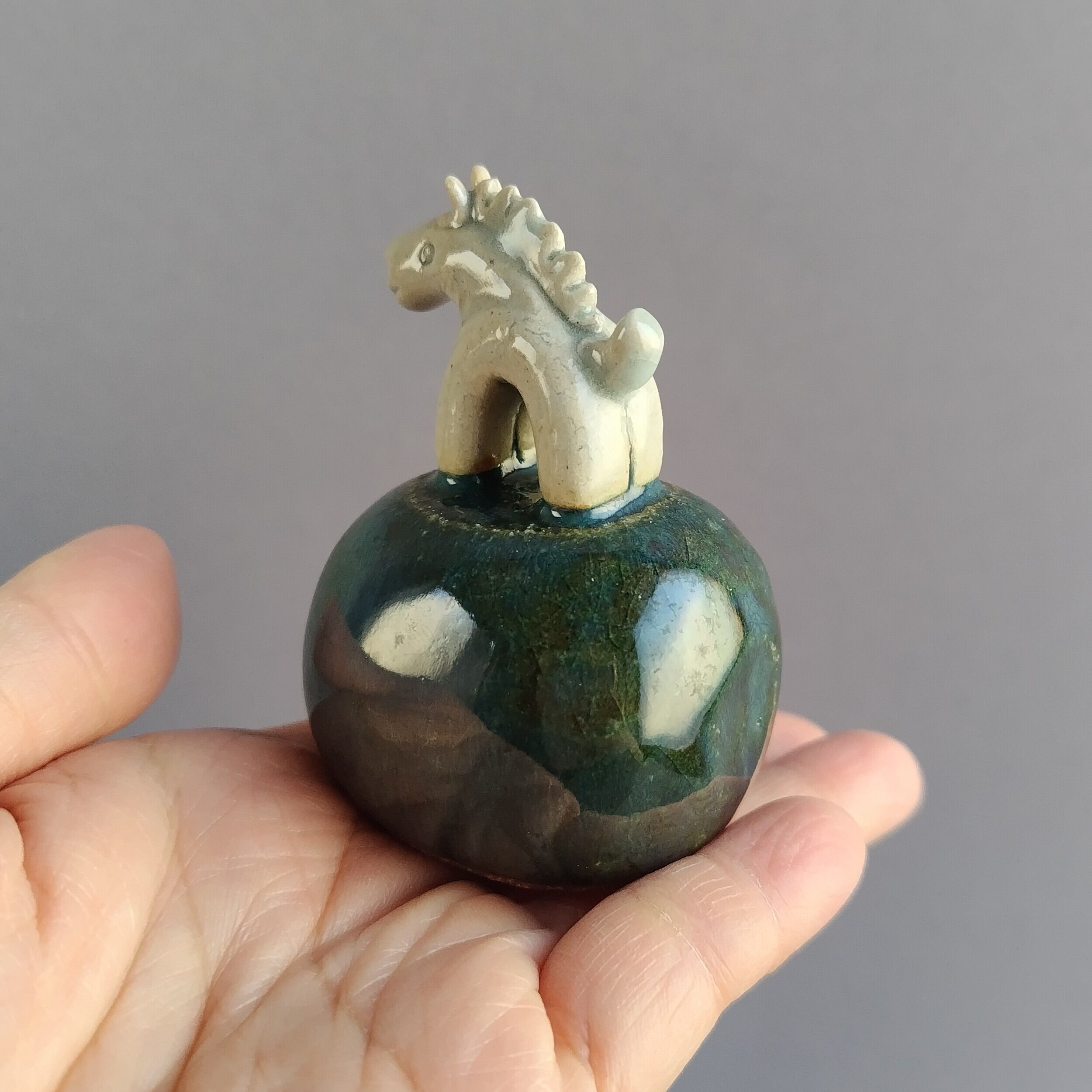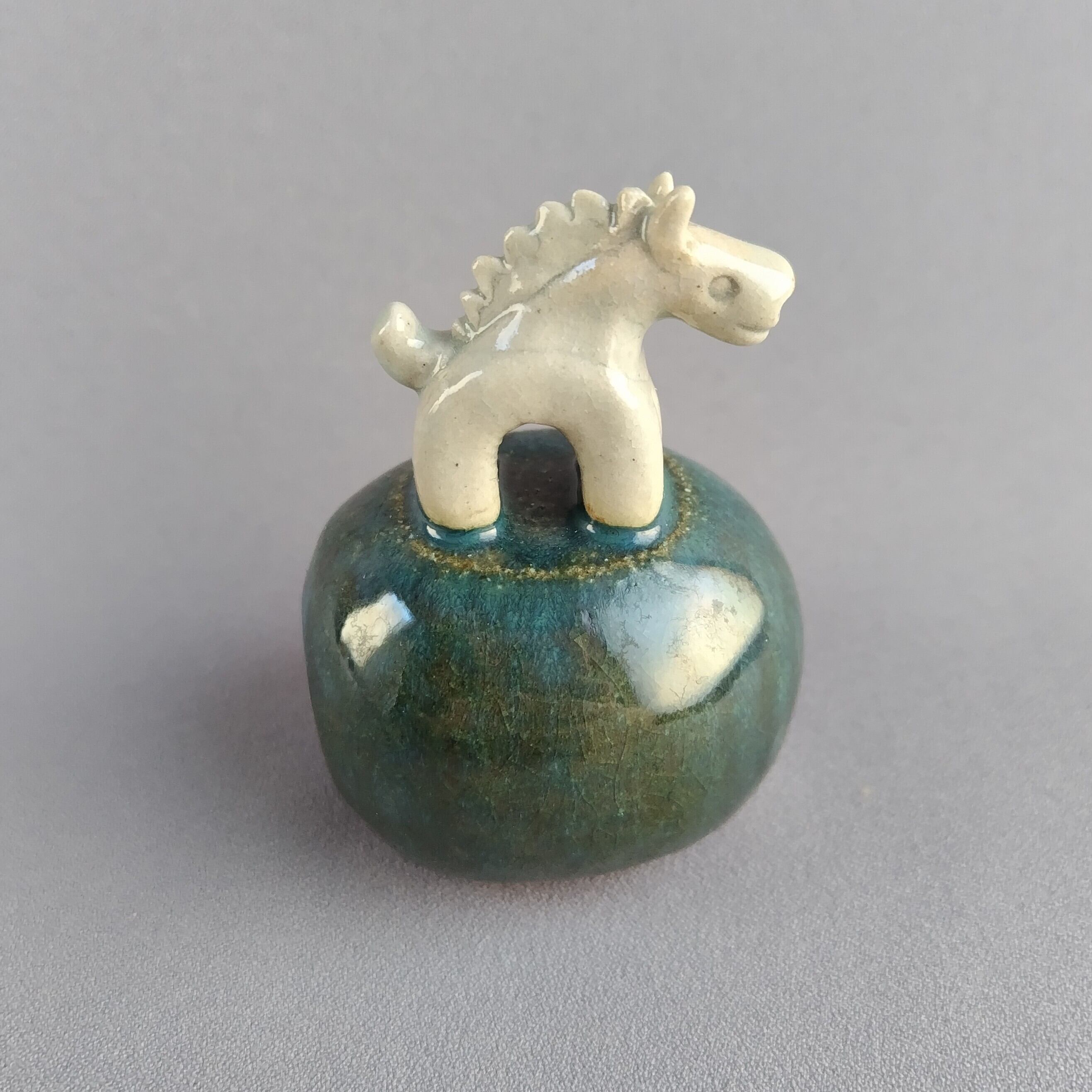 馬本体:青磁釉・台:緑釉
