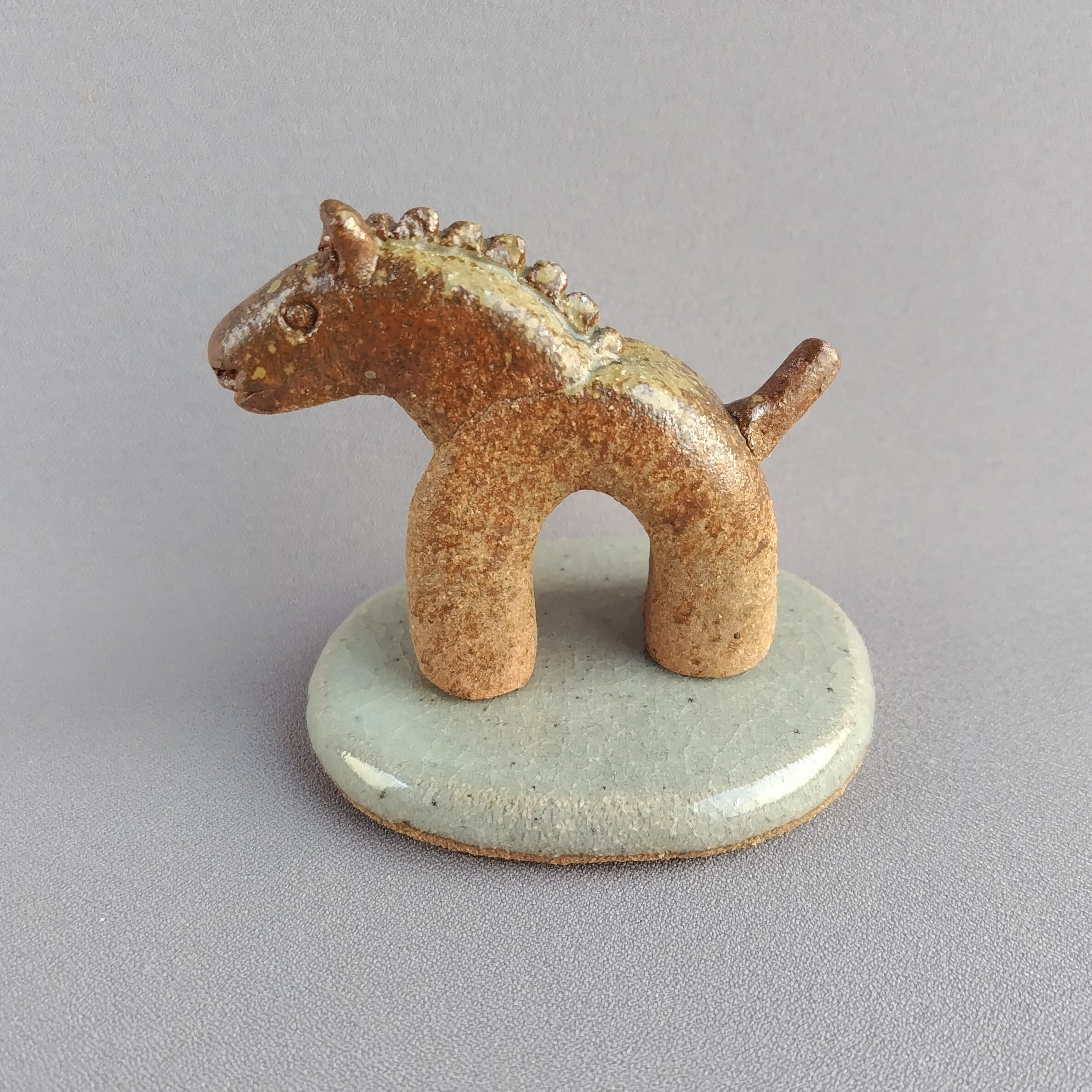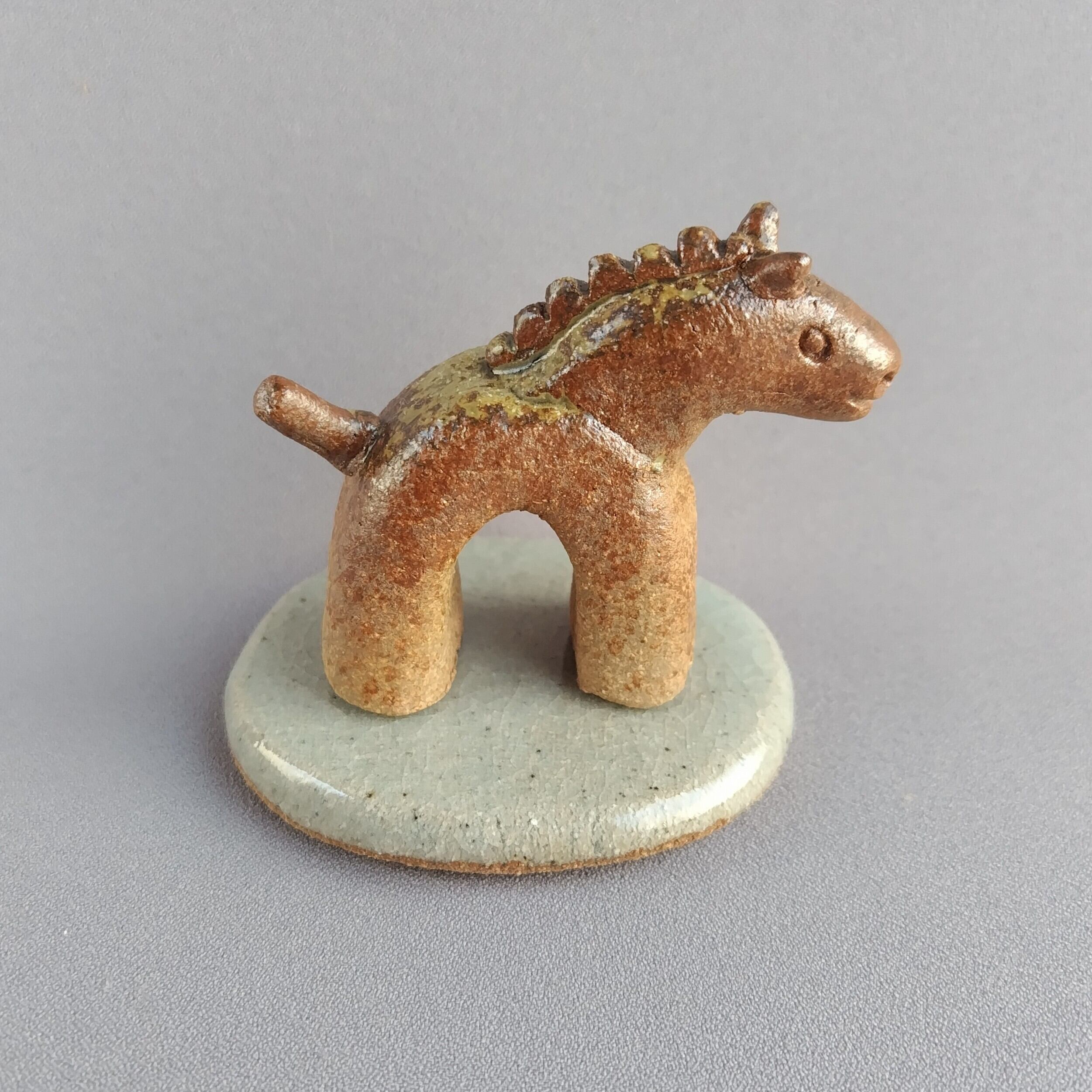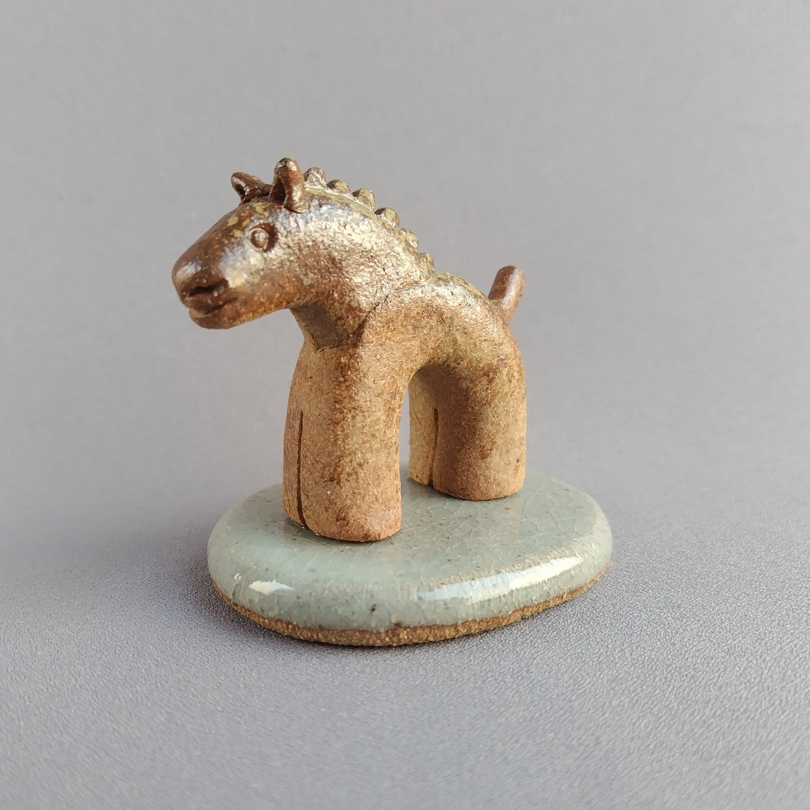 馬本体:灰釉・台:透明釉
