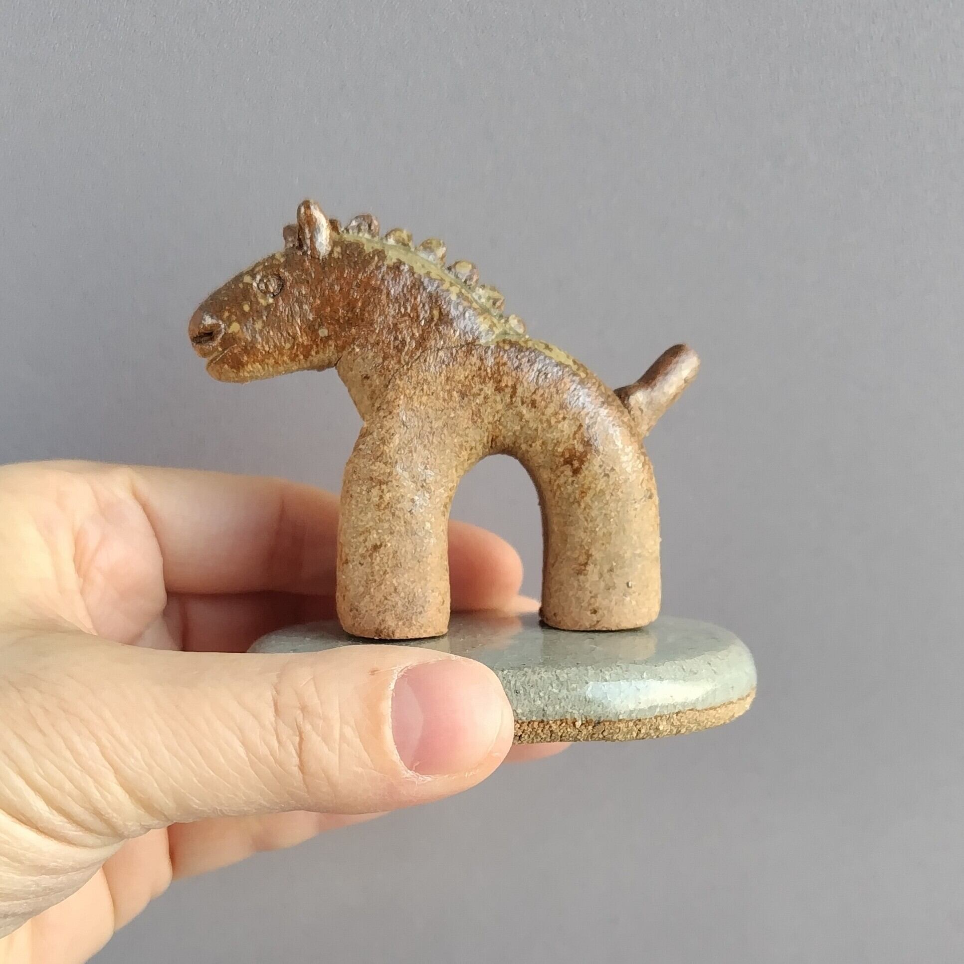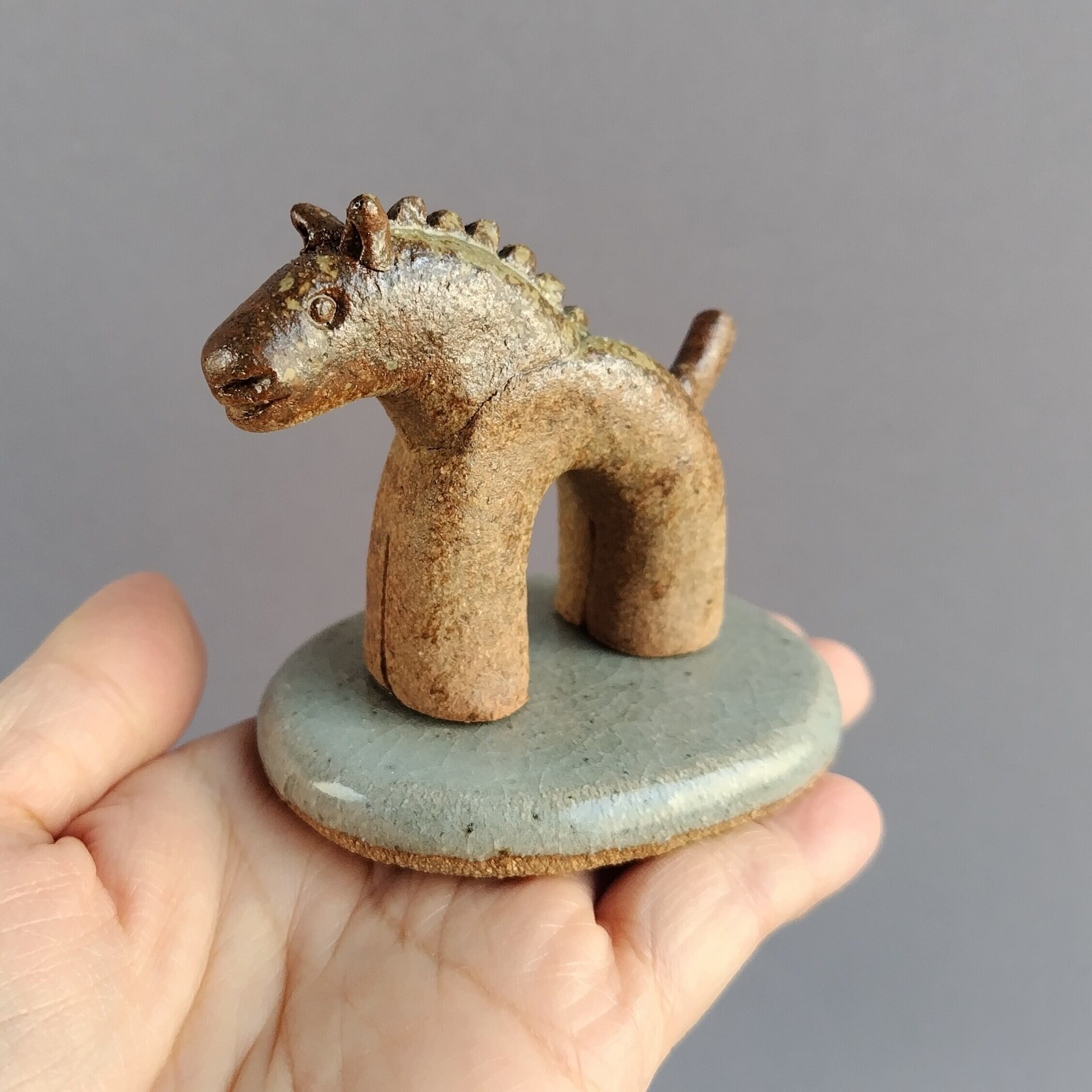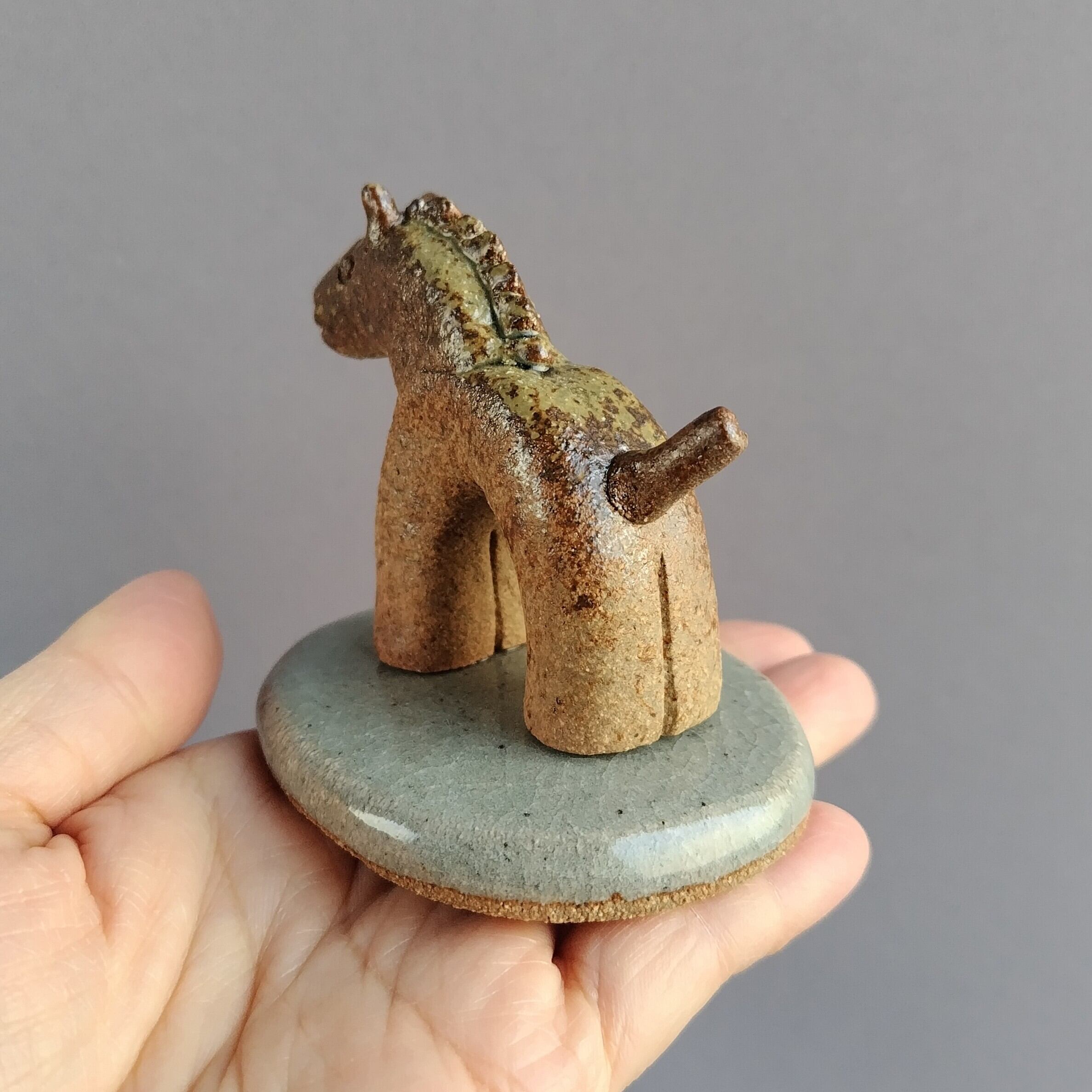 馬本体:灰釉・台:透明釉