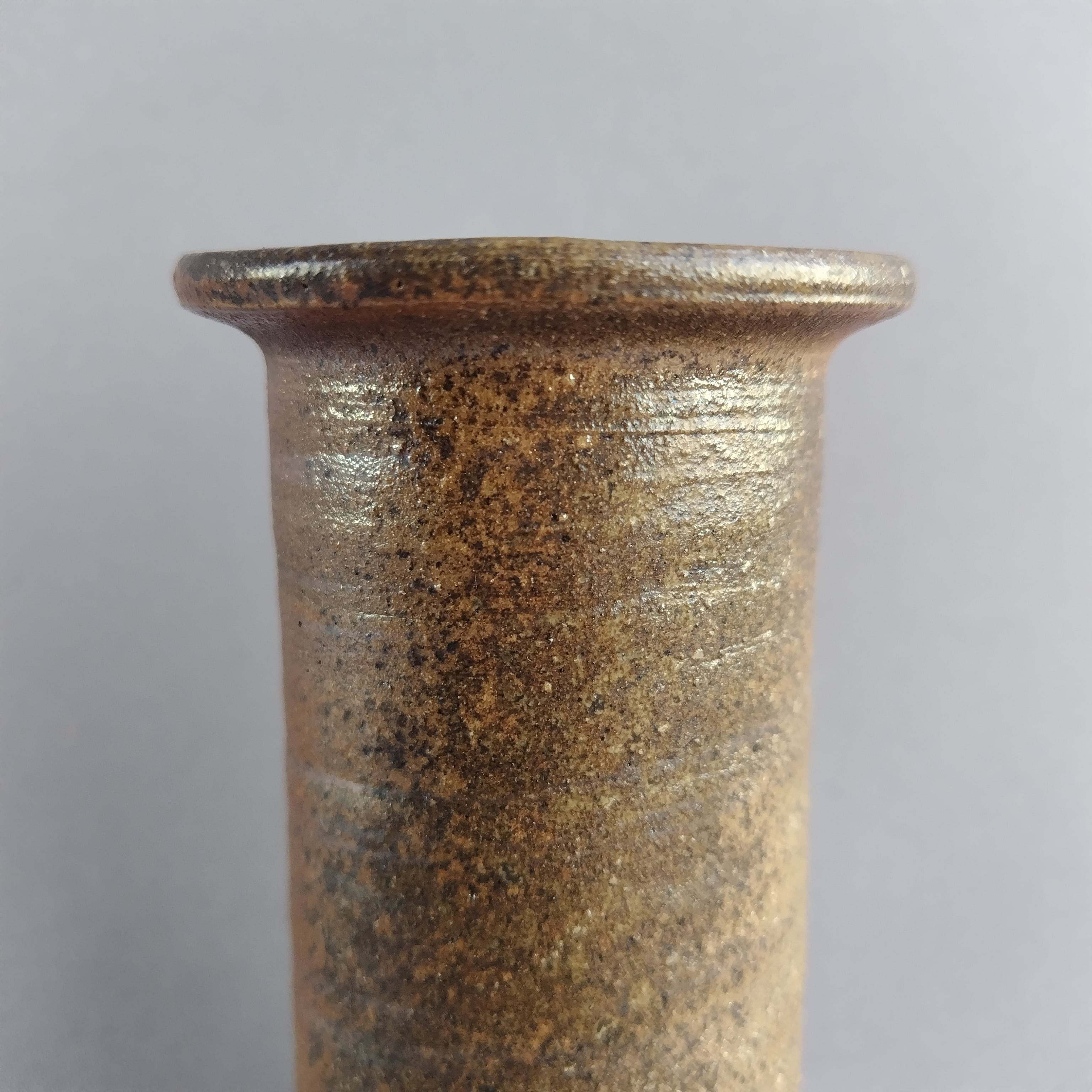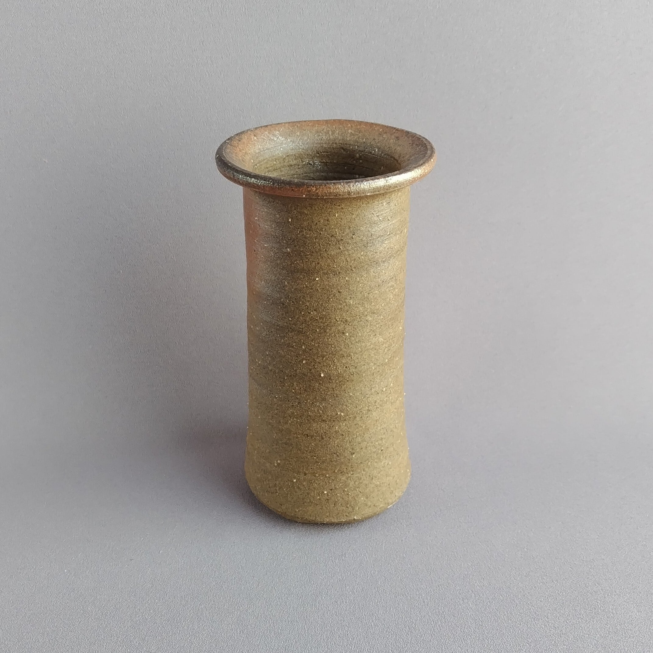 筒形の焼締めの花入れです。