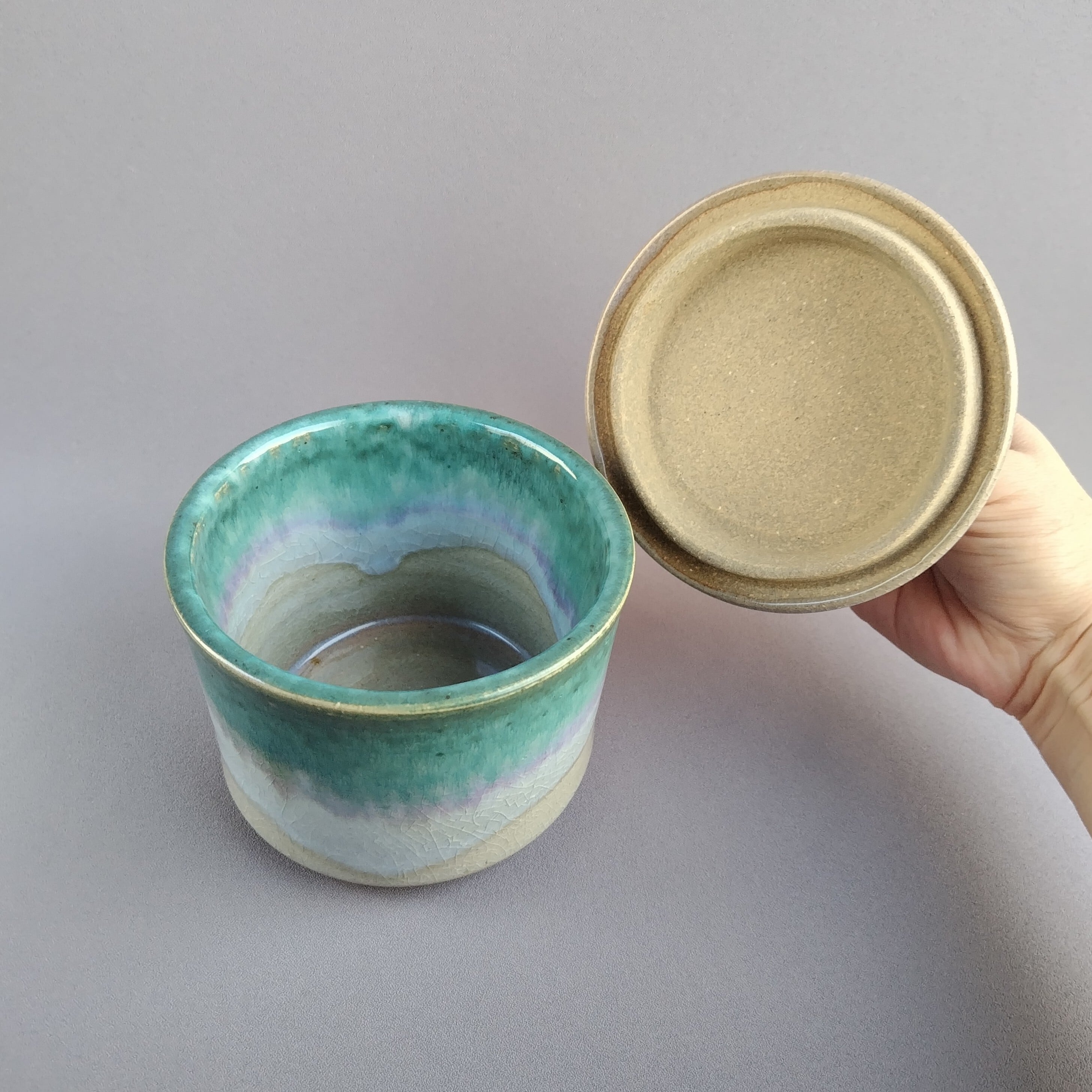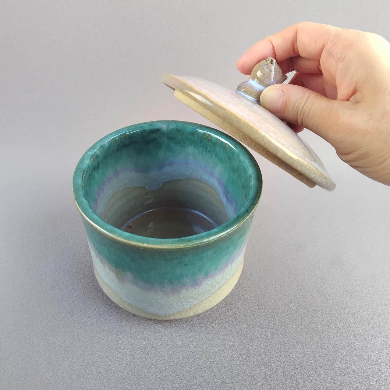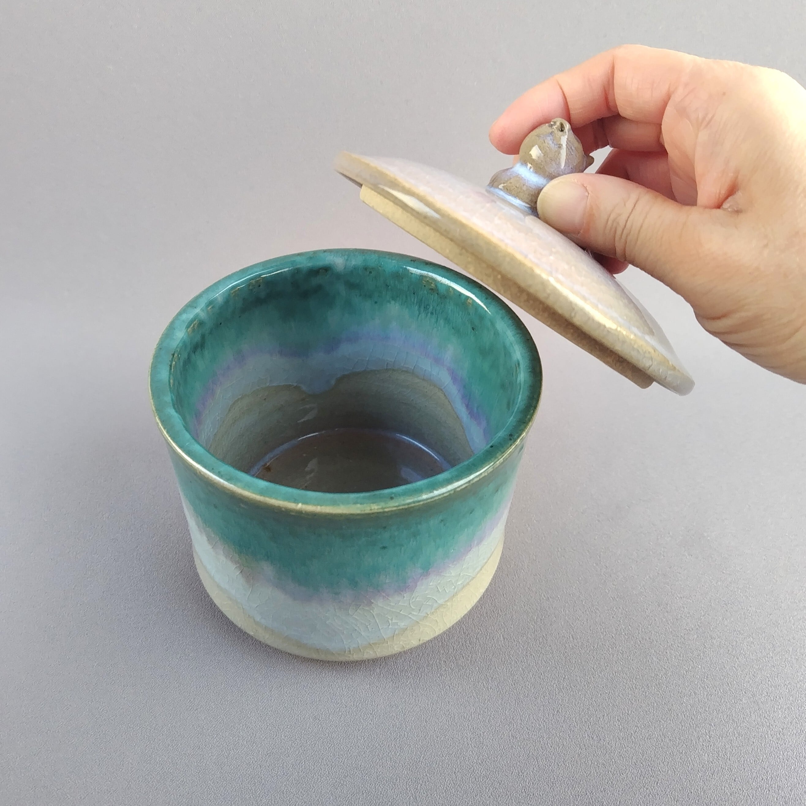 (蓋は白の萩釉です。)