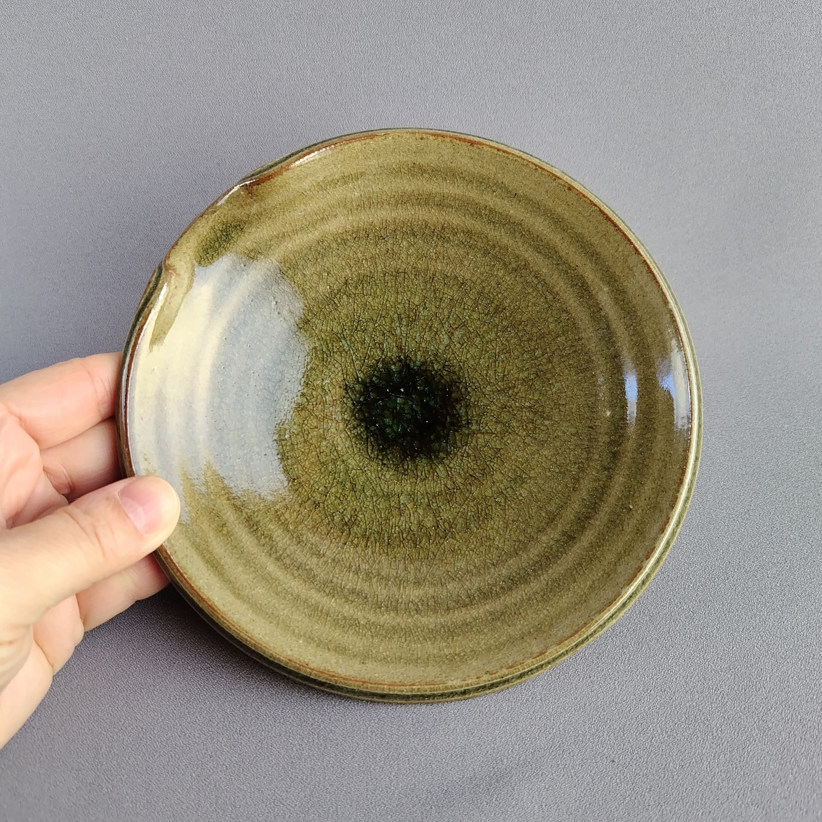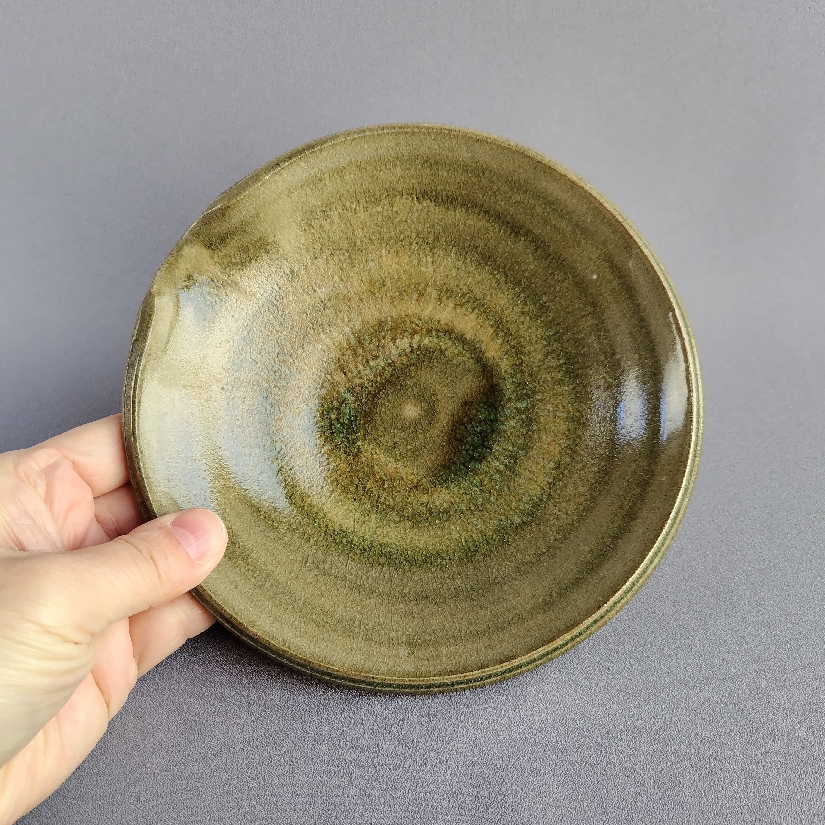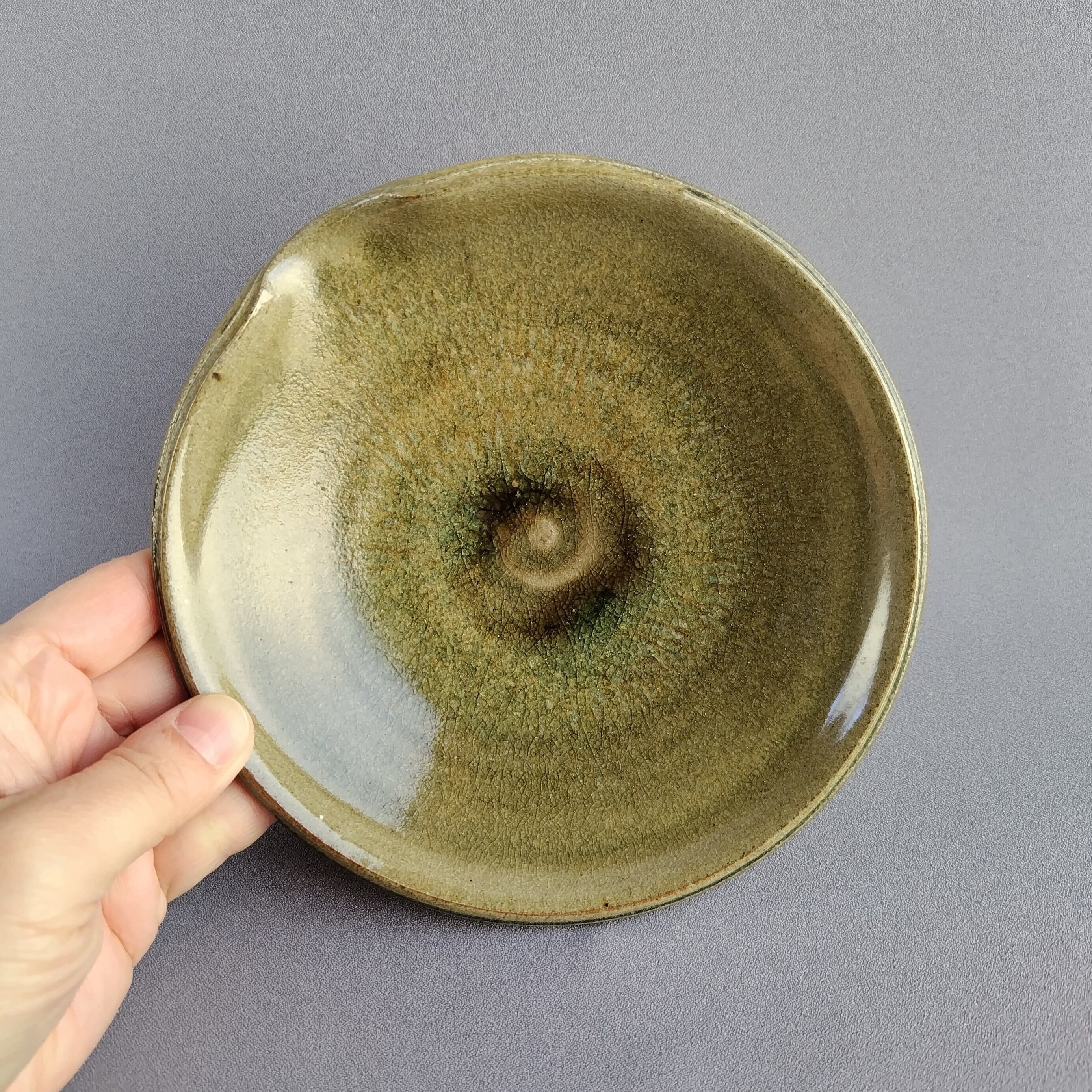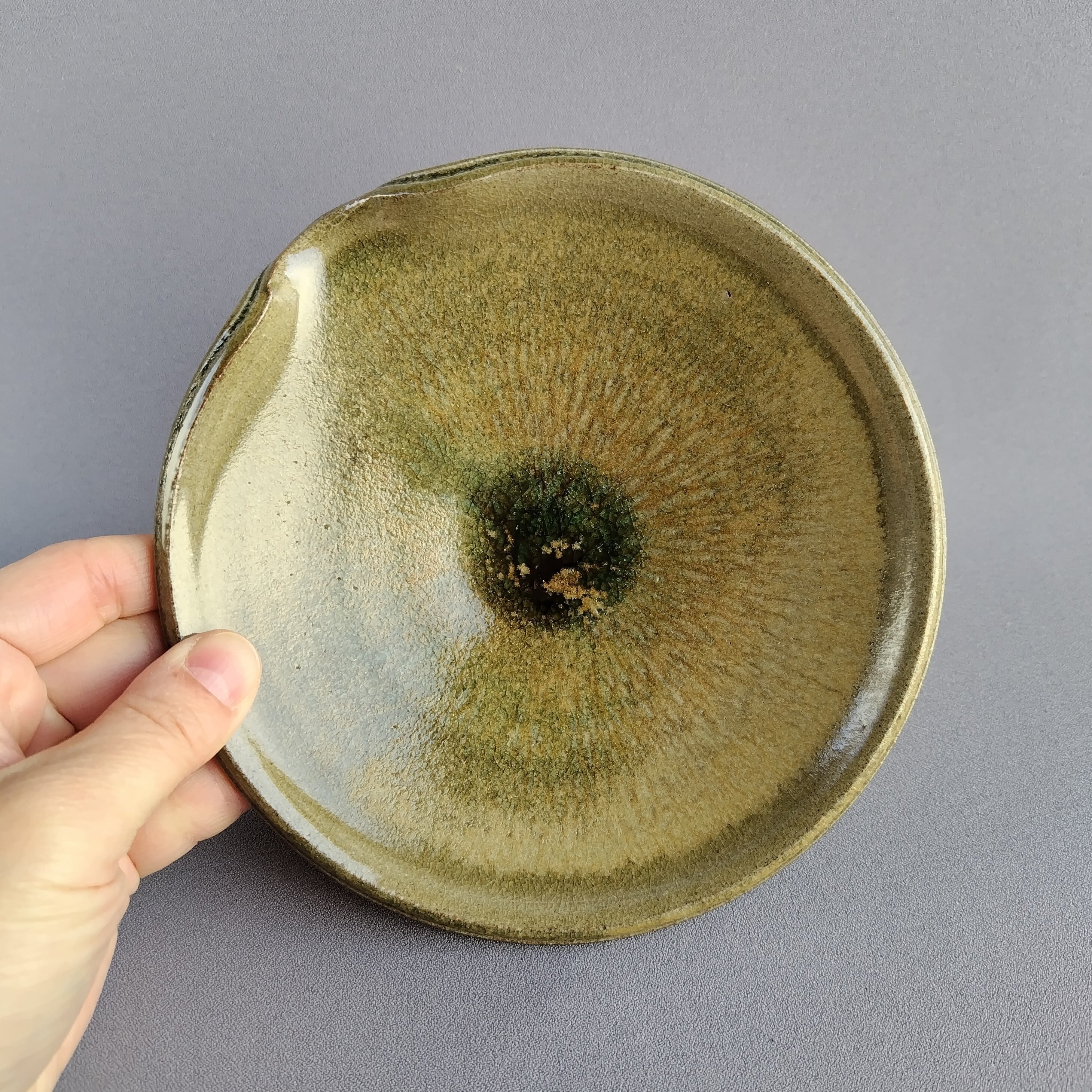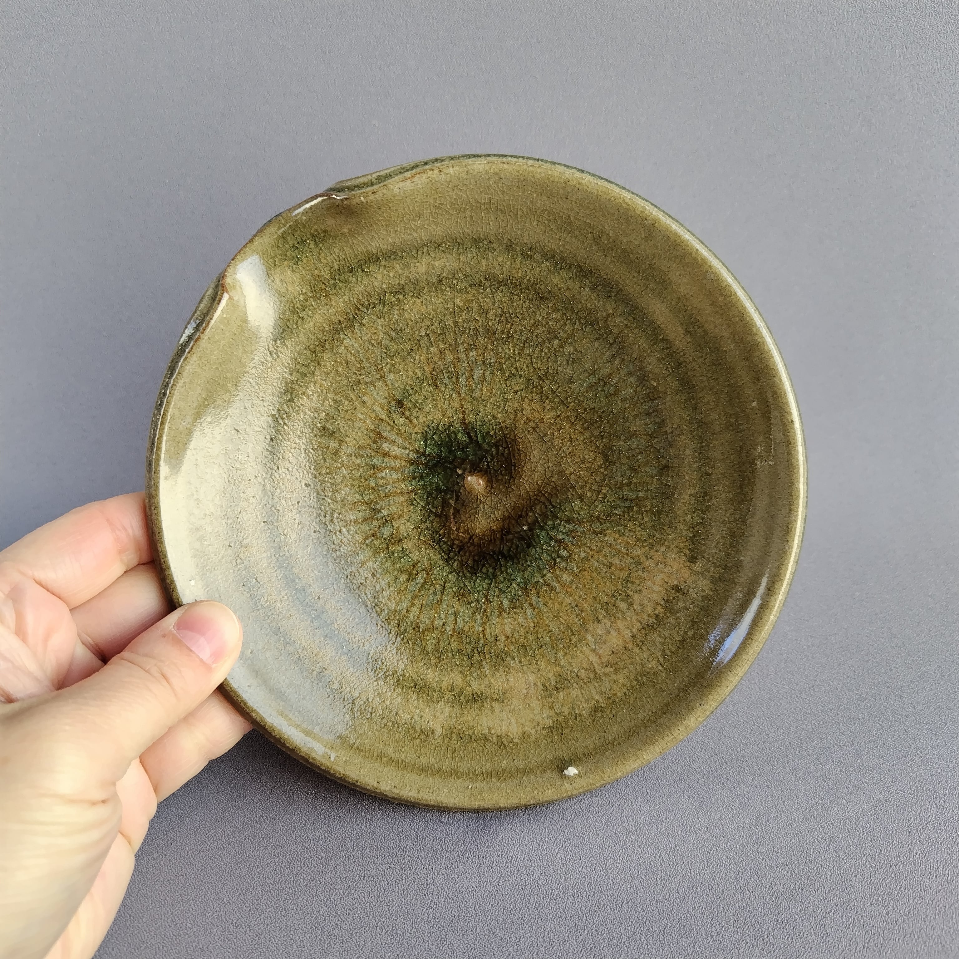 ビードロ釉が掛けられた五客組の片口型変形皿です。