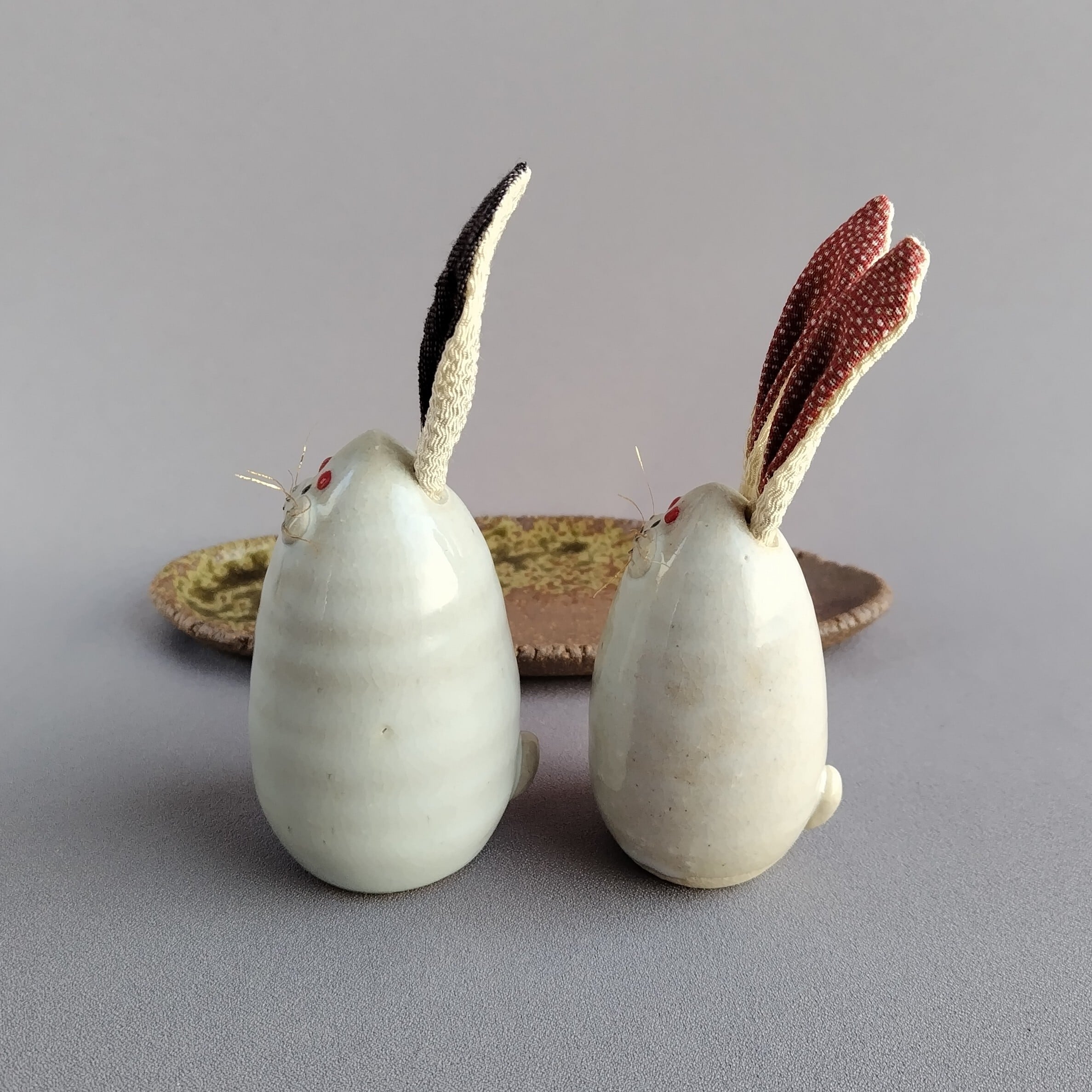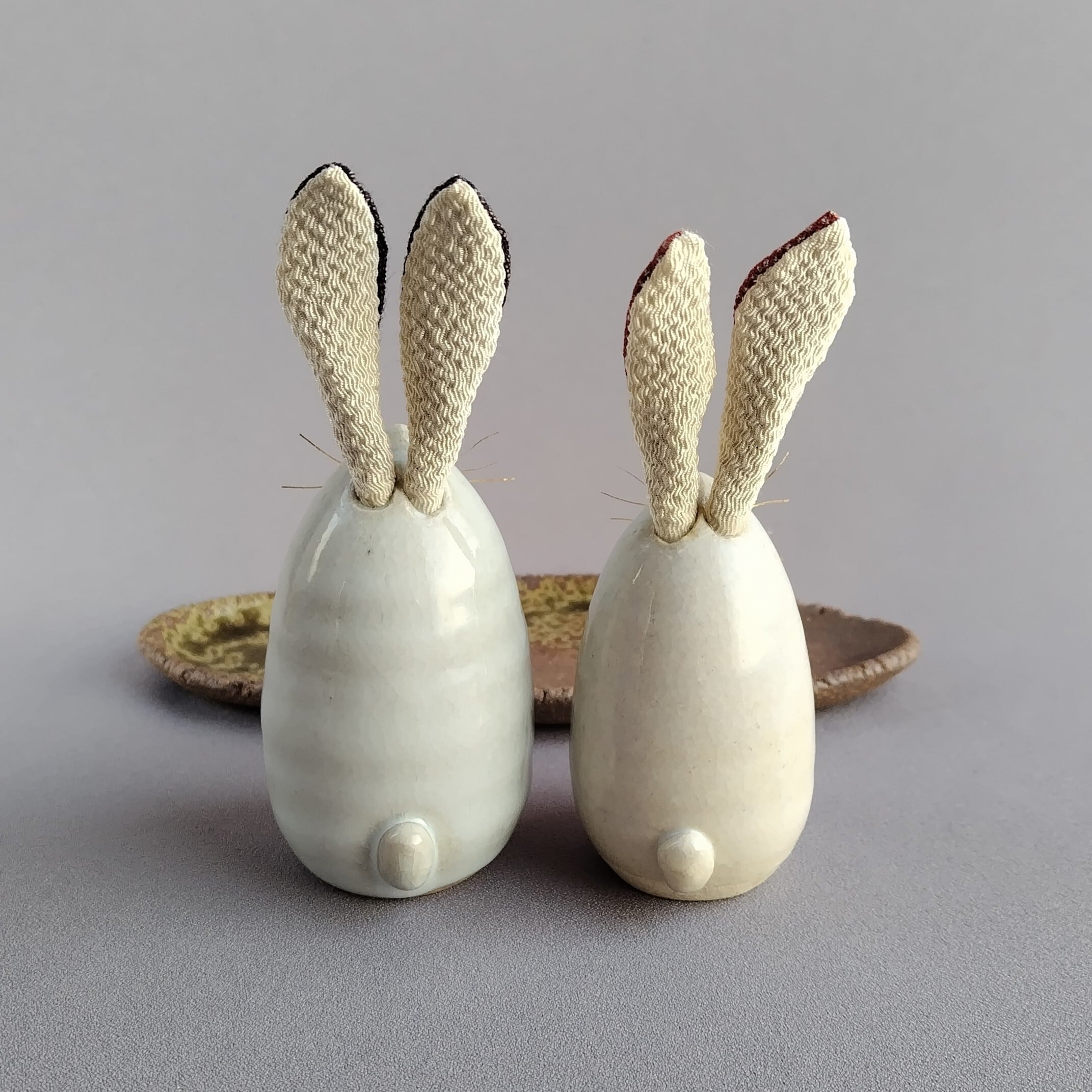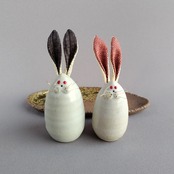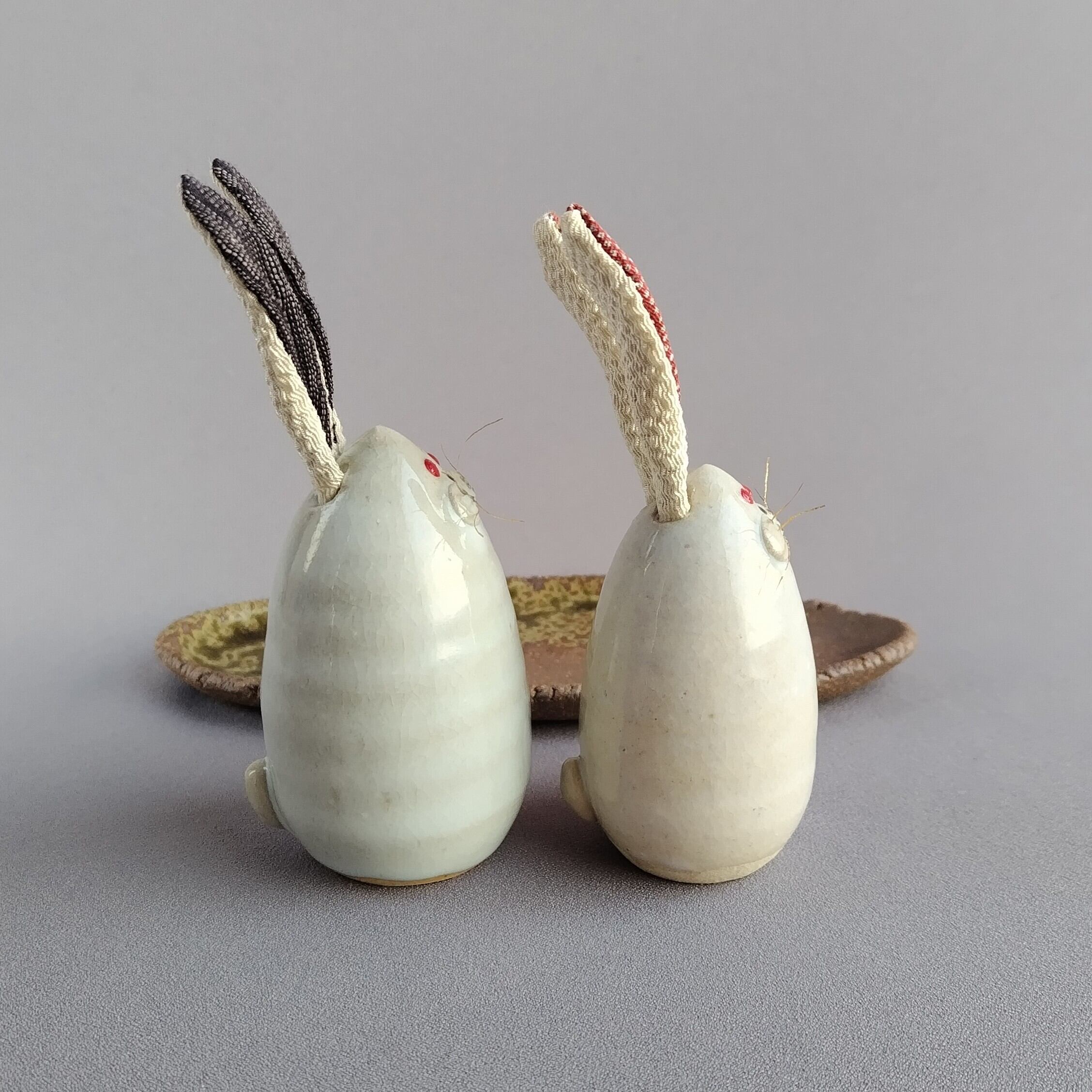 白萩釉のうさぎのセットです。焼締めの台に乗っています。