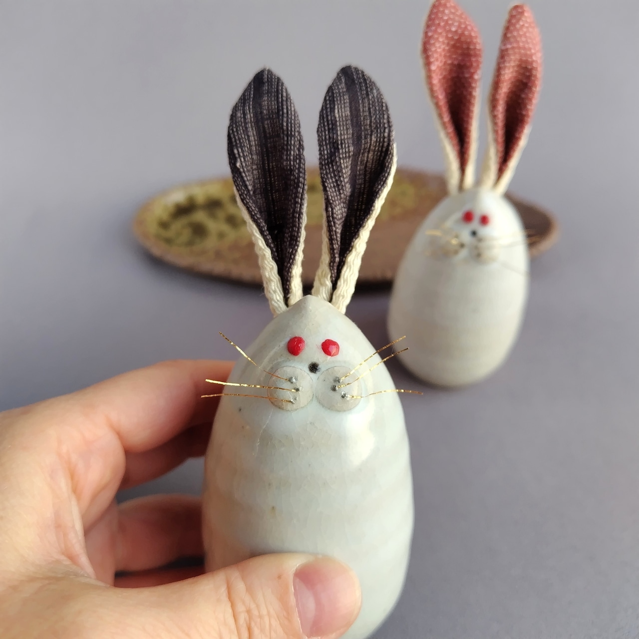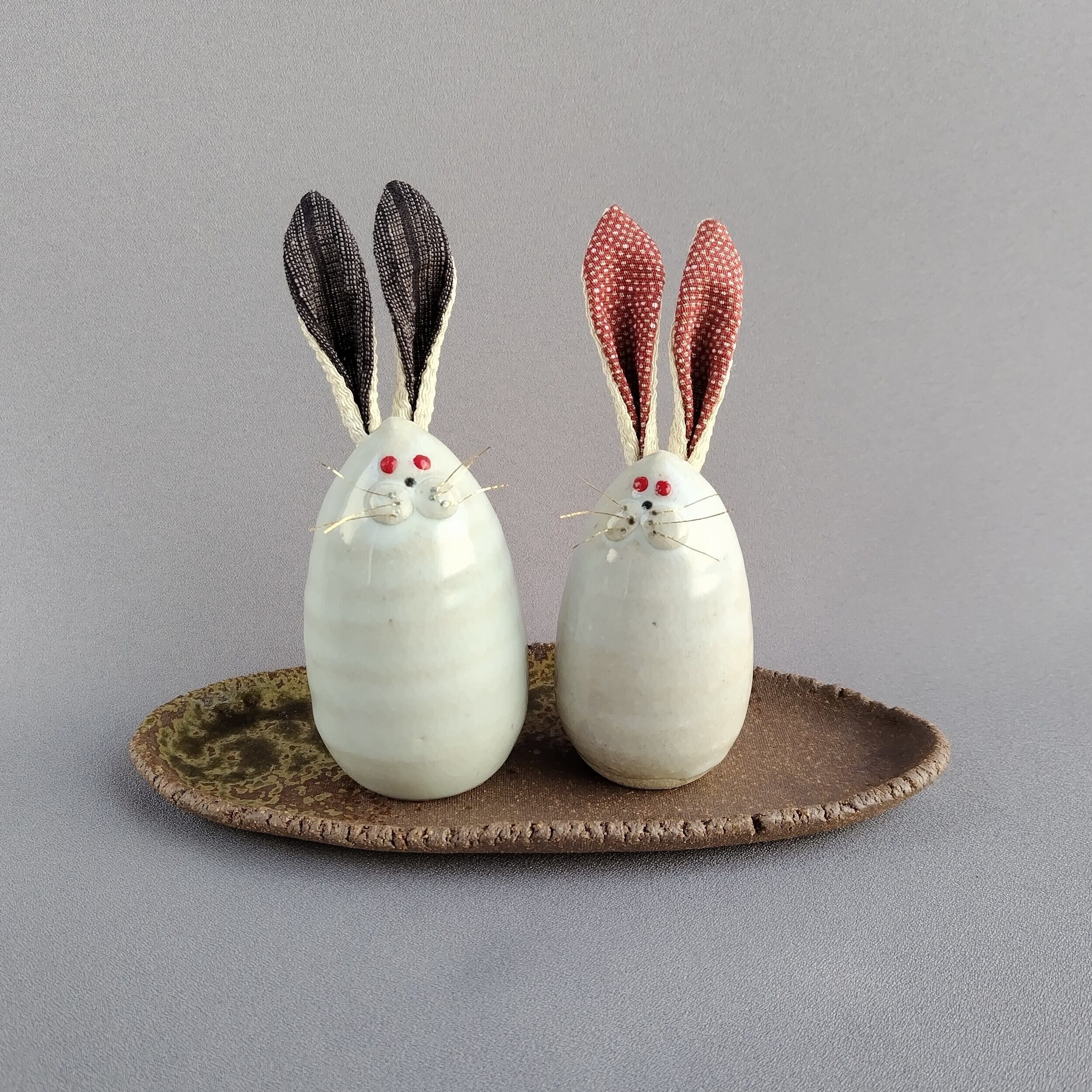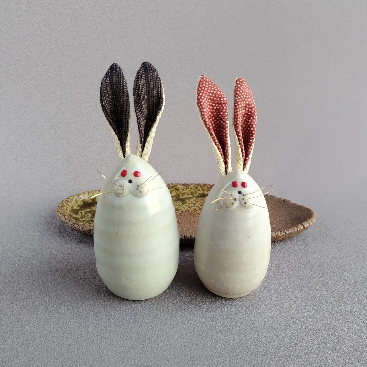 白萩釉のうさぎのセットです。焼締めの台に乗っています。