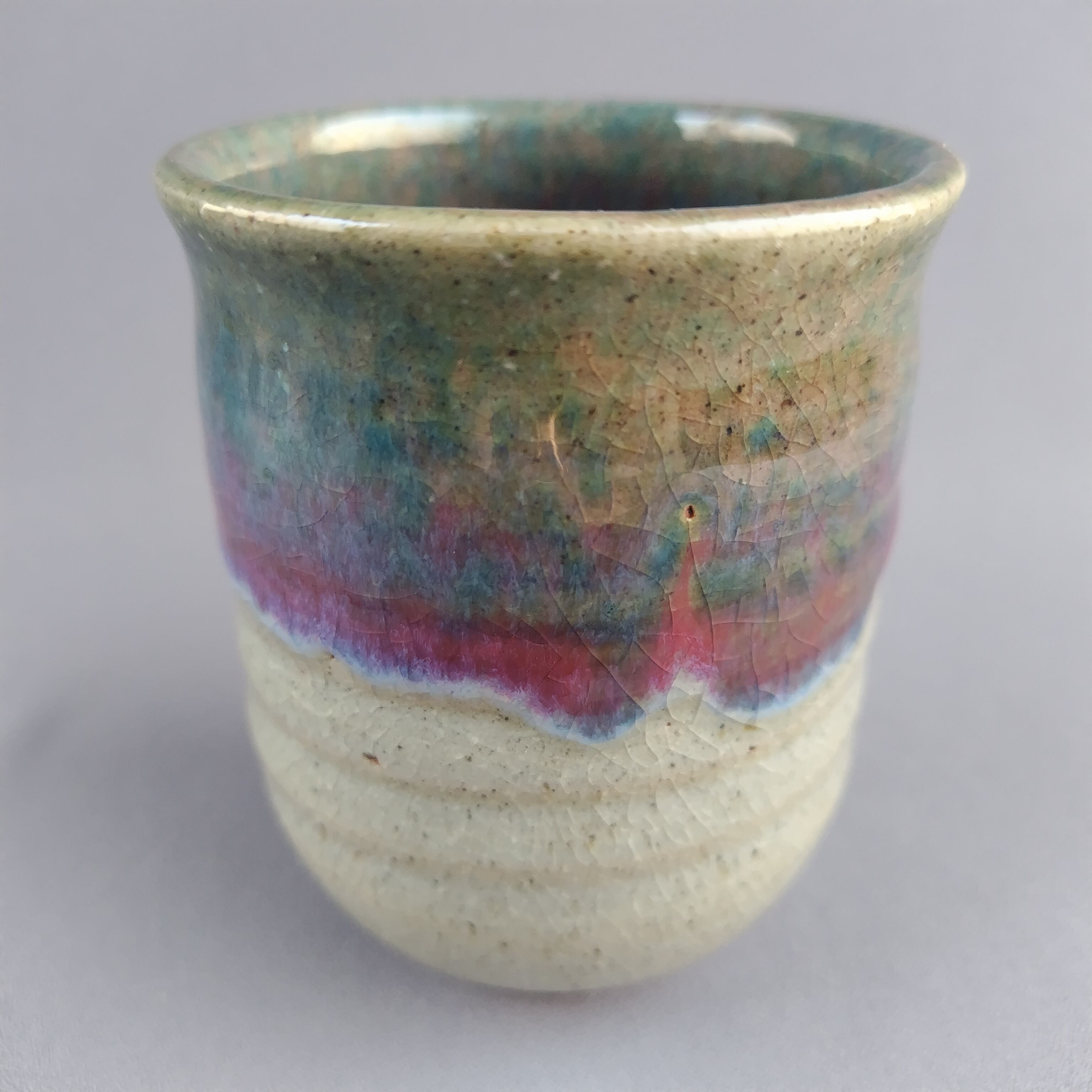 窯内の状態により還元反応が起きて、一部赤い発色も出ています。