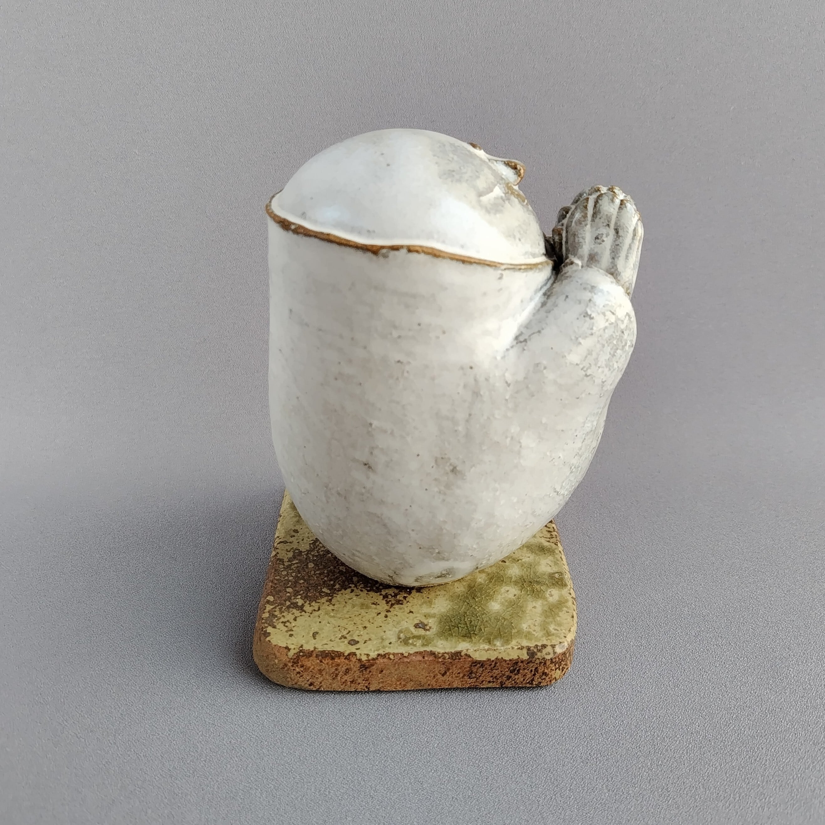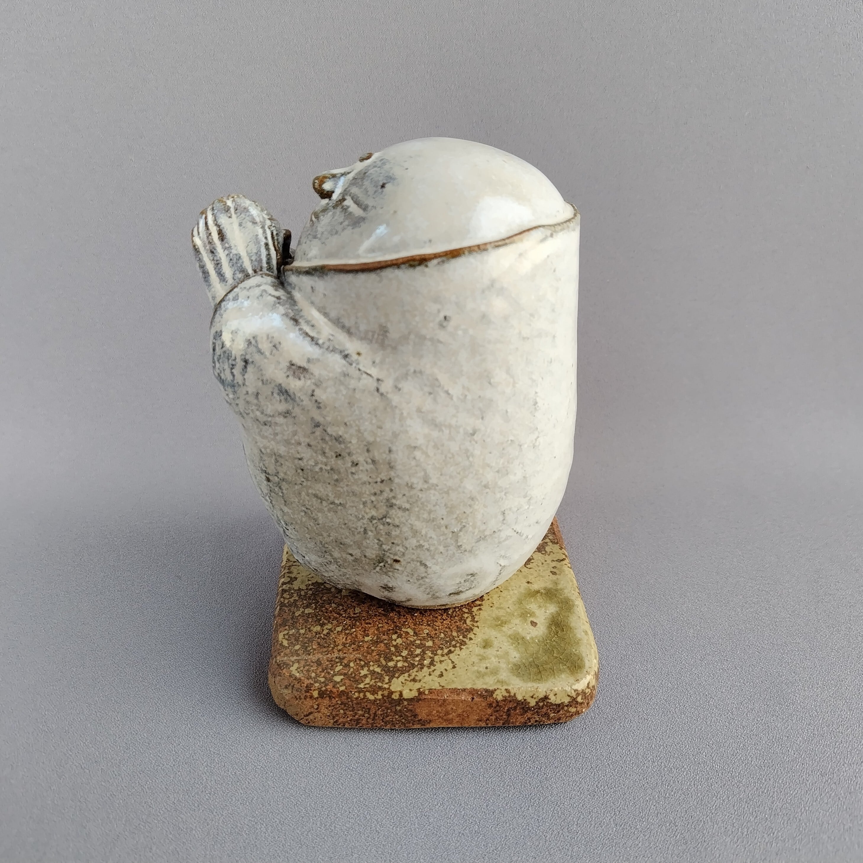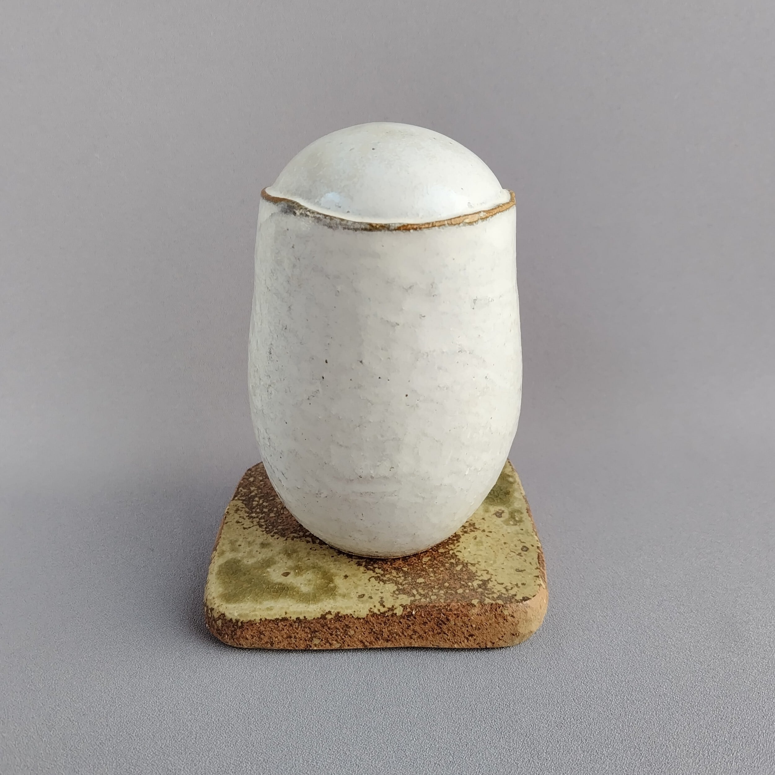 本体にはアイボリーのマット釉、台には灰釉が掛けられています。