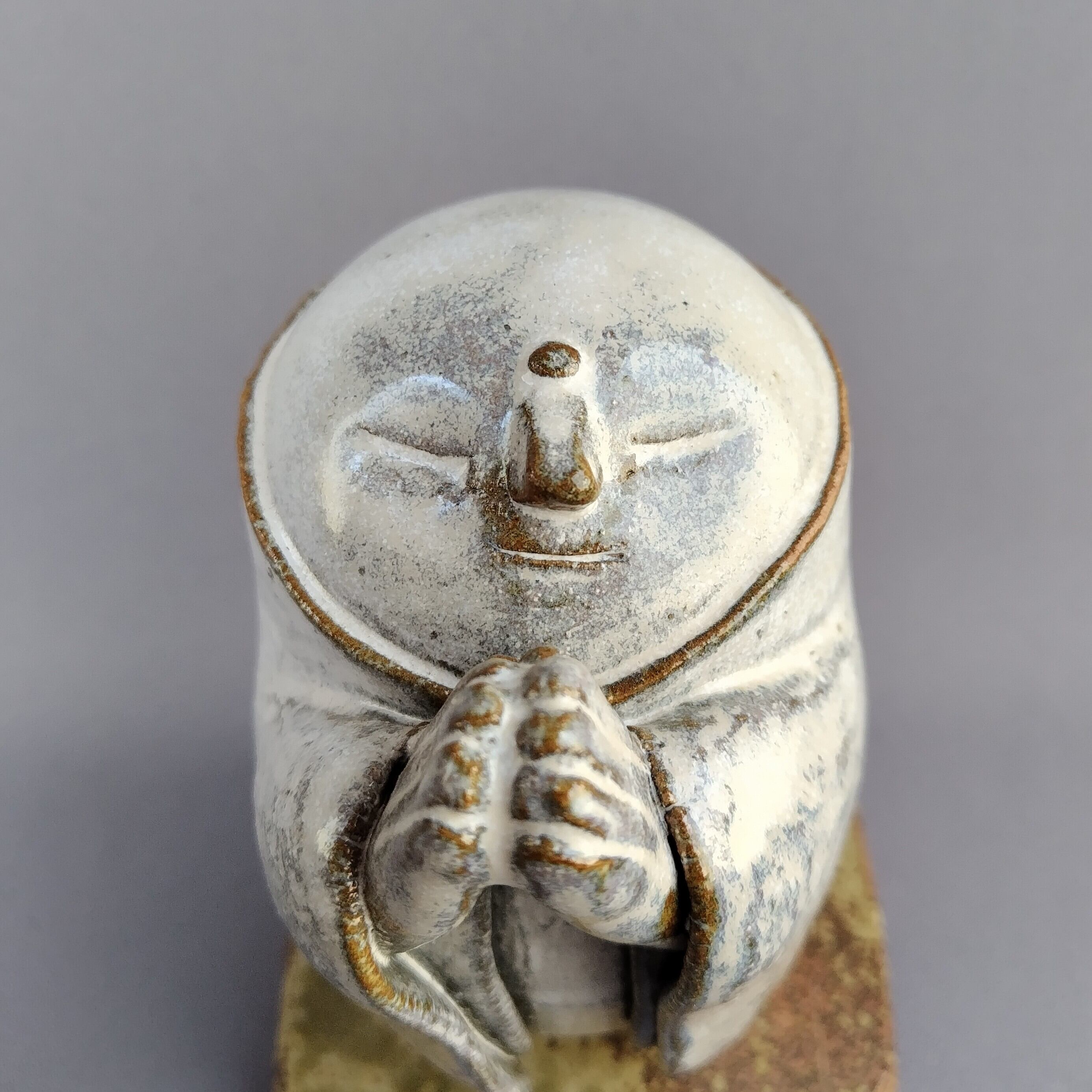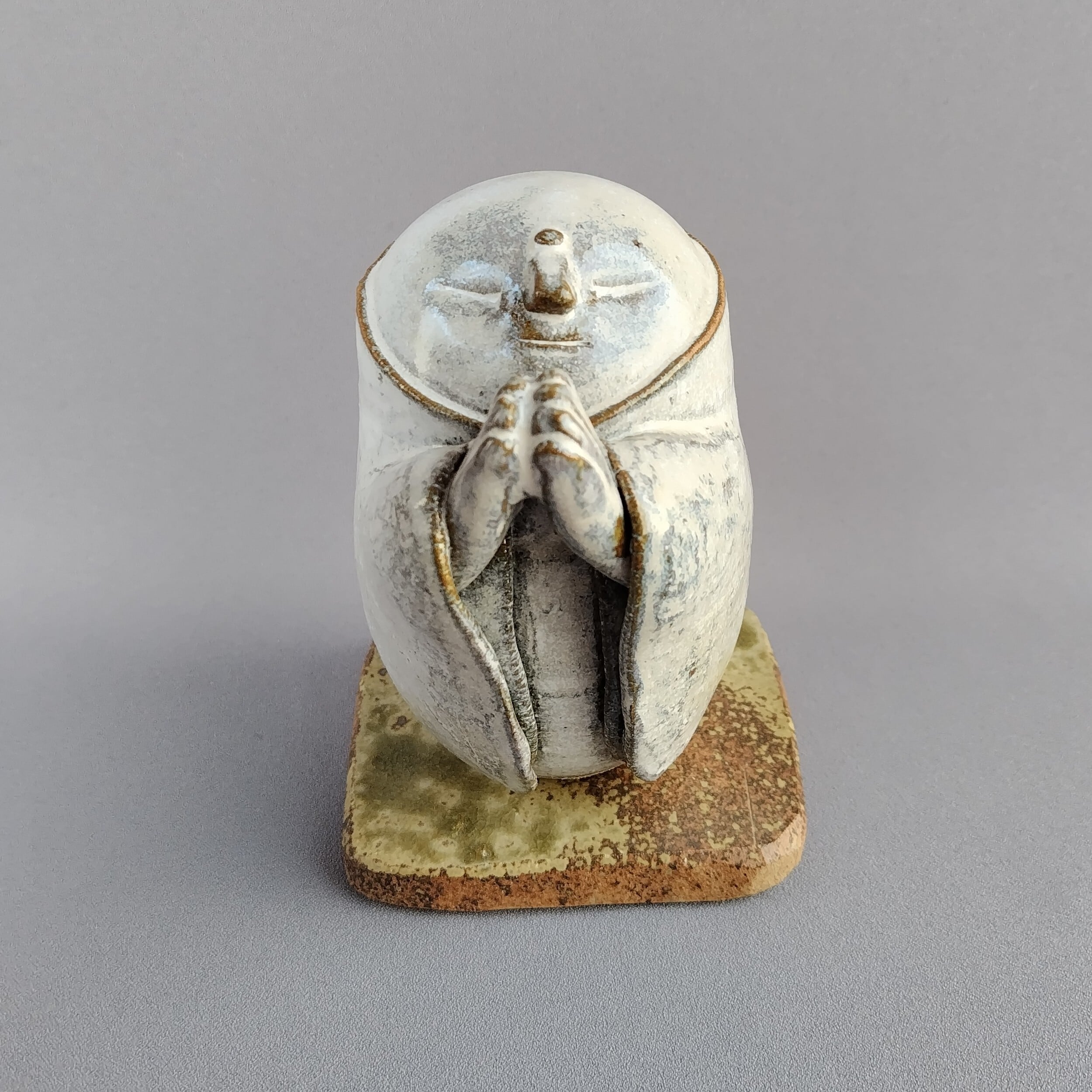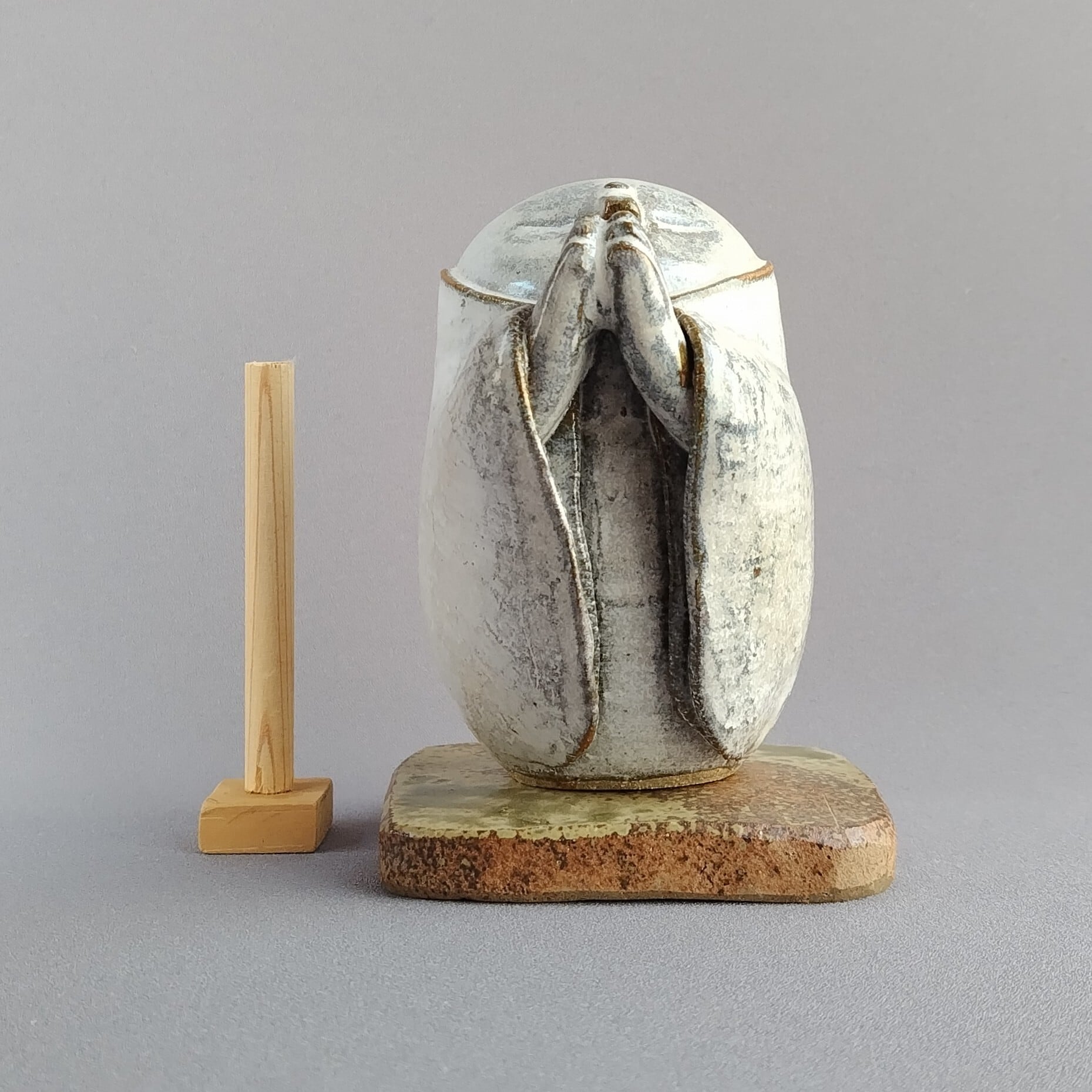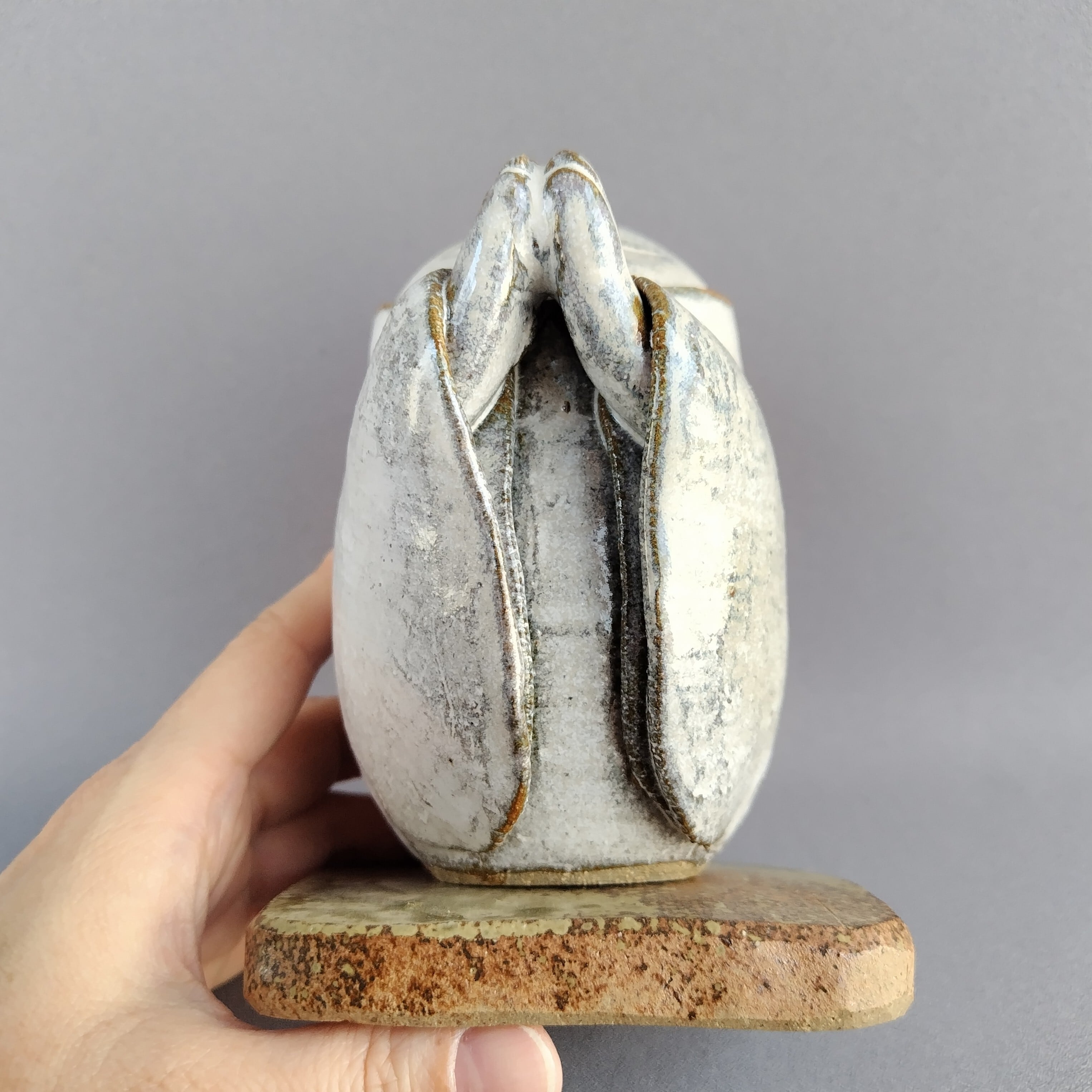 本体にはアイボリーのマット釉、台には灰釉が掛けられています。