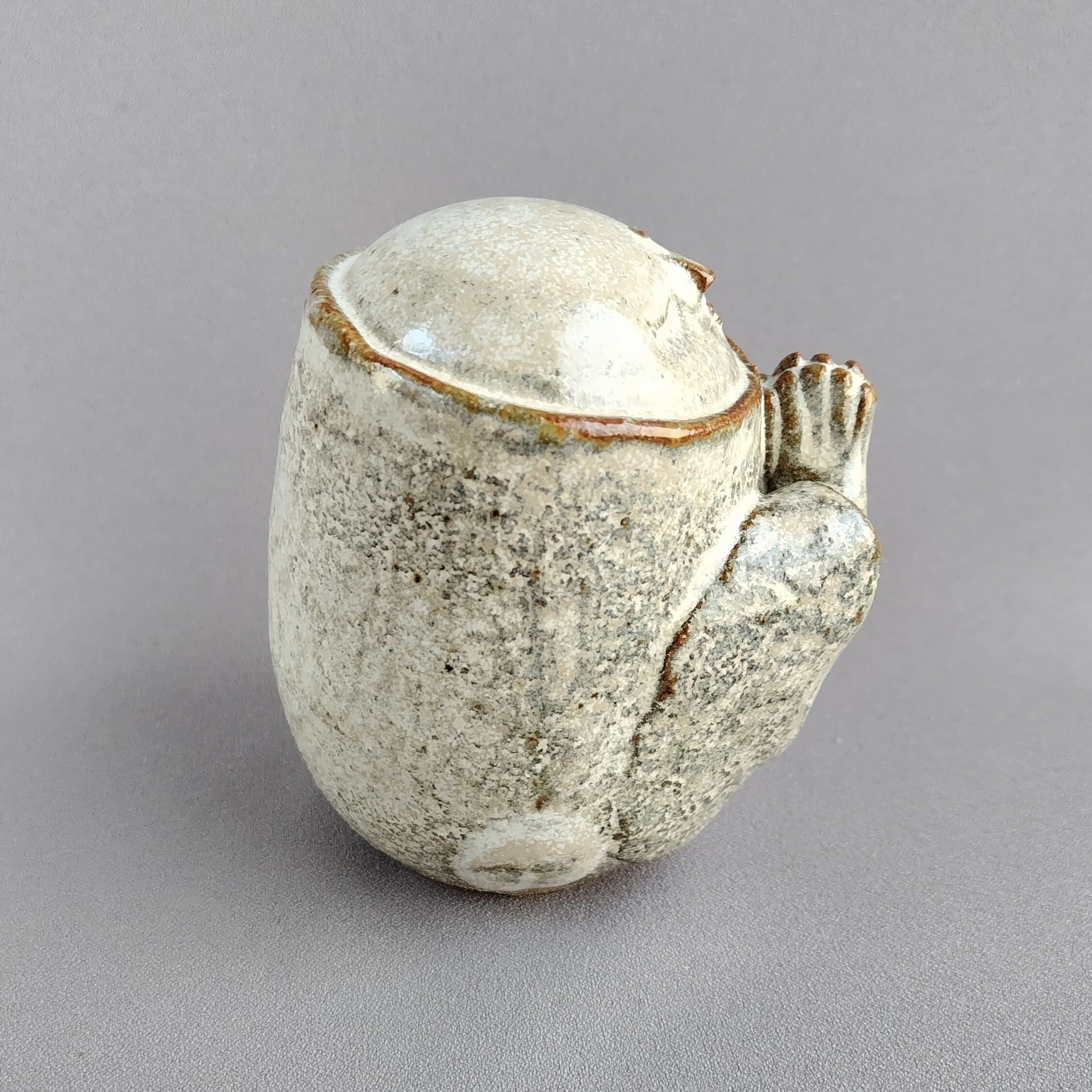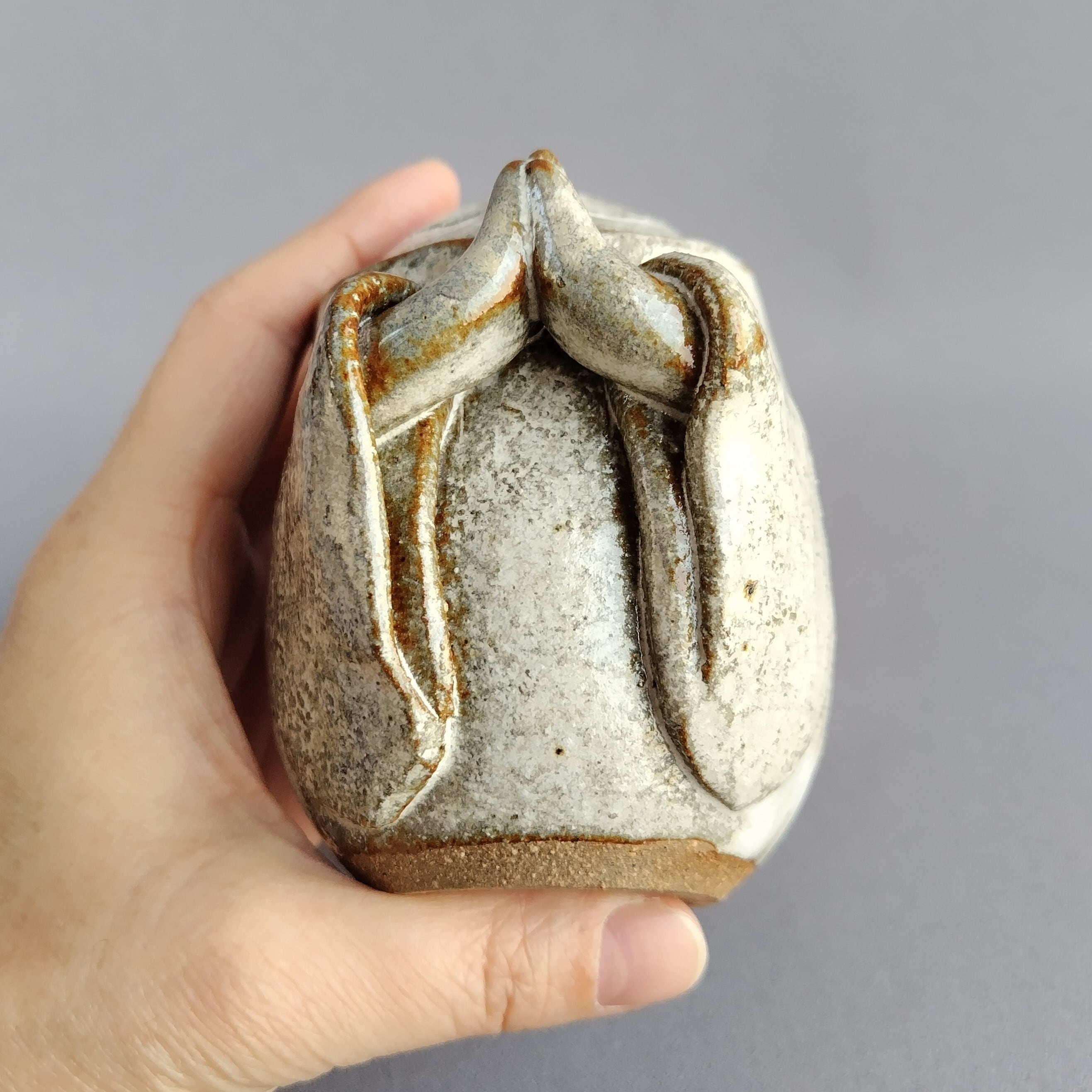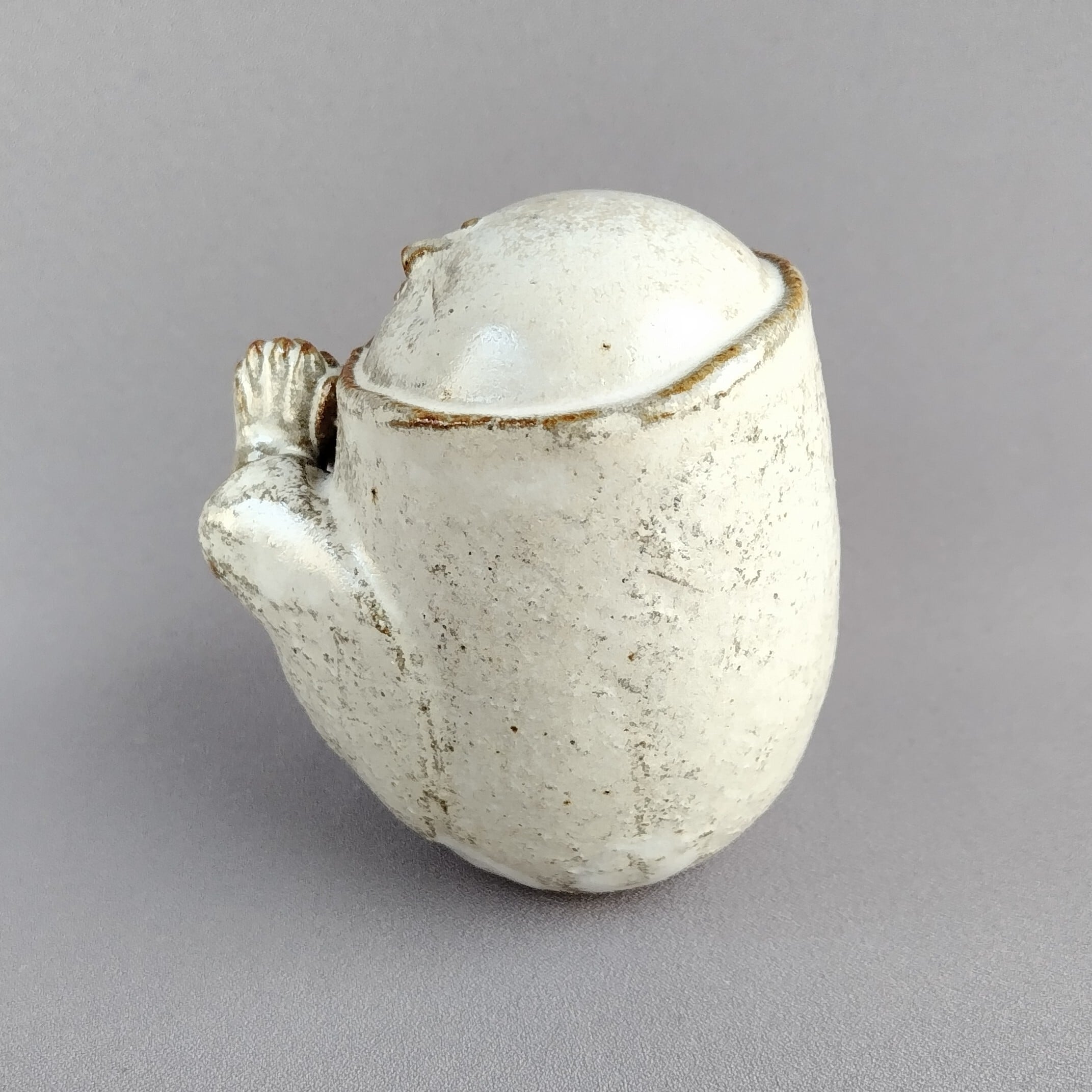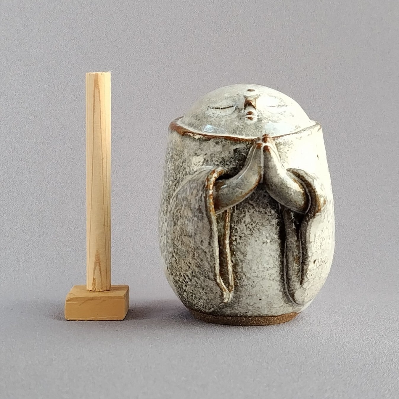 アイボリーのマット釉が掛けられた、かわいらしい表情ののお地蔵様です。