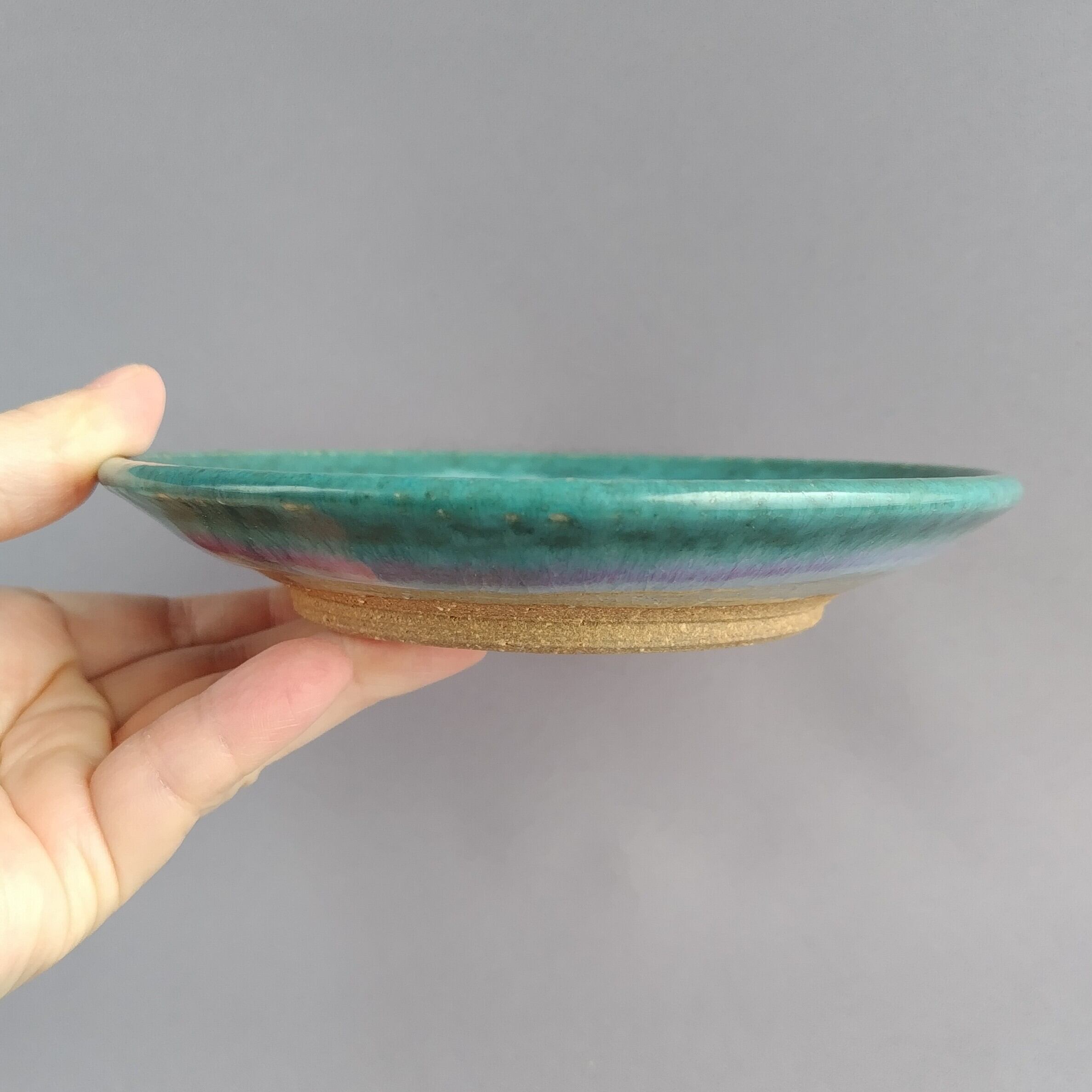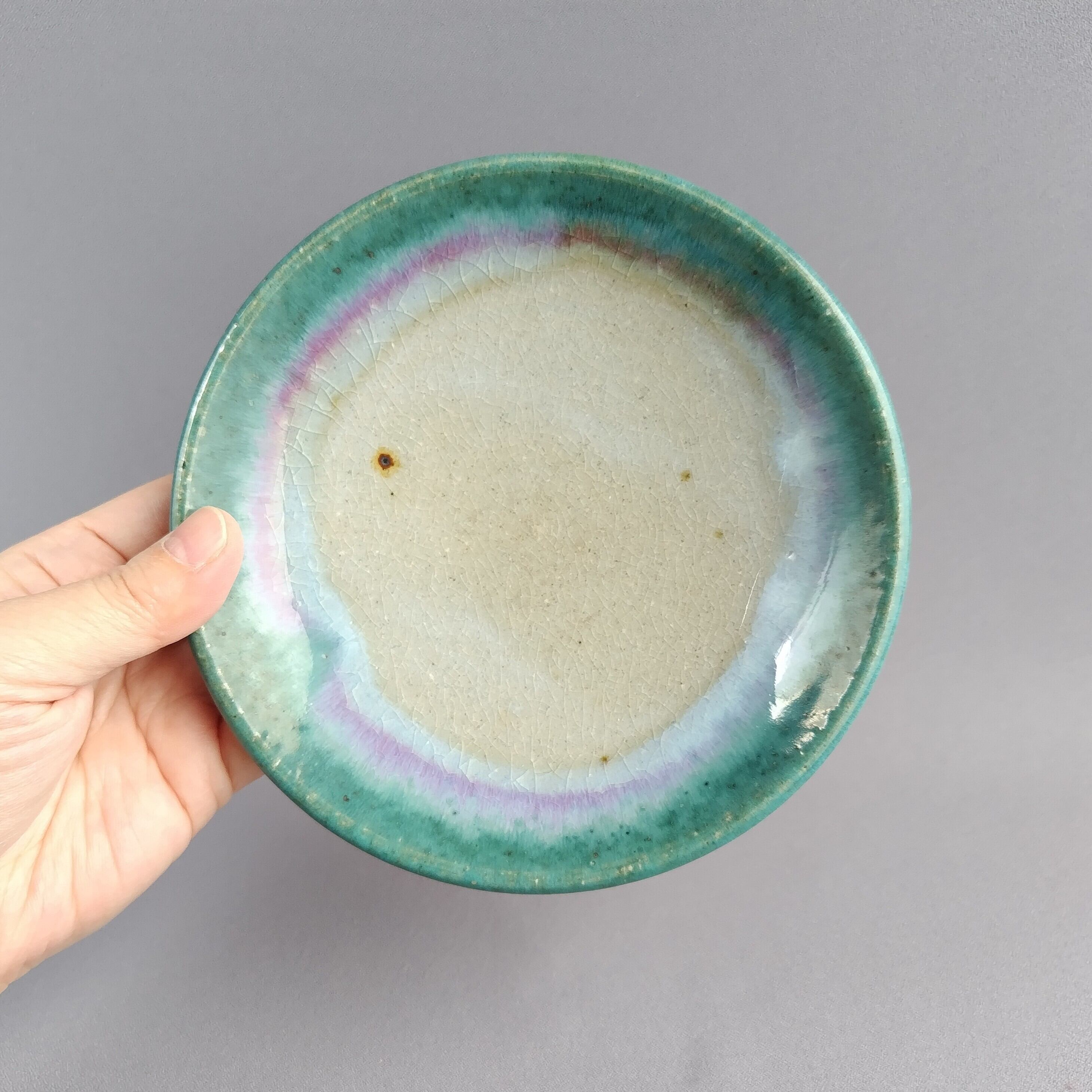 透明釉の縁に緑釉を流したモダンな仕上がりです。