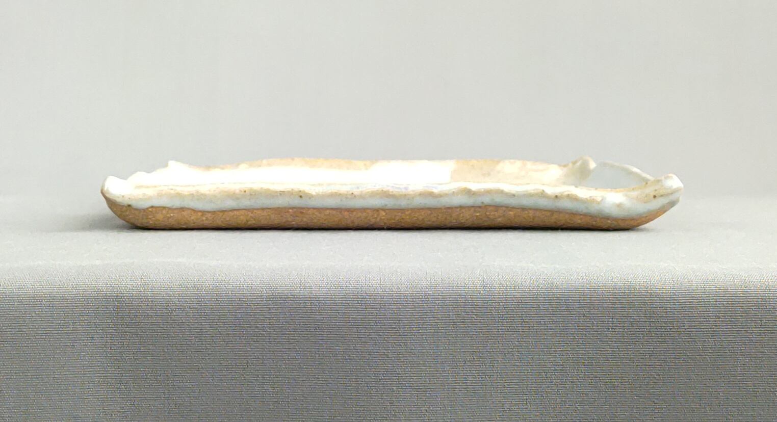 鉄絵のトンボに白萩釉の流し掛けをした角板皿です。