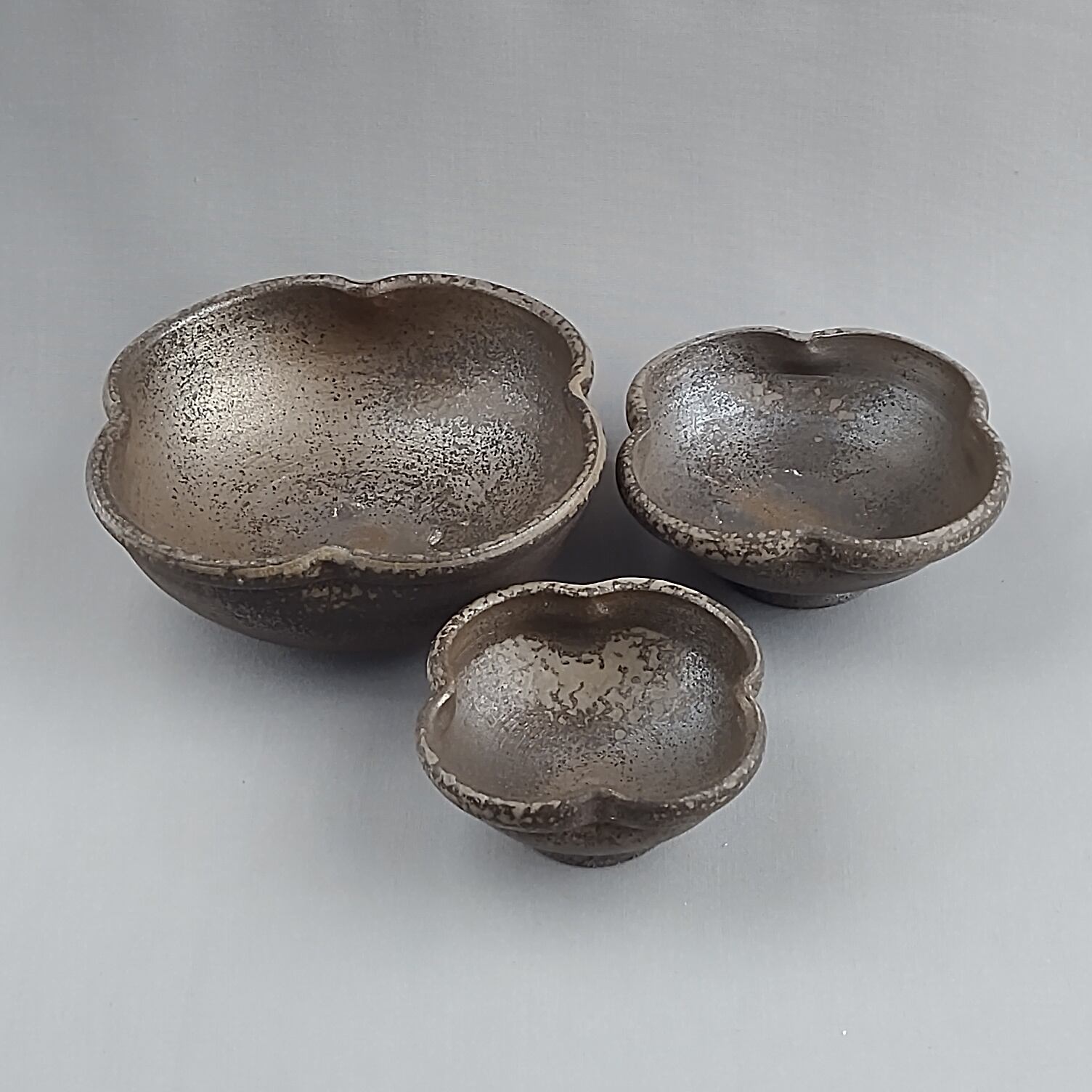 焼締めの花形の鉢3点セットです。