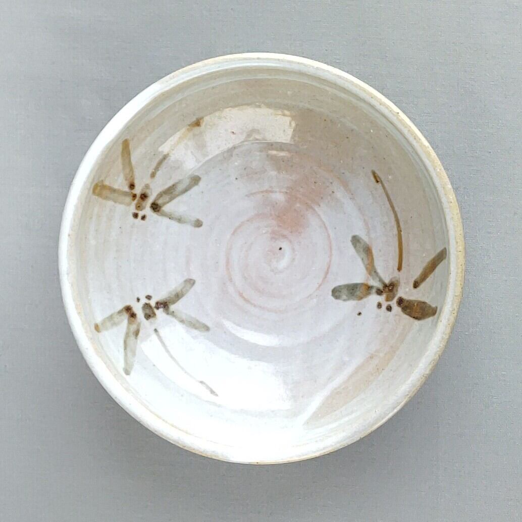 トンボの鉄絵に白萩釉を掛けた浅鉢です。