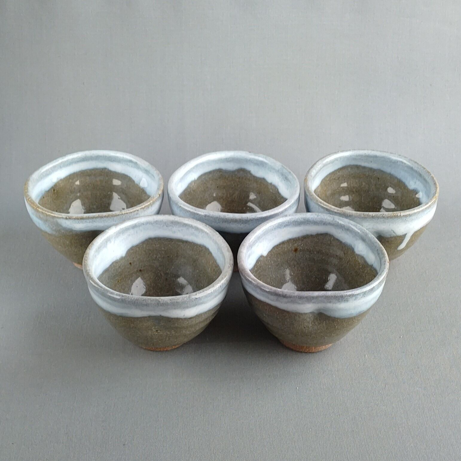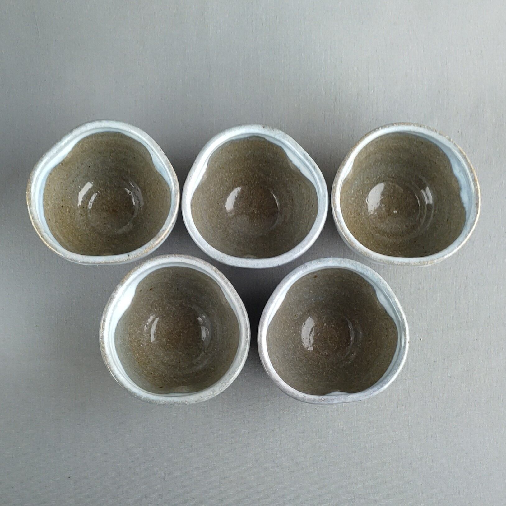 持ちやすいように側面にえくぼがついており、縁に白萩釉を掛けてあります。