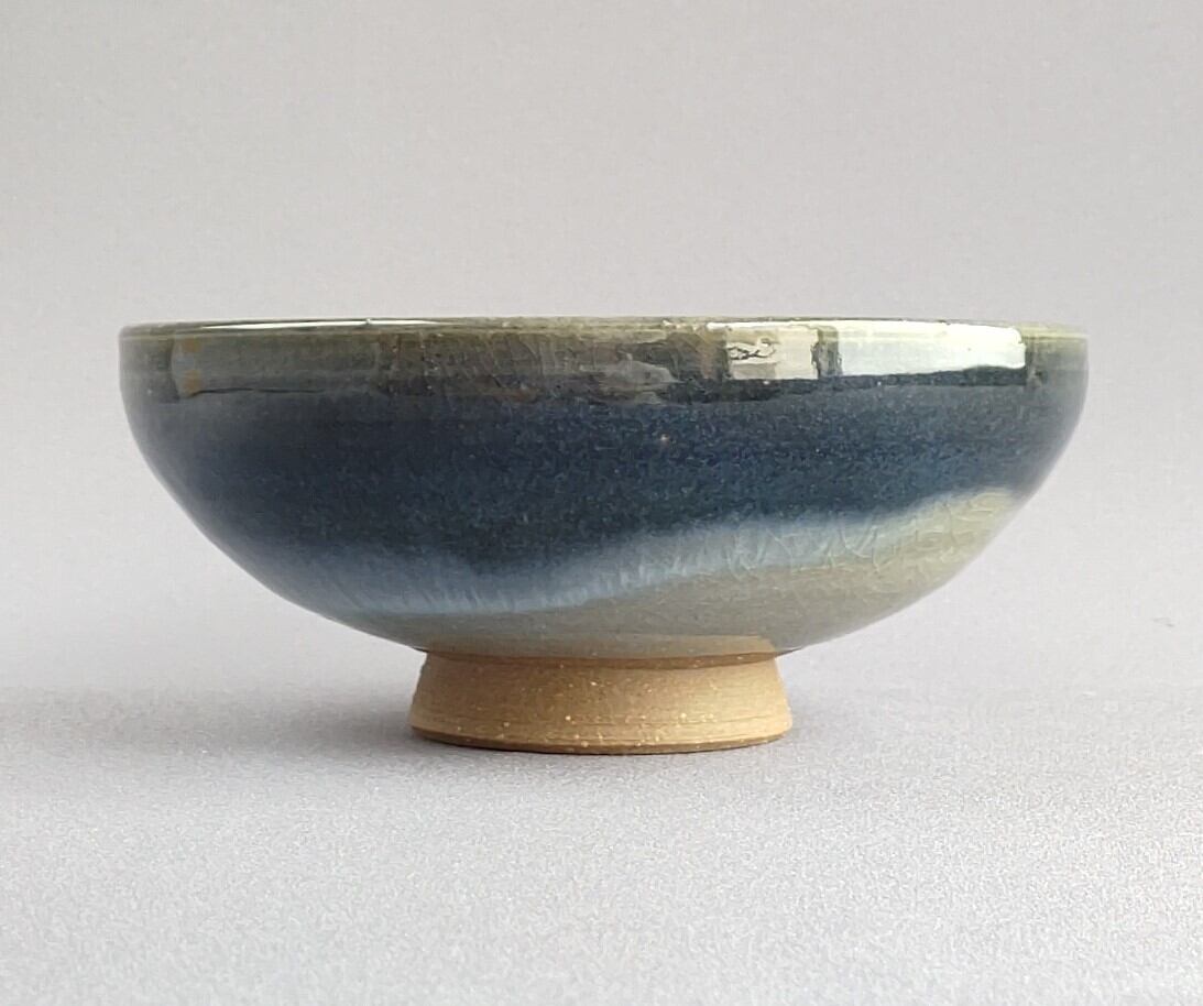 透明釉の縁に藍色の釉薬が掛けられた鉢です。