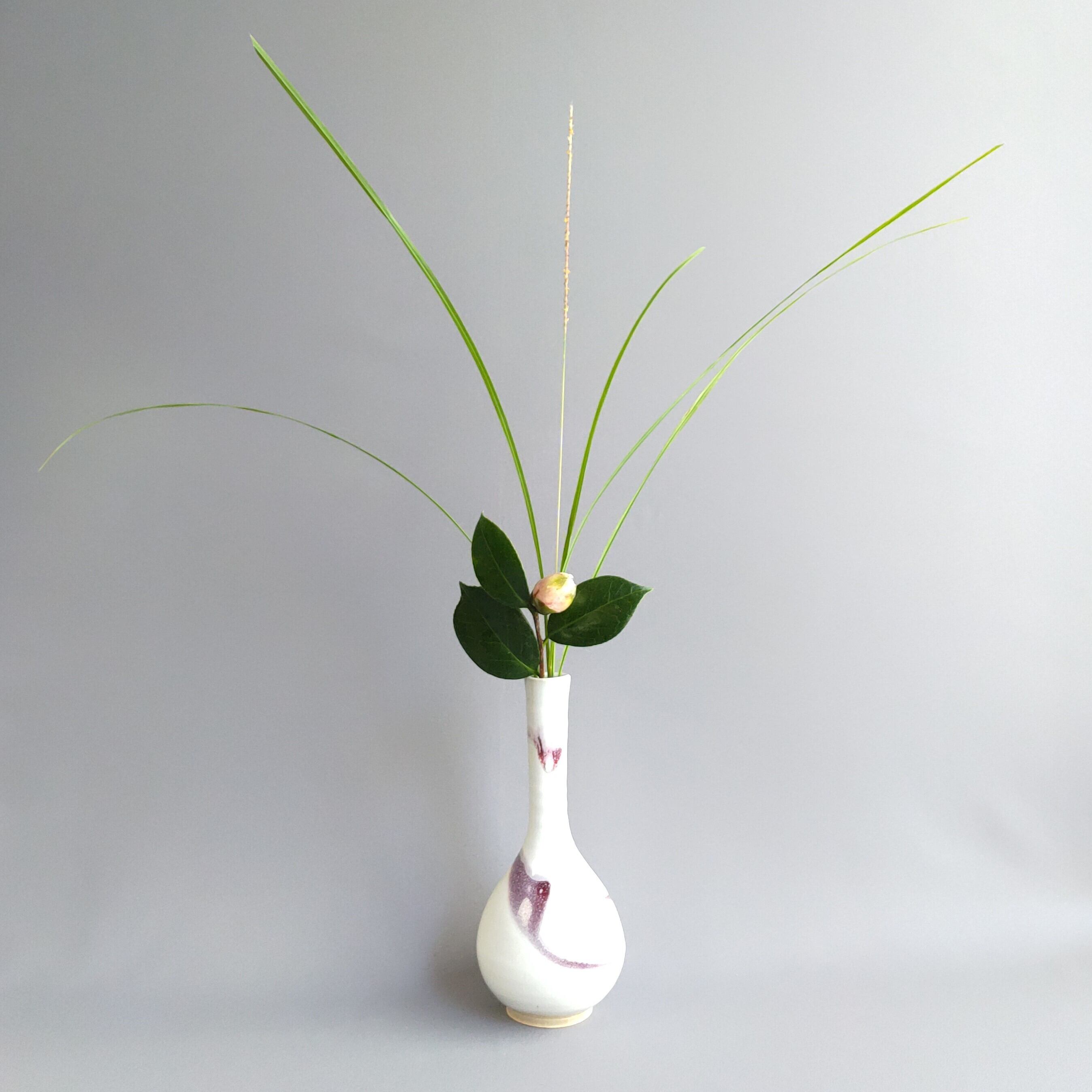 白萩釉と均窯釉の鶴首型の花入れです。