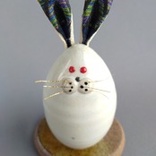 白萩釉のうさぎです。台には緑釉がかけられています。