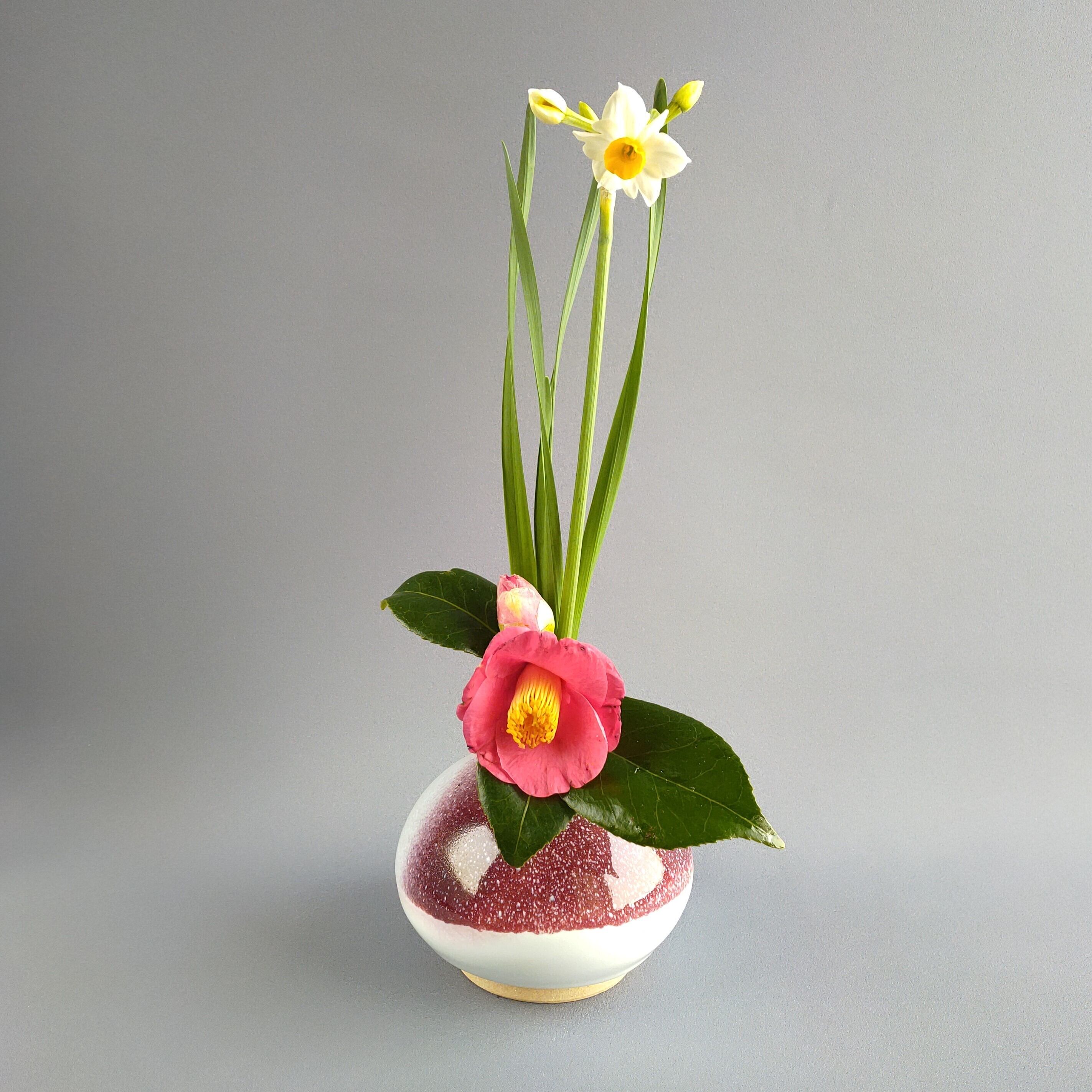 ぽってりとした形がかわいい白萩釉と均窯釉の花入れです。
