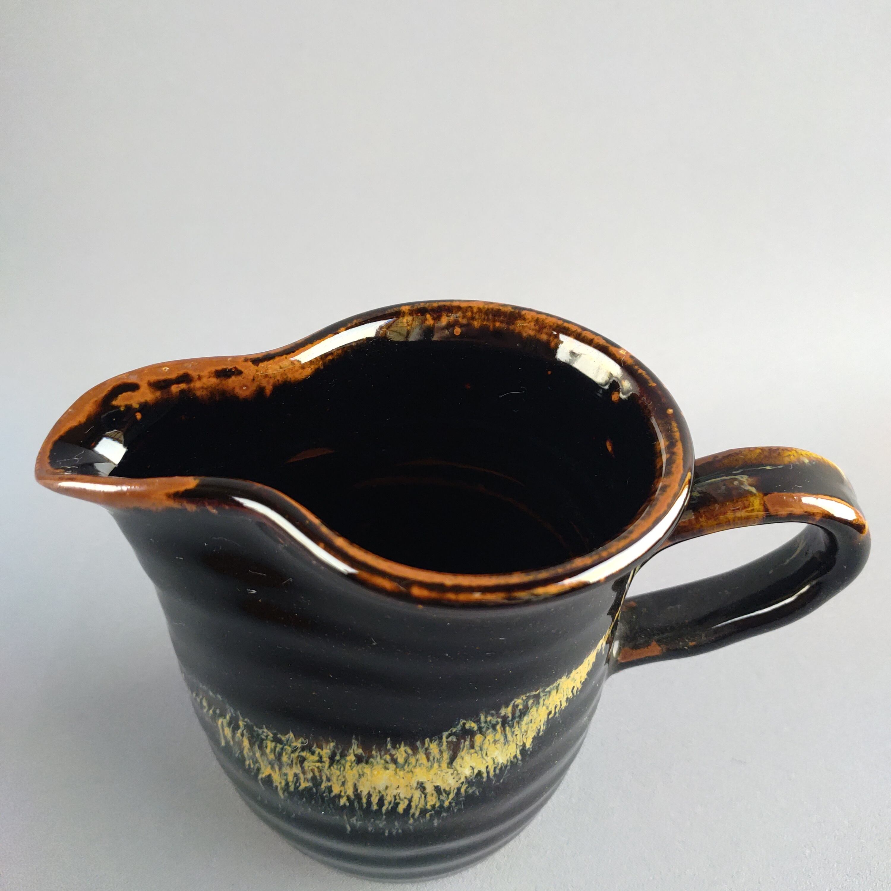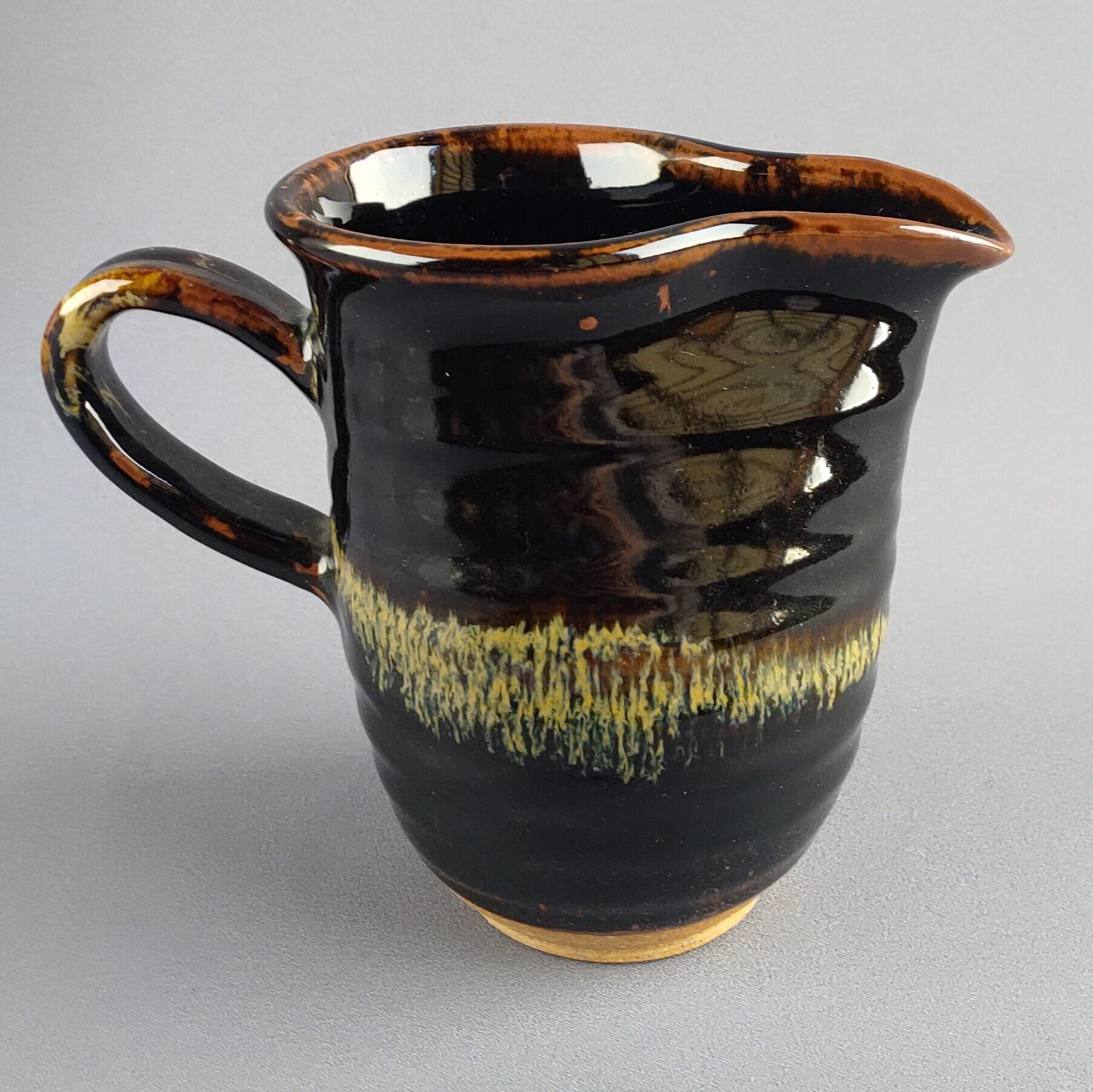全体に天目釉が掛けられ、アクセントに萩釉が掛けられたピッチャーです。