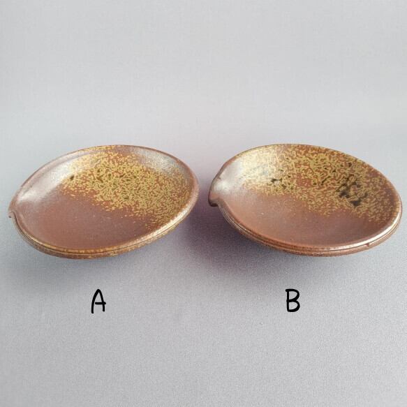 焼締めの片口型変形皿です。