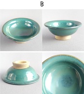 緑釉が掛けられた鉢です。高台が高めに作られています。
