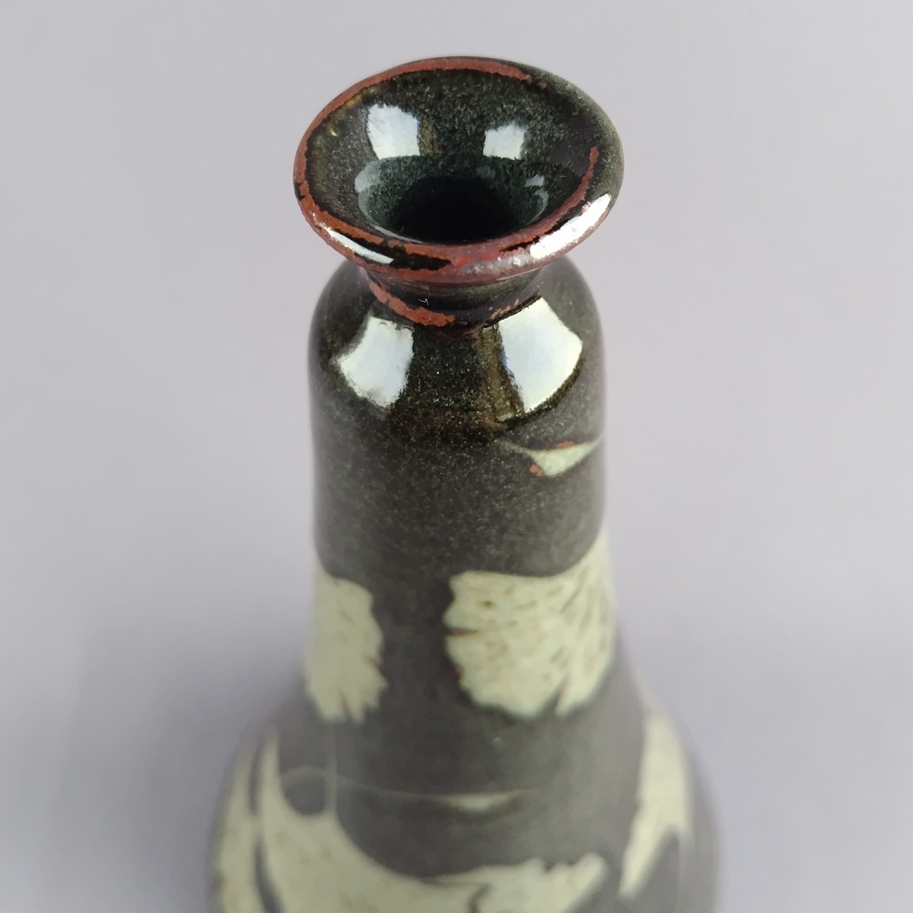 掻き落としの技法でイチョウの葉が描かれた花入れです。