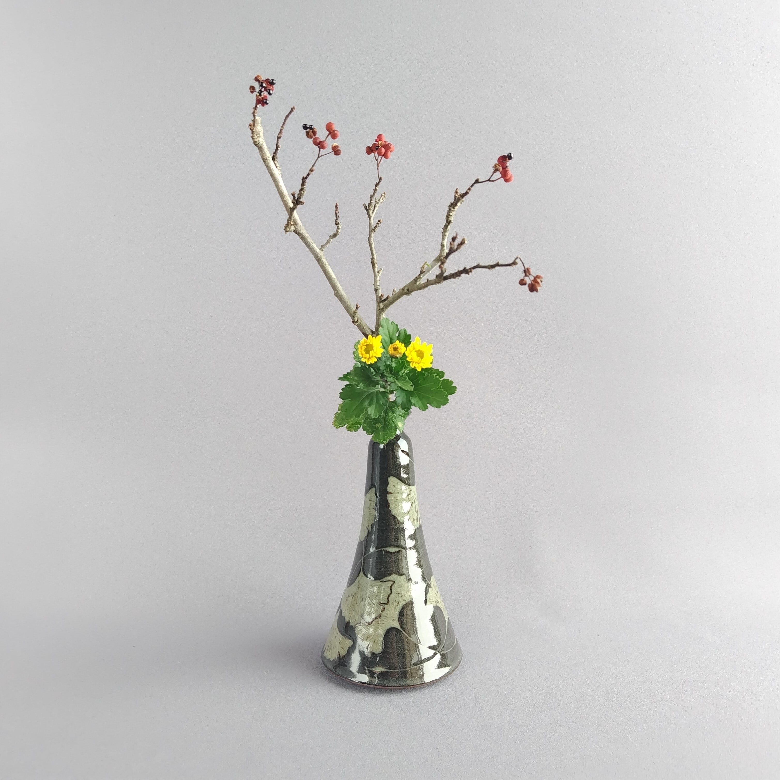 すっきりとしたシルエットの花入れで、生けた花が引き立ちます。