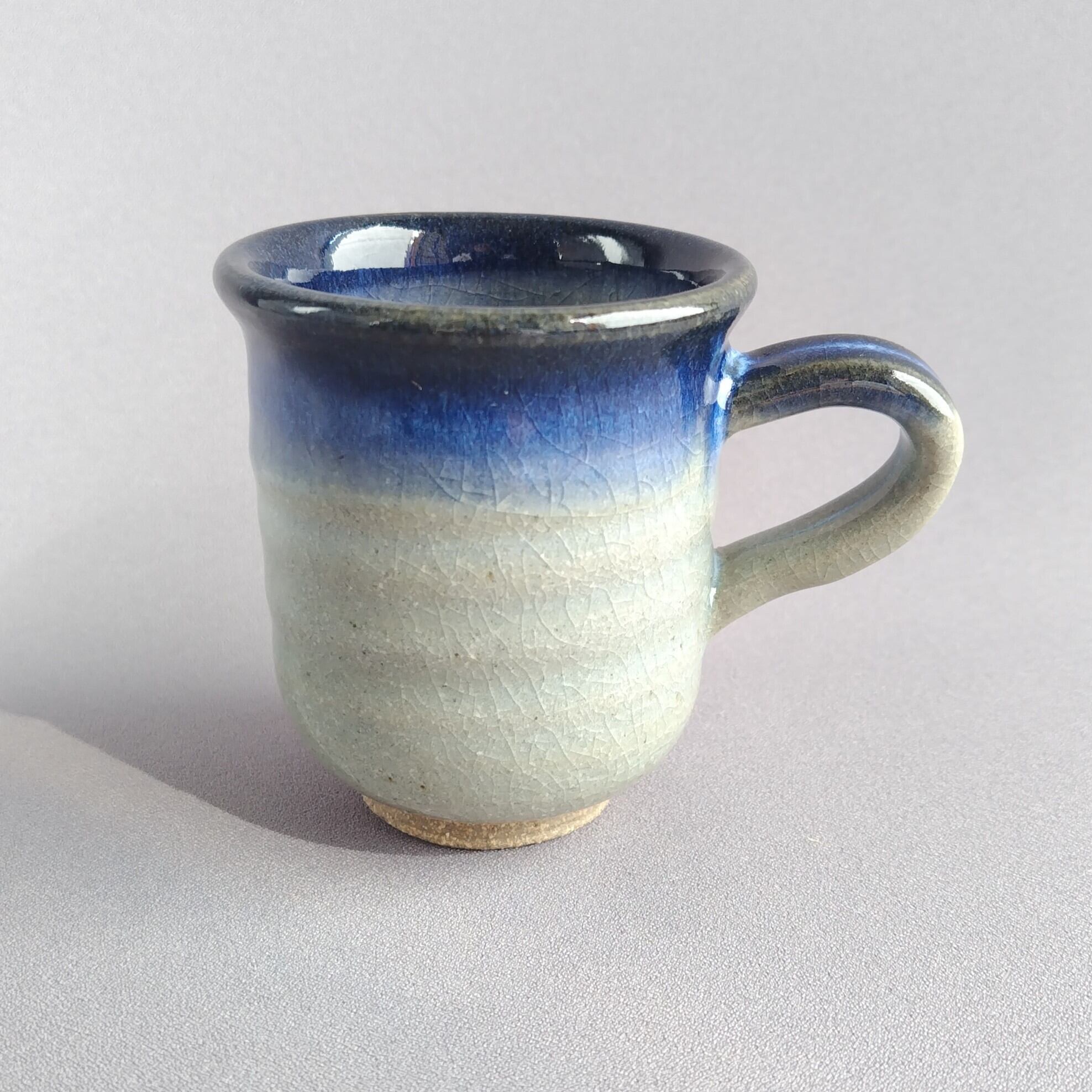 透明釉の縁に藍釉を流したコーヒーカップ&ソーサーのセットです。