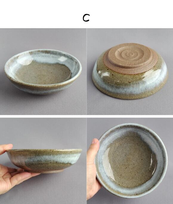 透明釉の縁に白萩釉がかけられた、小さめの浅鉢です。