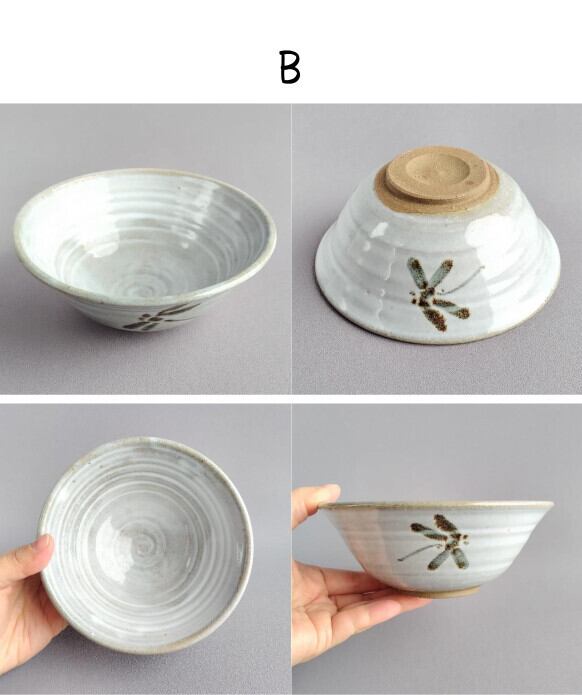 Aは茶碗の内側に、Bは外側にトンボの絵付けがされています。